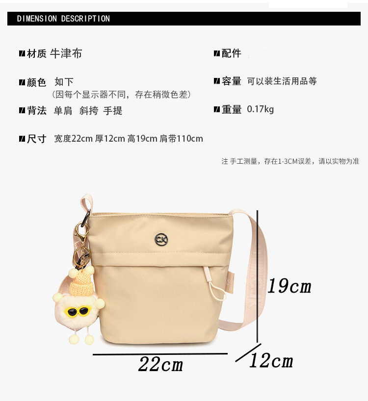 작은 가방 여성 패션 어깨 크로스 바디 백 2025 새로운 여성 패션 올 매치 방수 나일론 천 가방 버킷 백