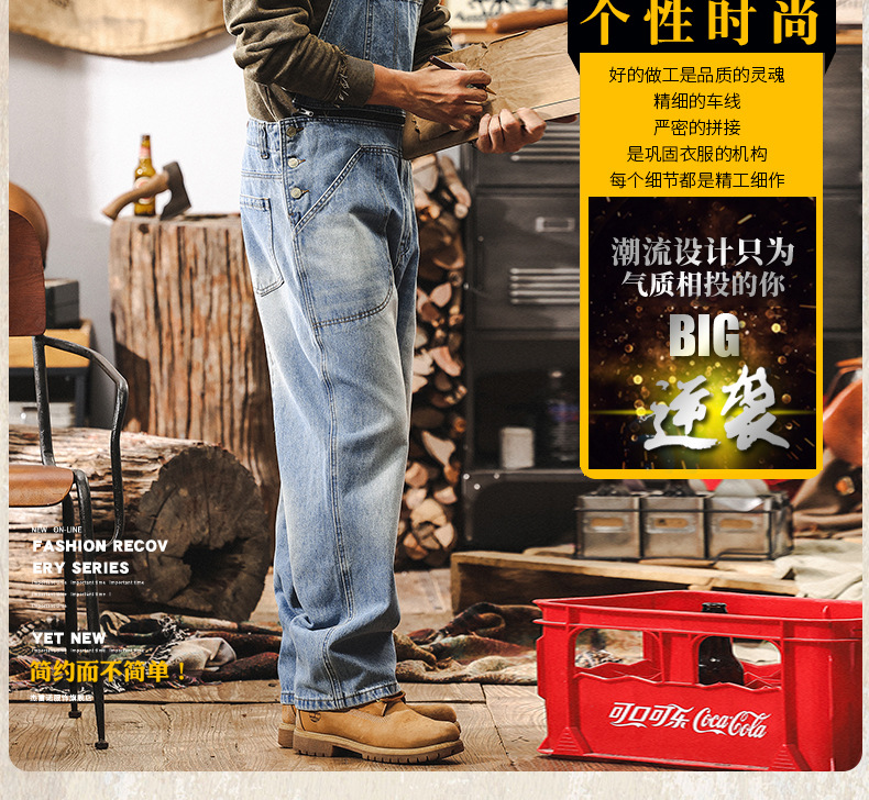 미국 레트로 청바지 남성 분리 가능한 오버롤 2025 새로운 패션 브랜드 봄 루즈 오버롤 점프 수트 남성스토어 가기
