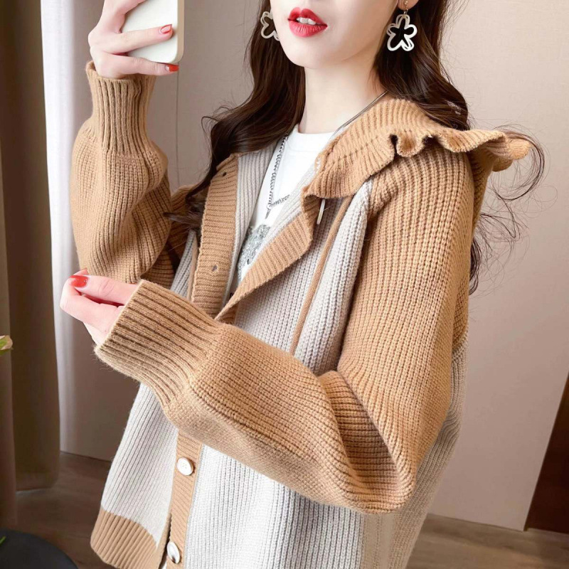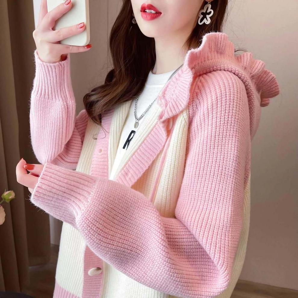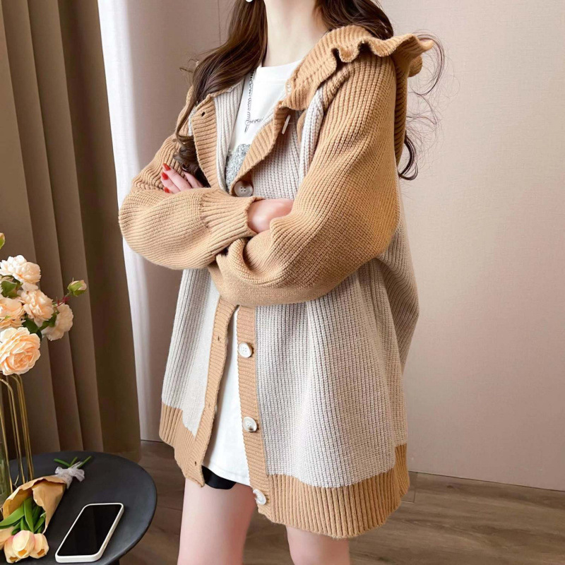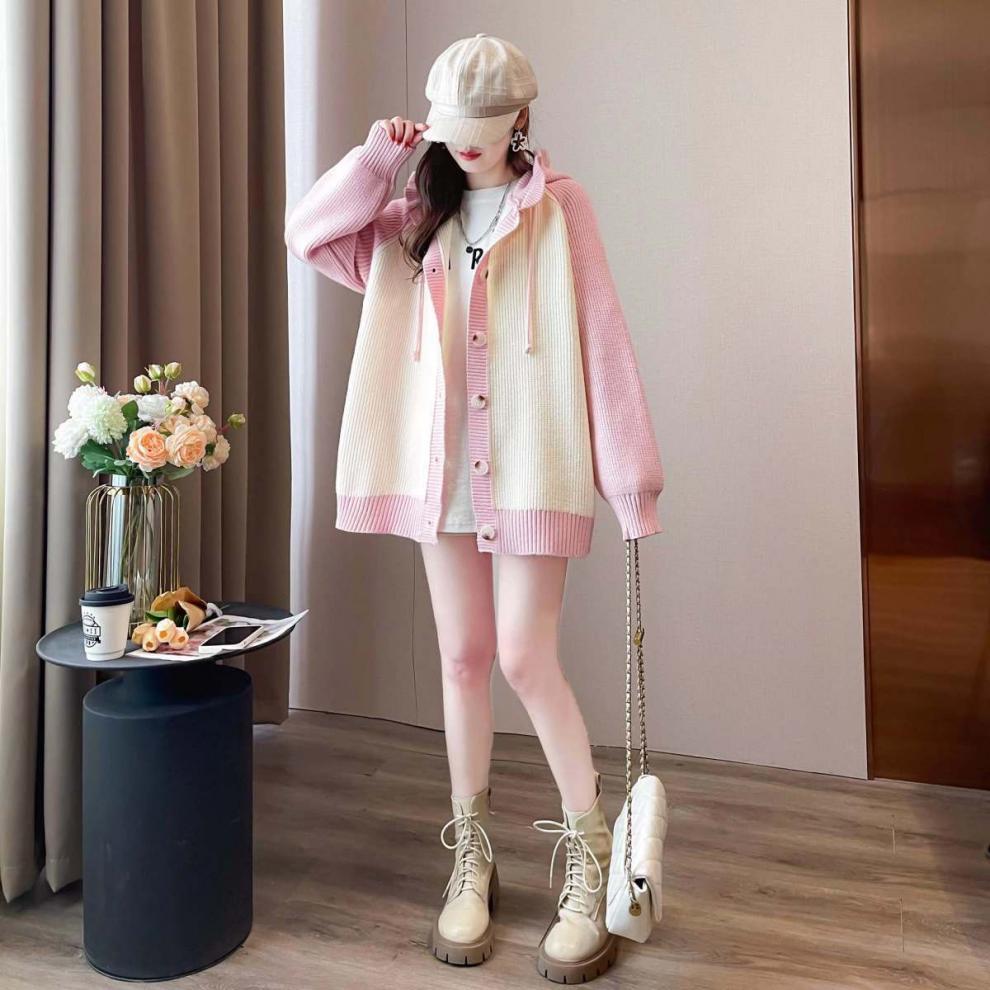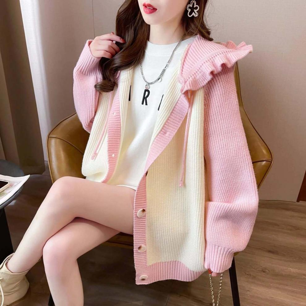 플러스 사이즈 지방 mm200 kg 인형 후드 니트 오픈 여성용 셔츠 가을과 겨울 2024 새로운 느슨한 연령 감소 스웨터 코트스토어 가기
