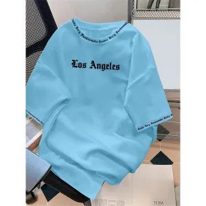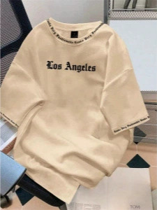 대외 무역 AliExpress 아마존 남성 뜨거운 판매 반팔 티셔츠 편지 인쇄 캐주얼 여름 새로운 올 매치 의류스토어 가기