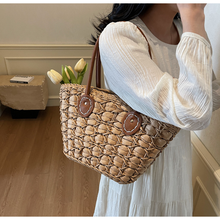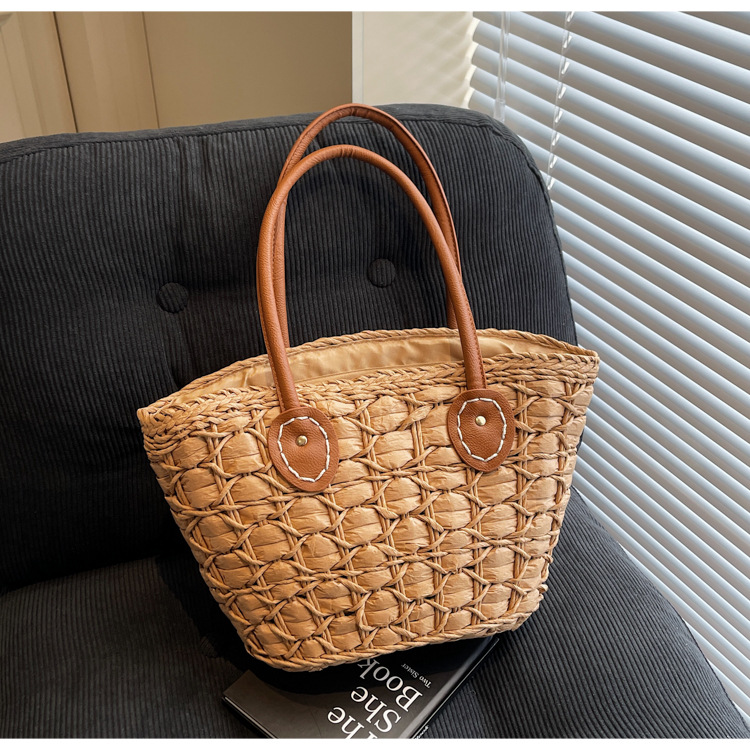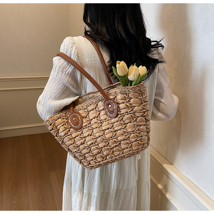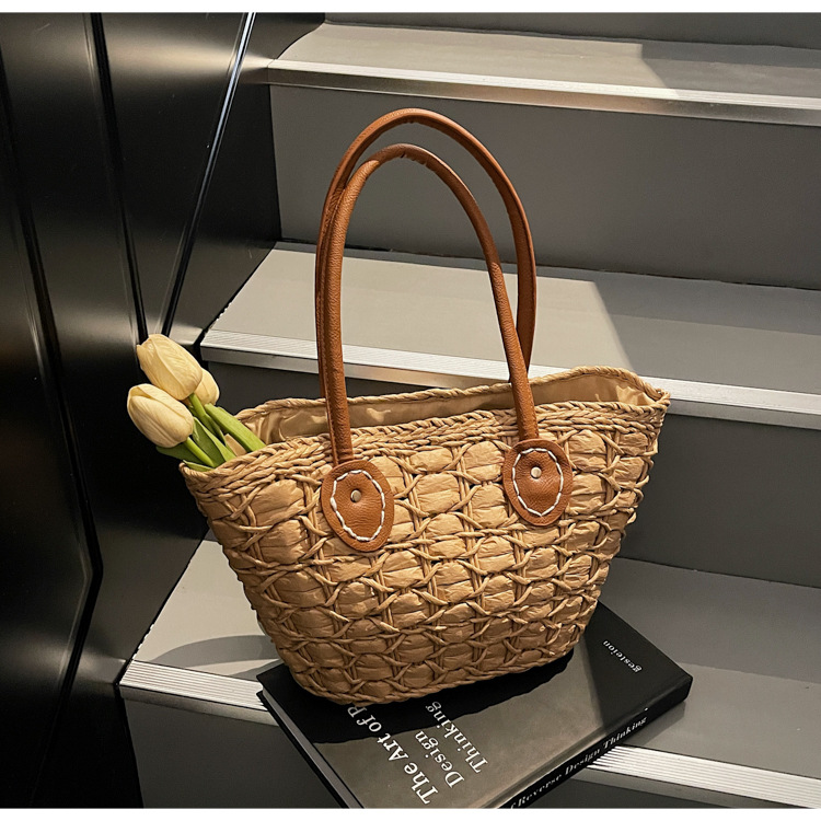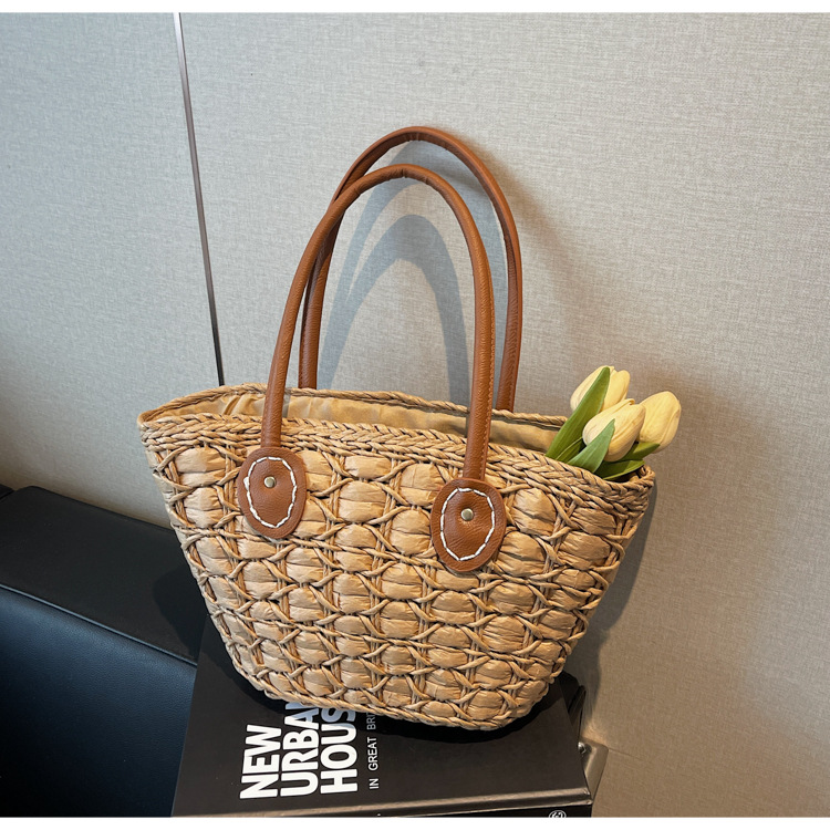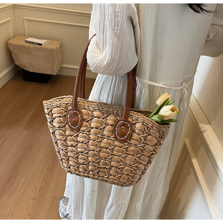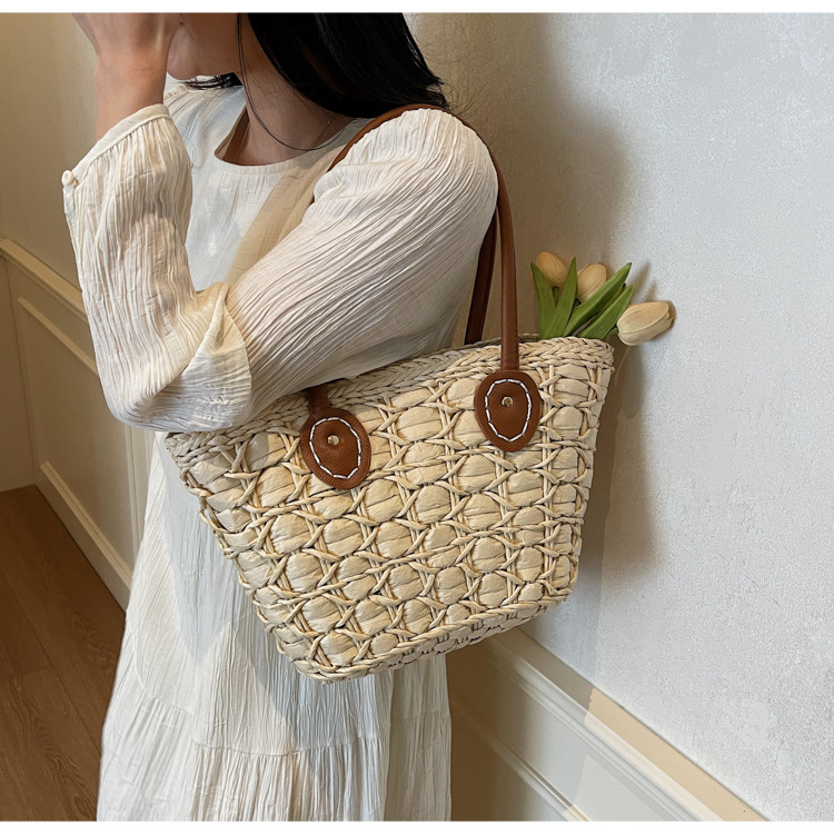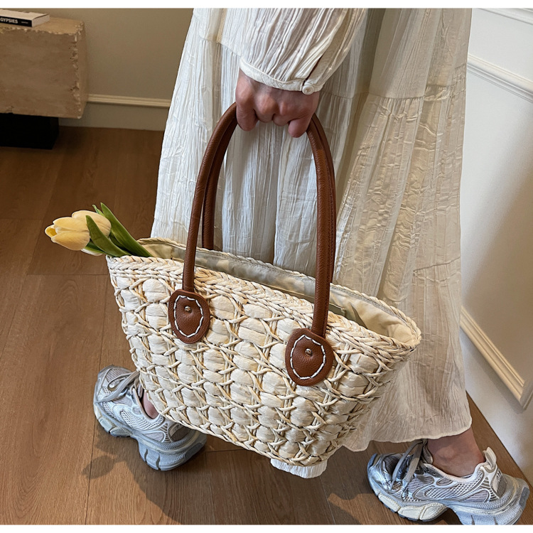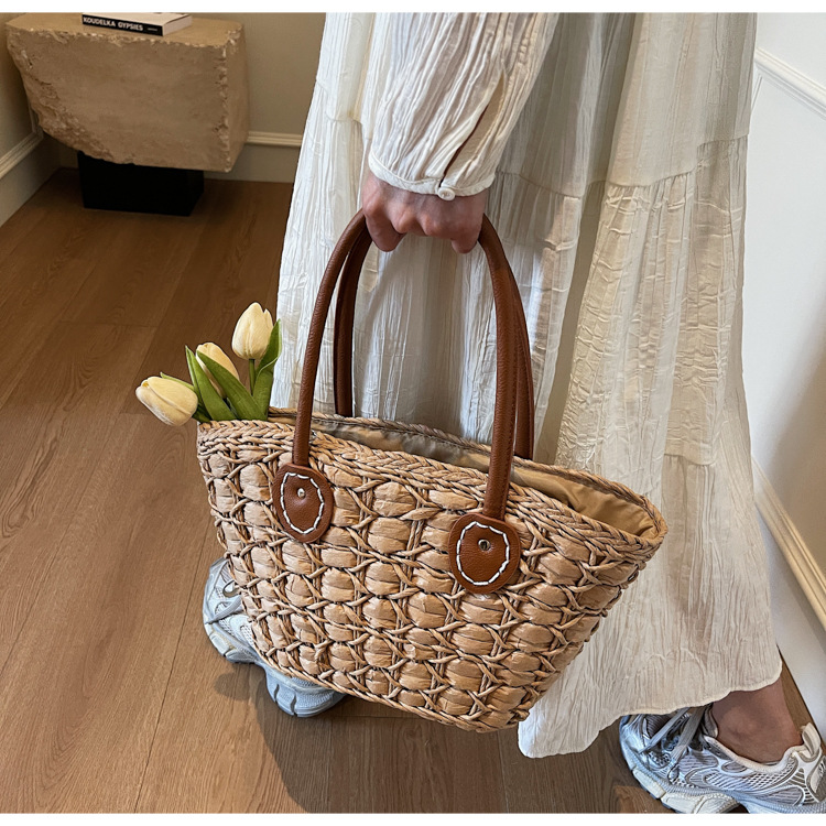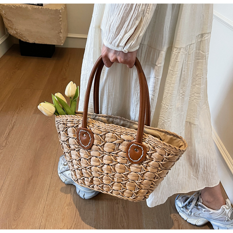 대용량 야채 바구니 짠 가방 여성 2025 새로운 여름 핸드백 밀짚 짠 가방 해변 휴일 어깨 비치 가방