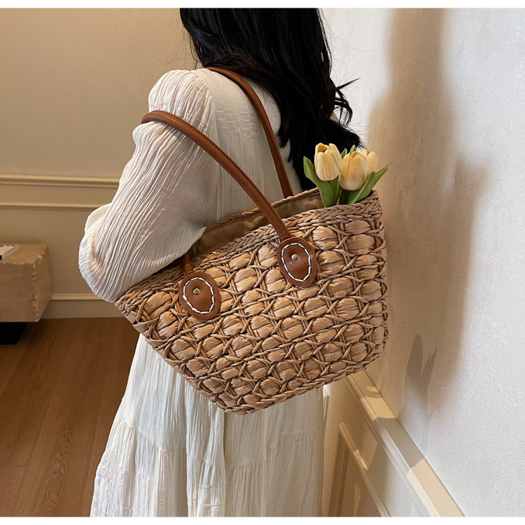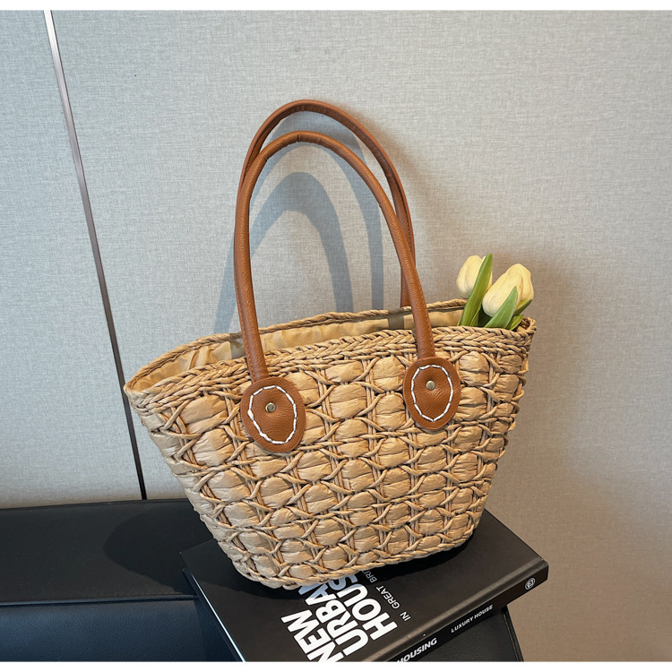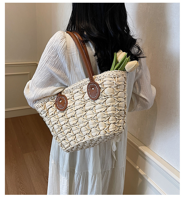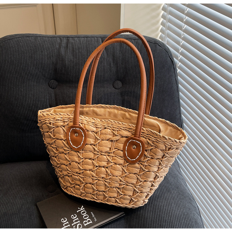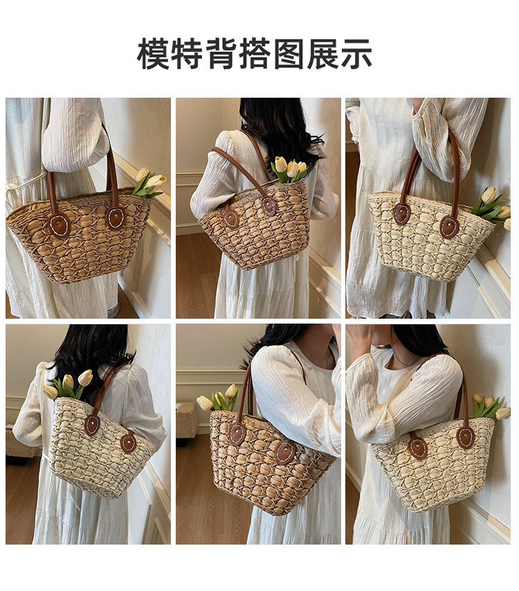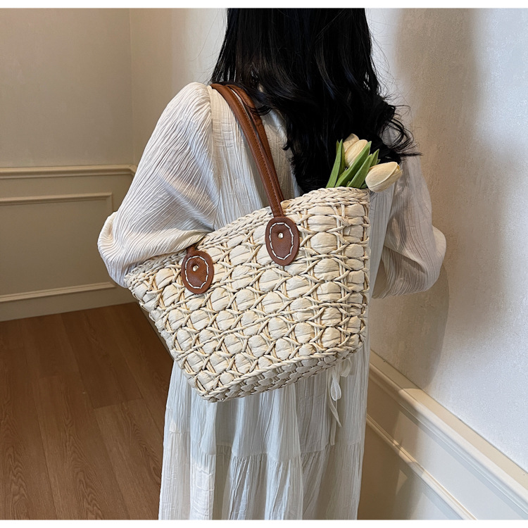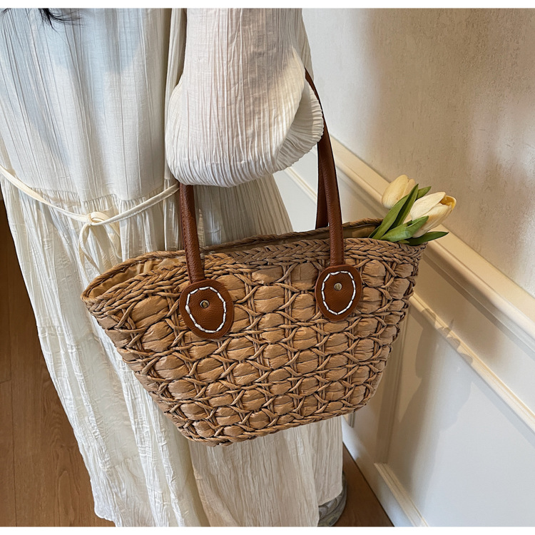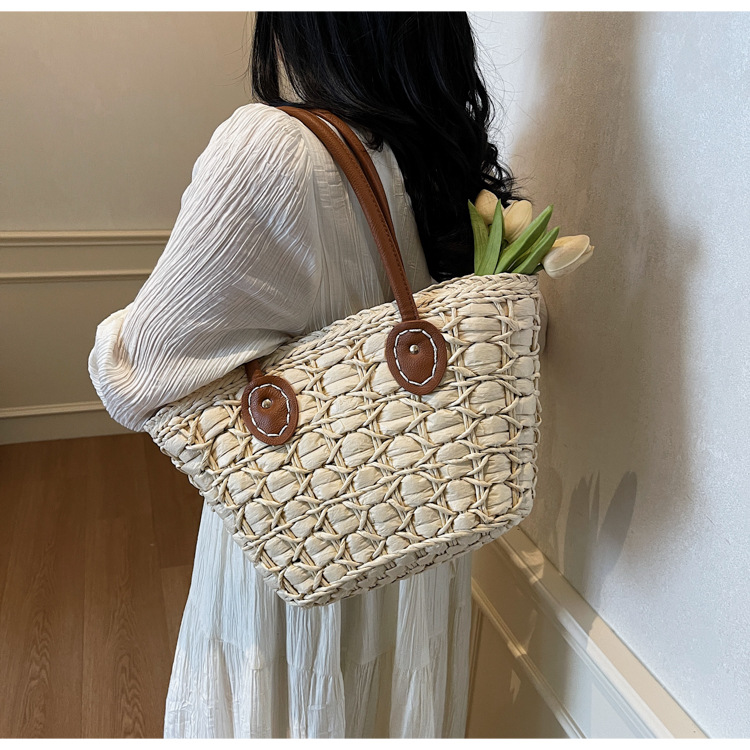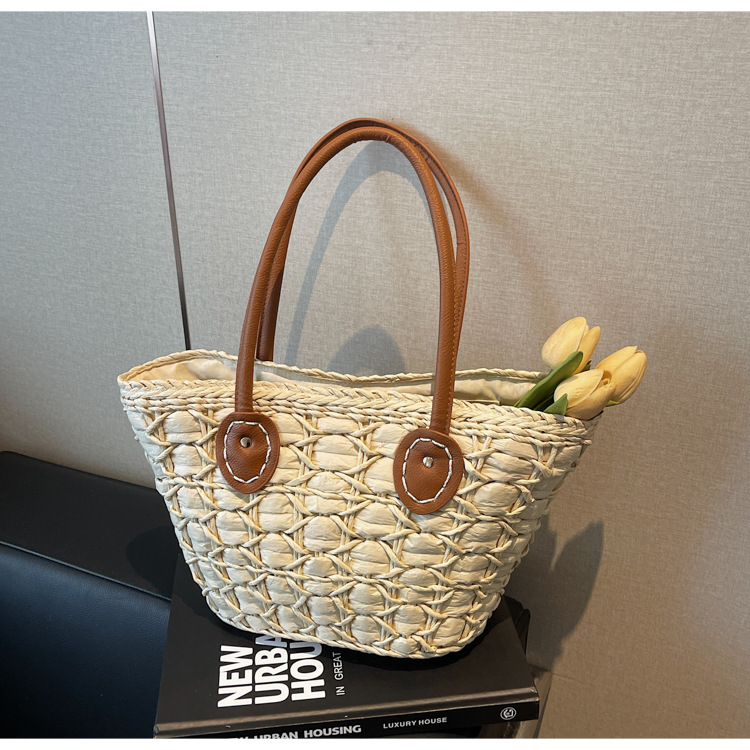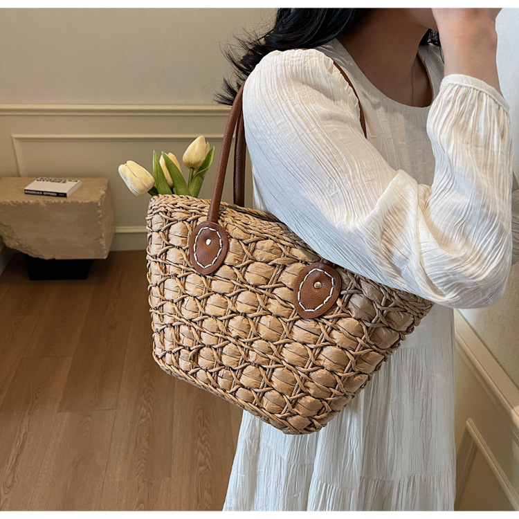 대용량 야채 바구니 짠 가방 여성 2025 새로운 여름 핸드백 밀짚 짠 가방 해변 휴일 어깨 비치 가방