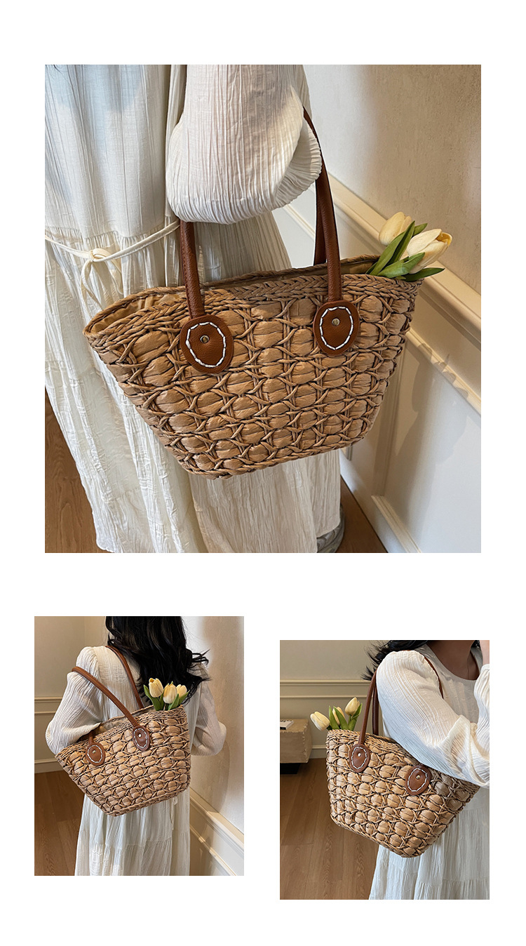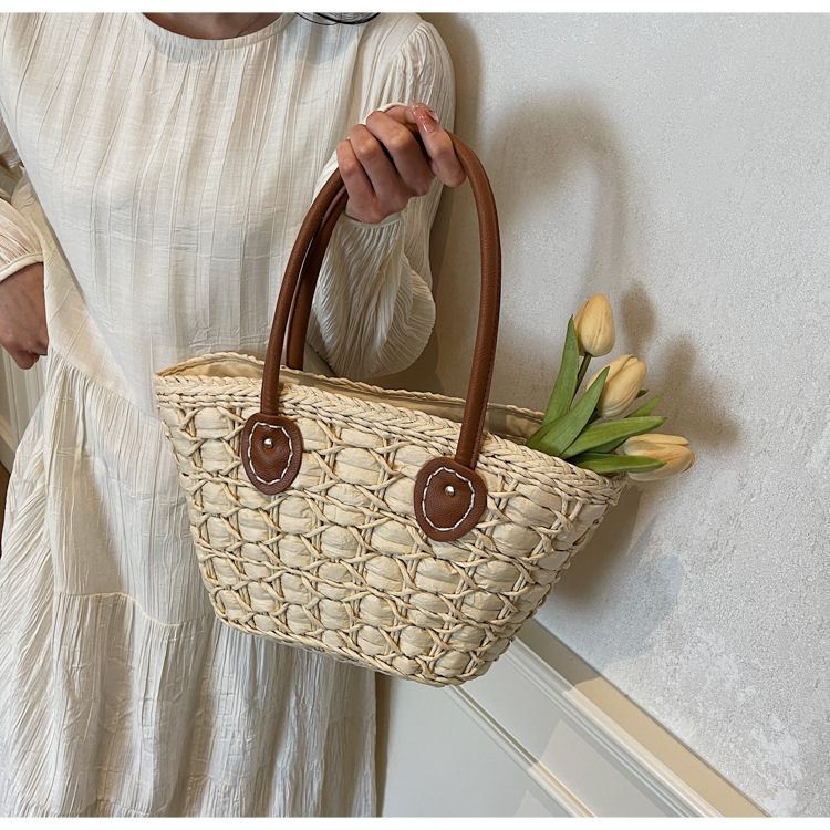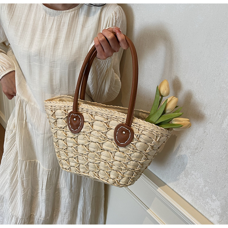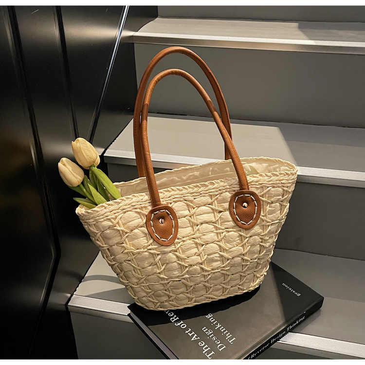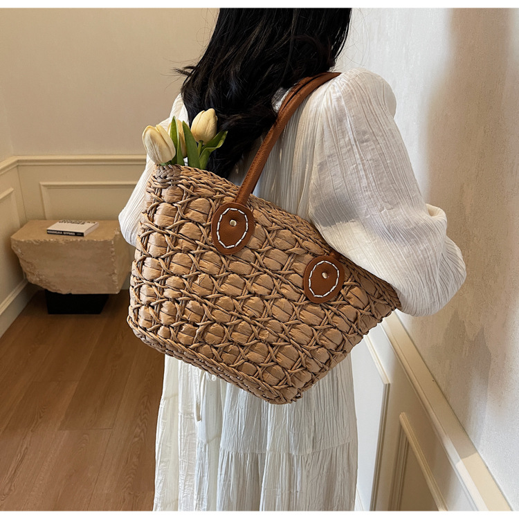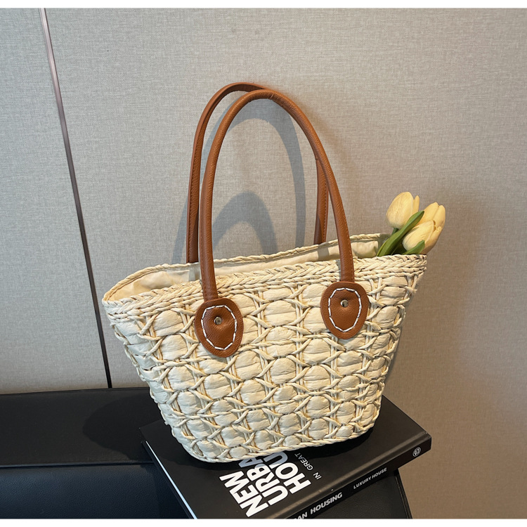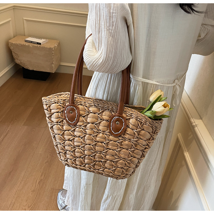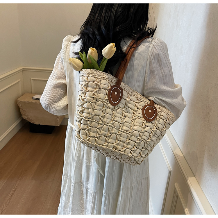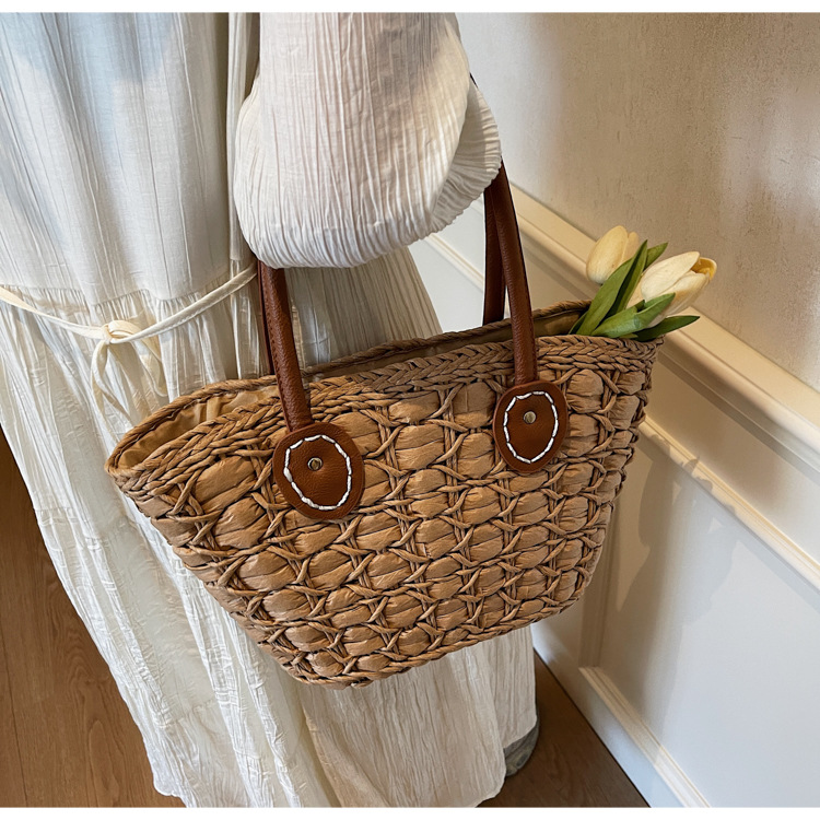 대용량 야채 바구니 짠 가방 여성 2025 새로운 여름 핸드백 밀짚 짠 가방 해변 휴일 어깨 비치 가방