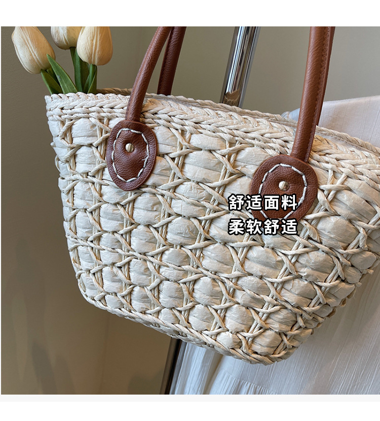 대용량 야채 바구니 짠 가방 여성 2025 새로운 여름 핸드백 밀짚 짠 가방 해변 휴일 어깨 비치 가방스토어 가기