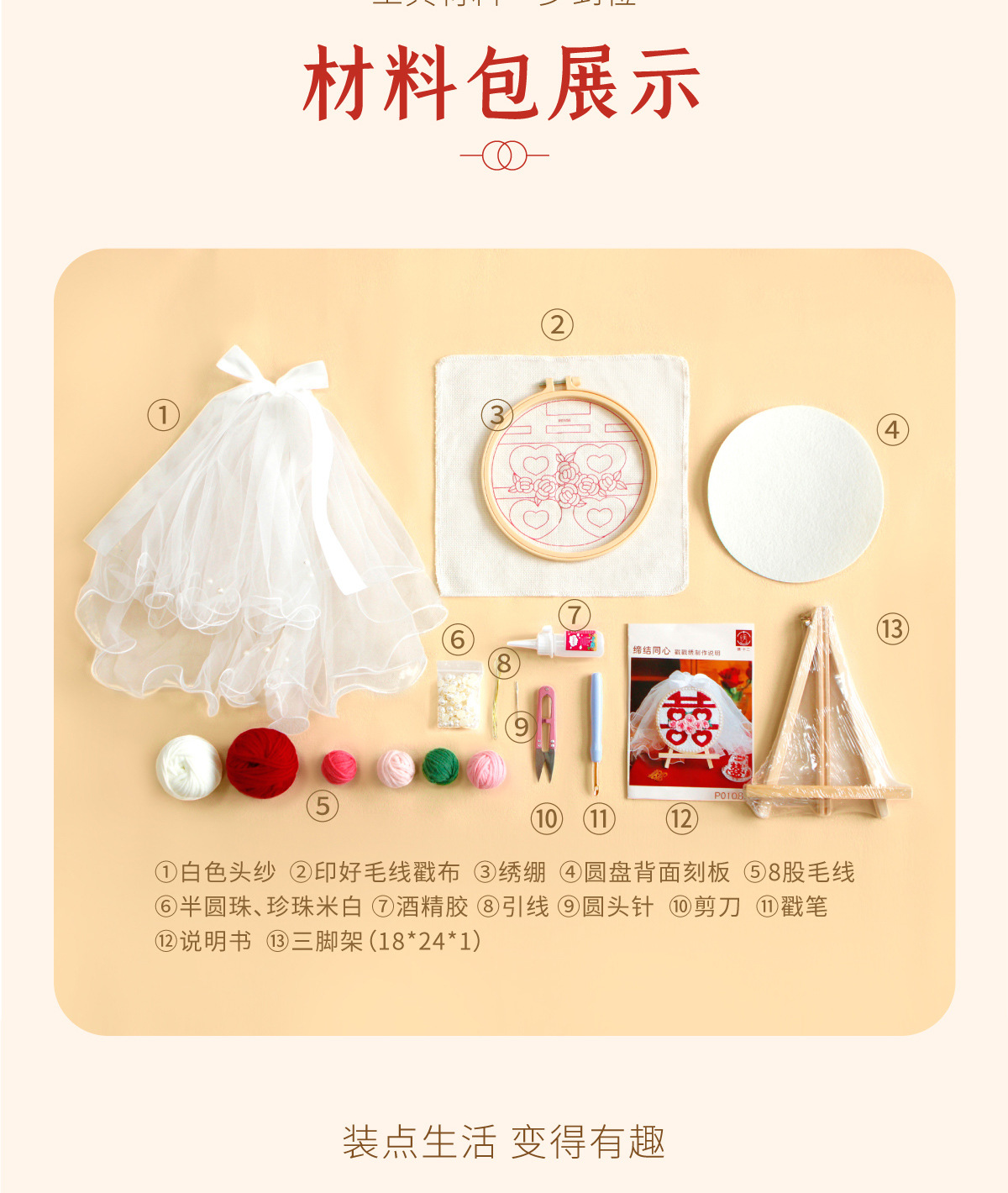 • Tie Knot Tongxinxin [무료 자수 들것 + 삼각대 + 선물 상자]