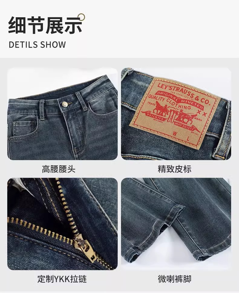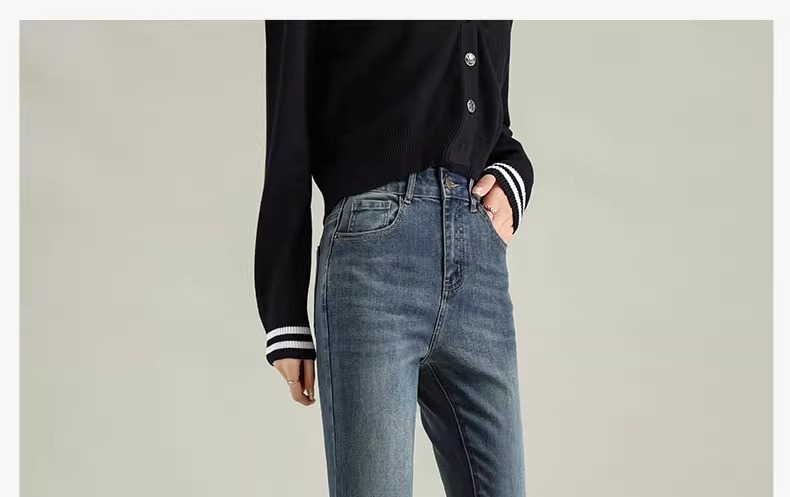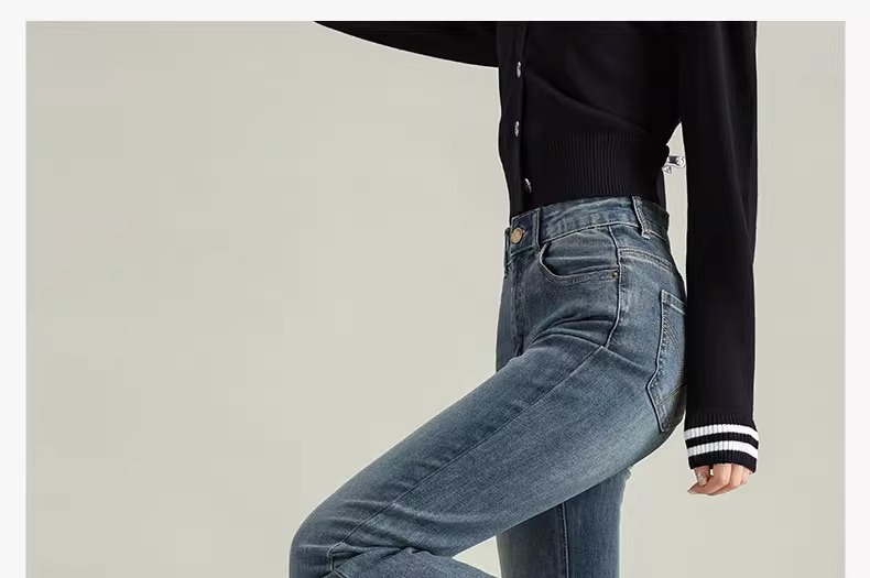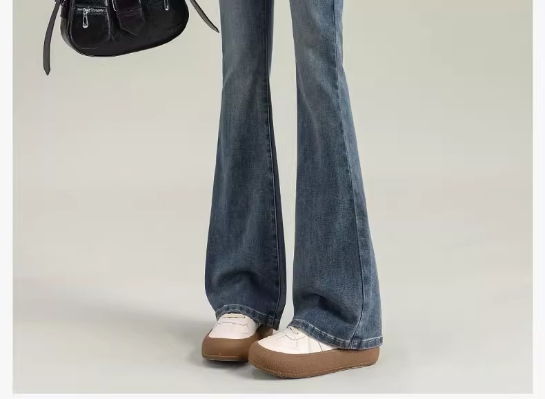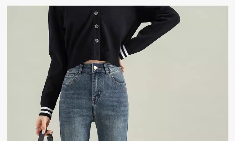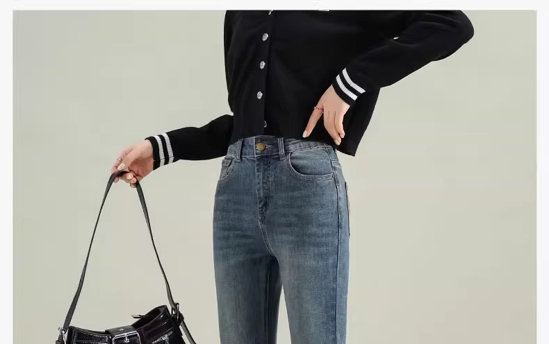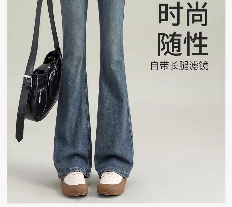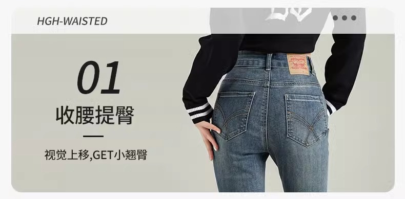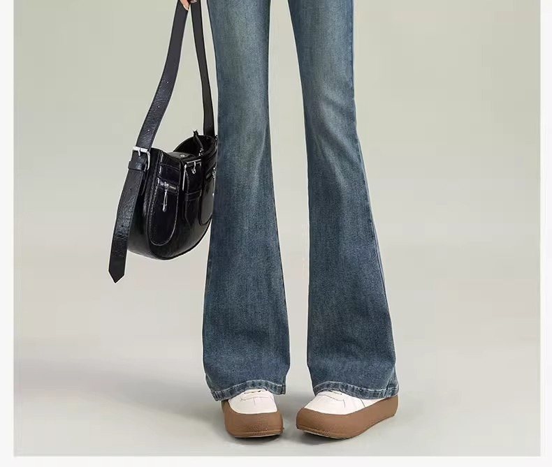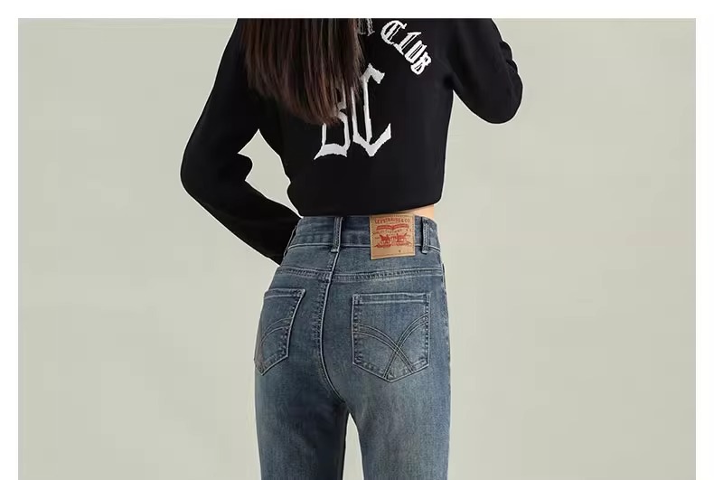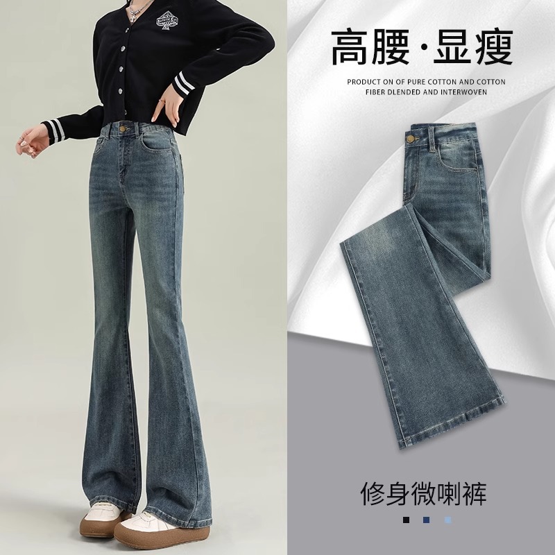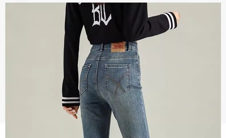 Micro-La Jeans 여성용 2025 봄과 가을 새로운 인기 폭발 레트로 작은 바지 높은 허리 슬림 바지스토어 가기