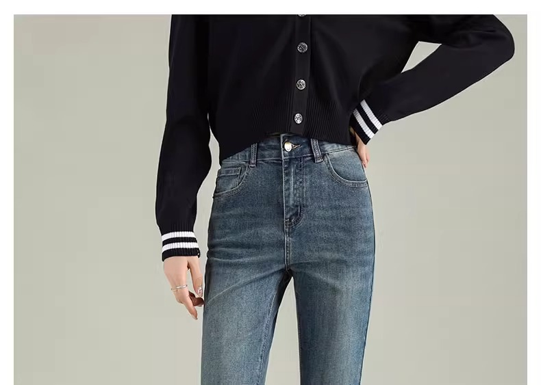 Micro-La Jeans 여성용 2025 봄과 가을 새로운 인기 폭발 레트로 작은 바지 높은 허리 슬림 바지