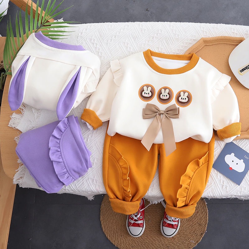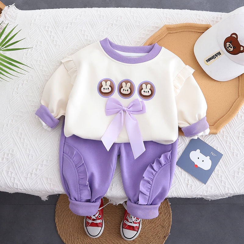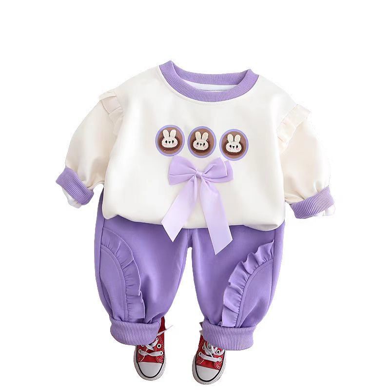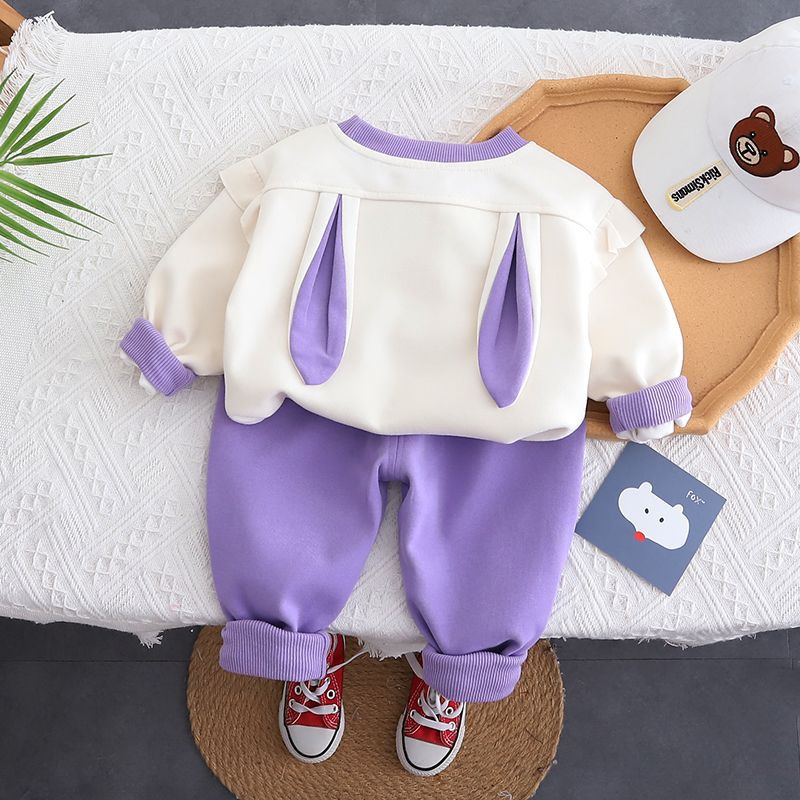 • 토끼 프린트 스웨트 셔츠 세트 [보라색]