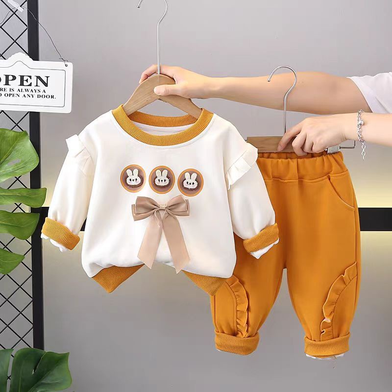 • 토끼 프린트 스웨트 셔츠 세트 [옐로우]