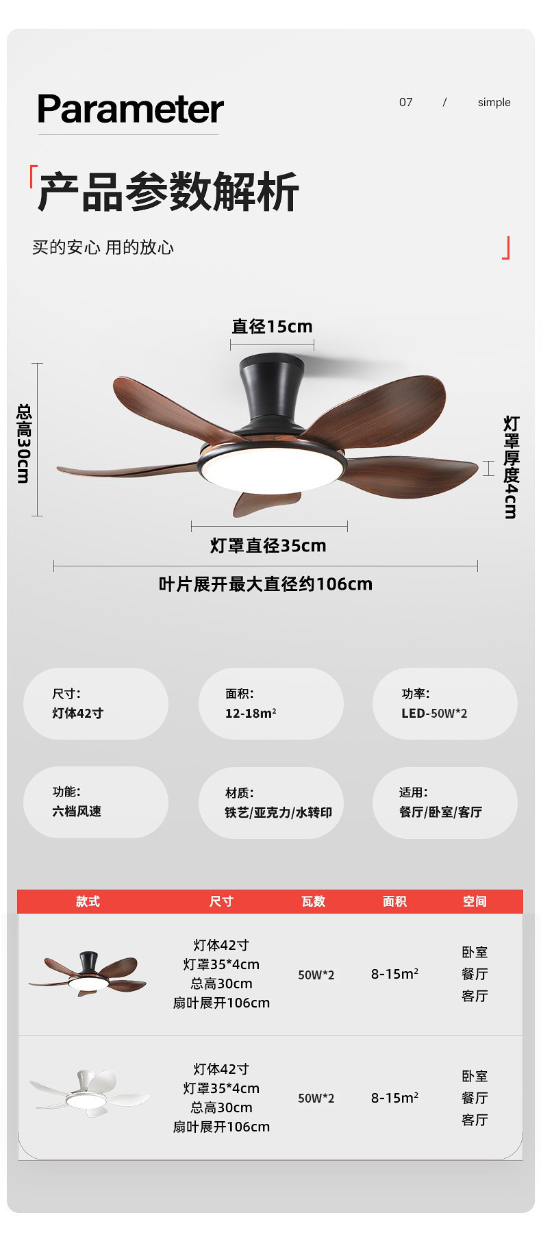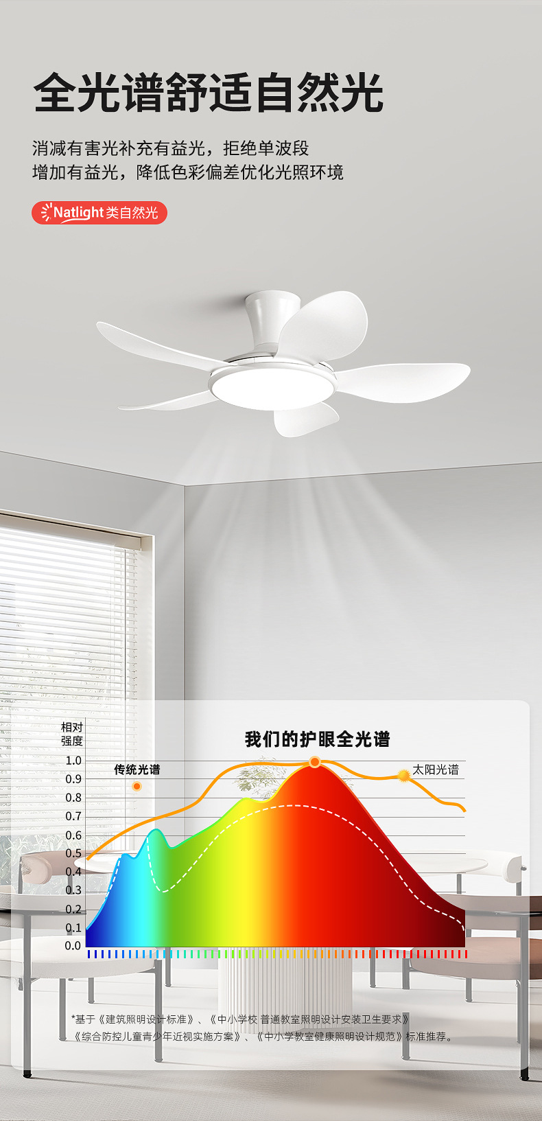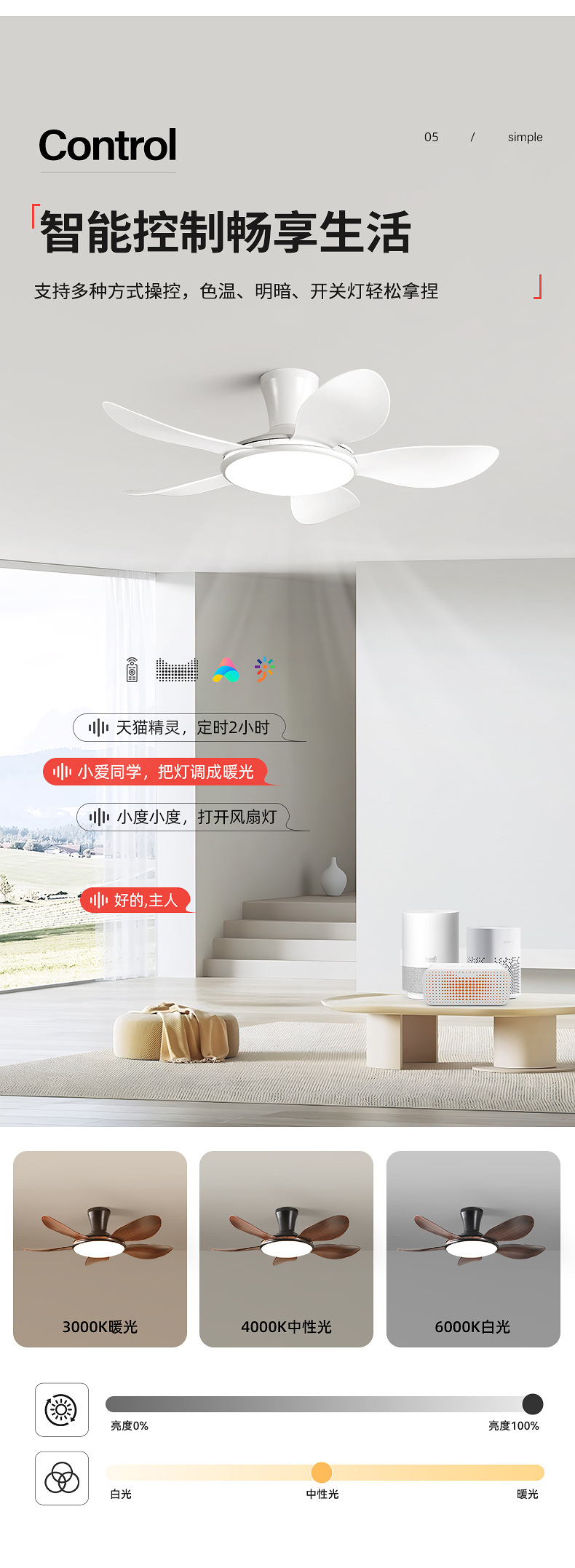 • [풀 스펙트럼 97 CRI] 흰색 42inch -6 풍속 - Tmall Elf + 리모콘 -60w