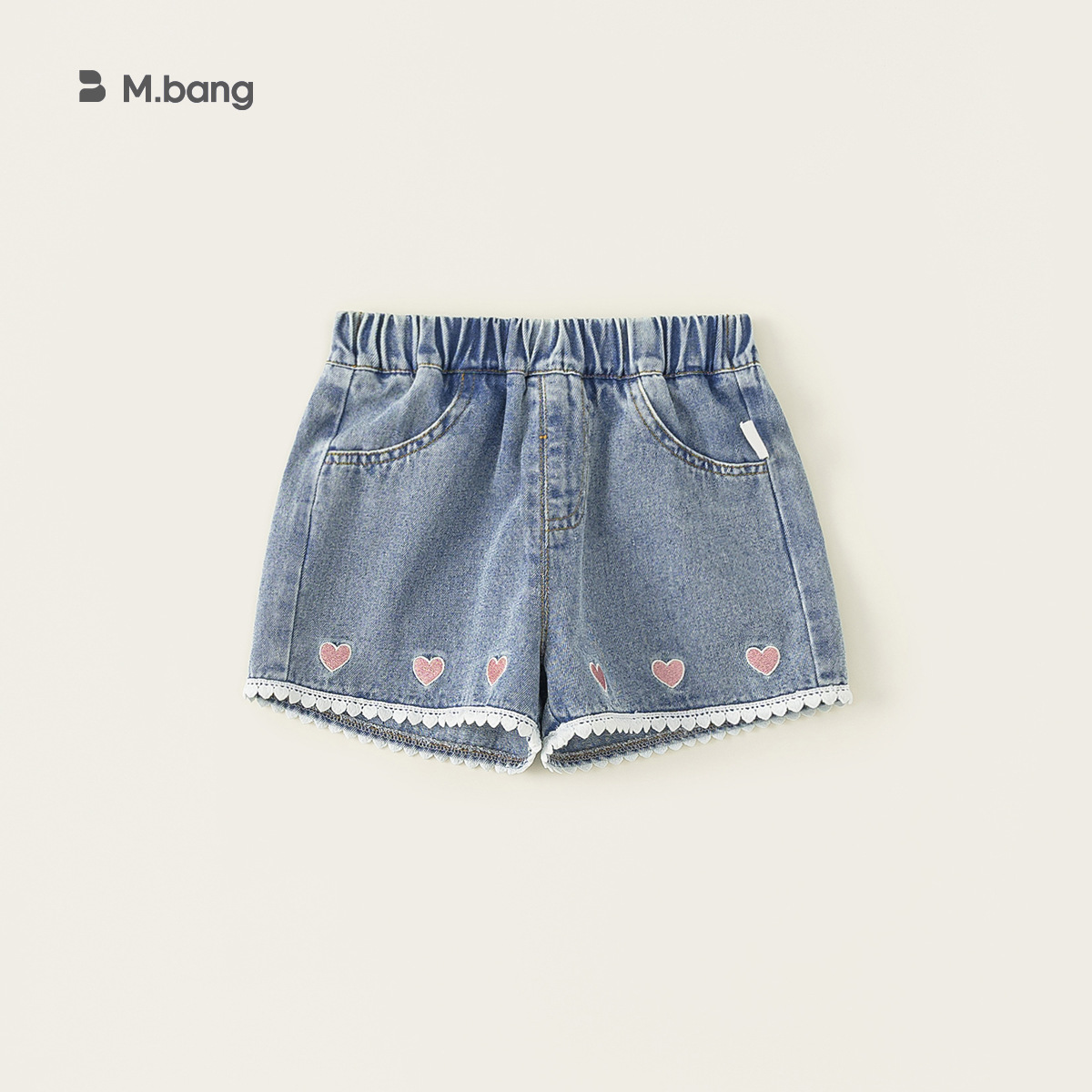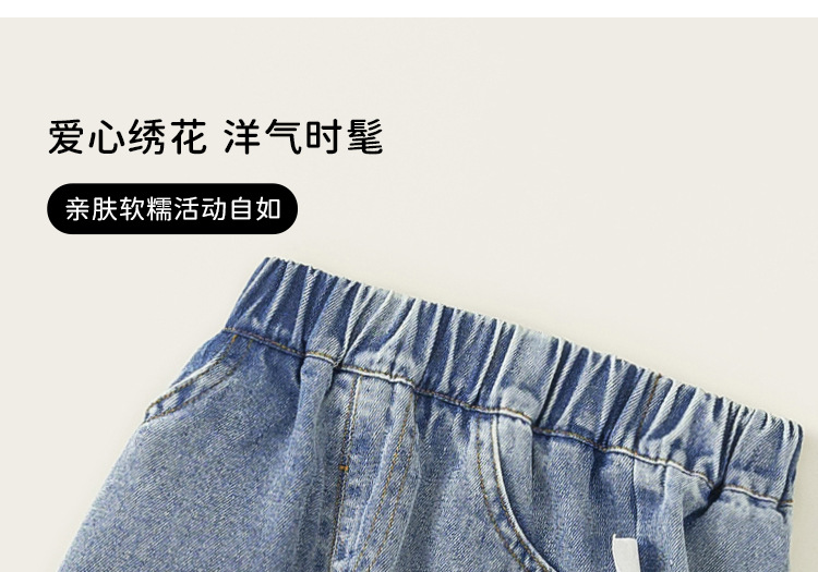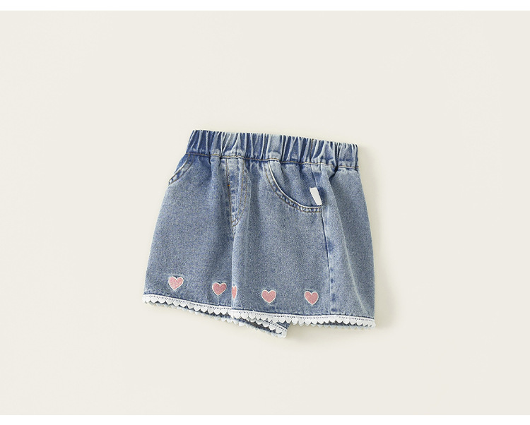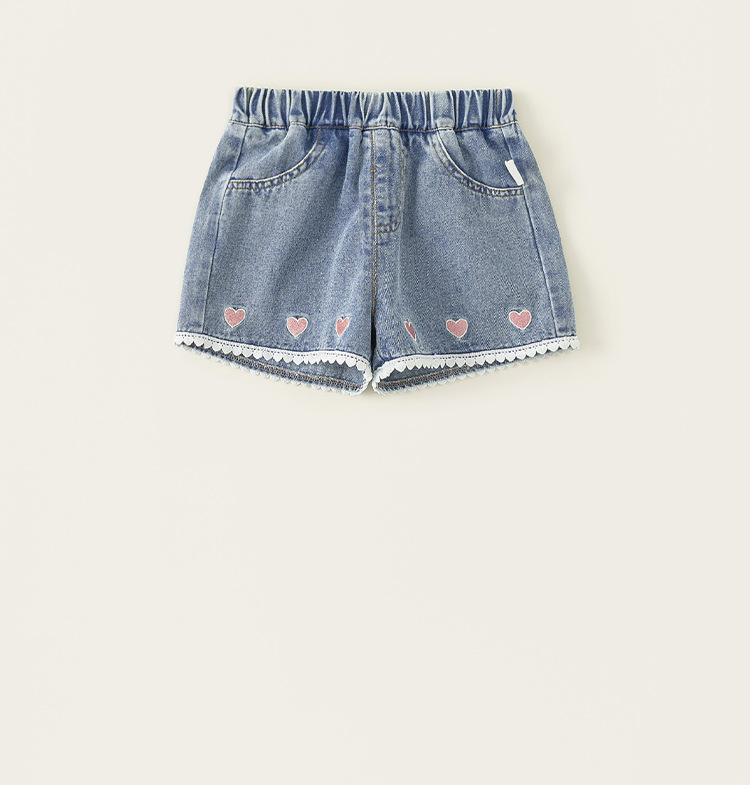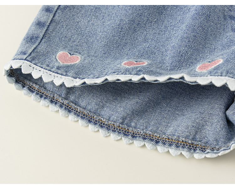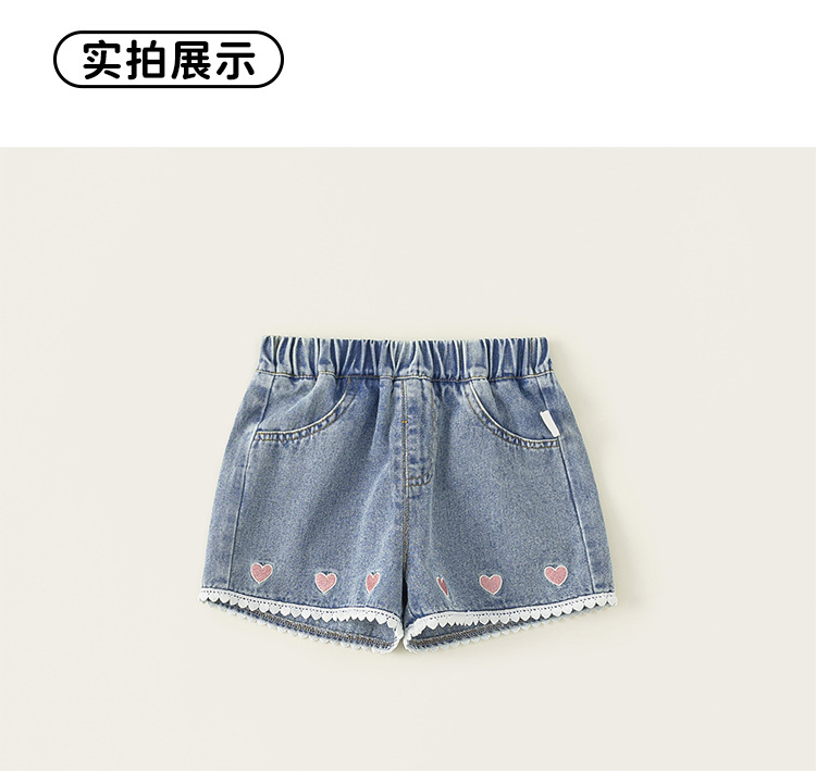 Yibao 아동복 여아 달콤한 반바지 2025 여름 신작 어린이 사랑 자수 얇은 데님 핫팬츠스토어 가기