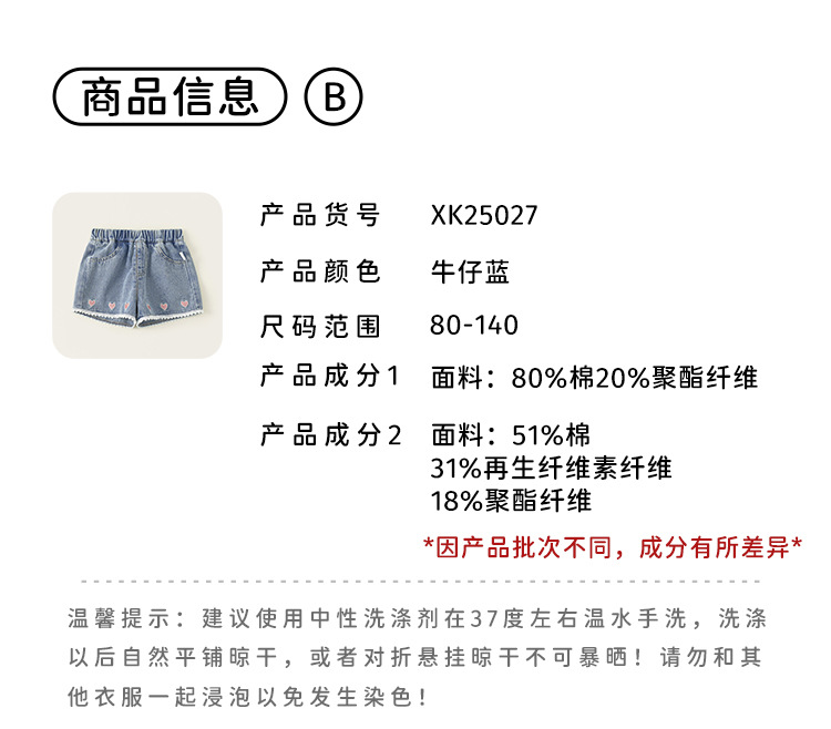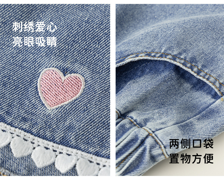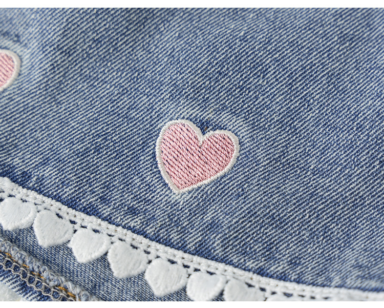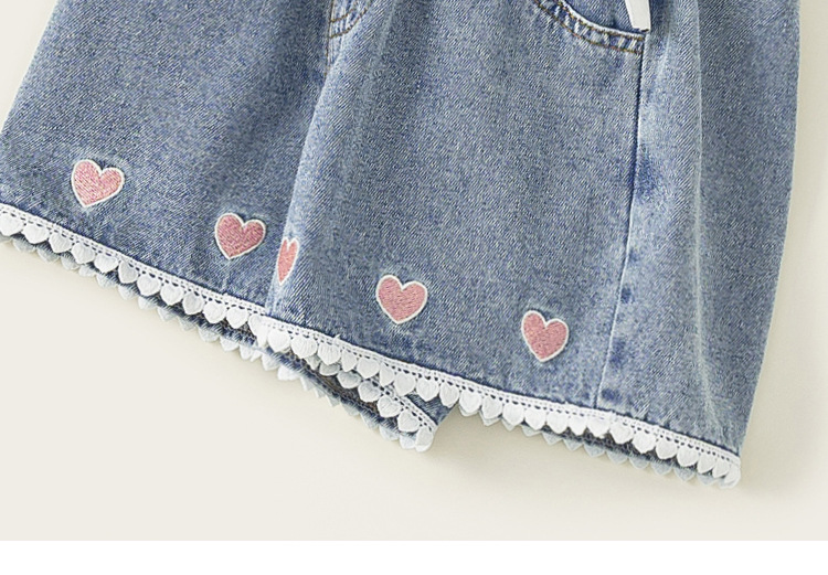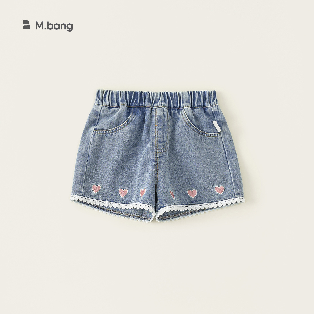 Yibao 아동복 여아 달콤한 반바지 2025 여름 신작 어린이 사랑 자수 얇은 데님 핫팬츠스토어 가기