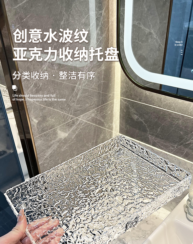 거실 아크릴 가정용 저장 하이 엔드 트레이 직사각형 티 트레이 라이트 럭셔리 호텔 워터 리플 특수 병원