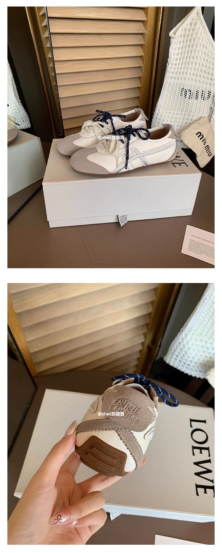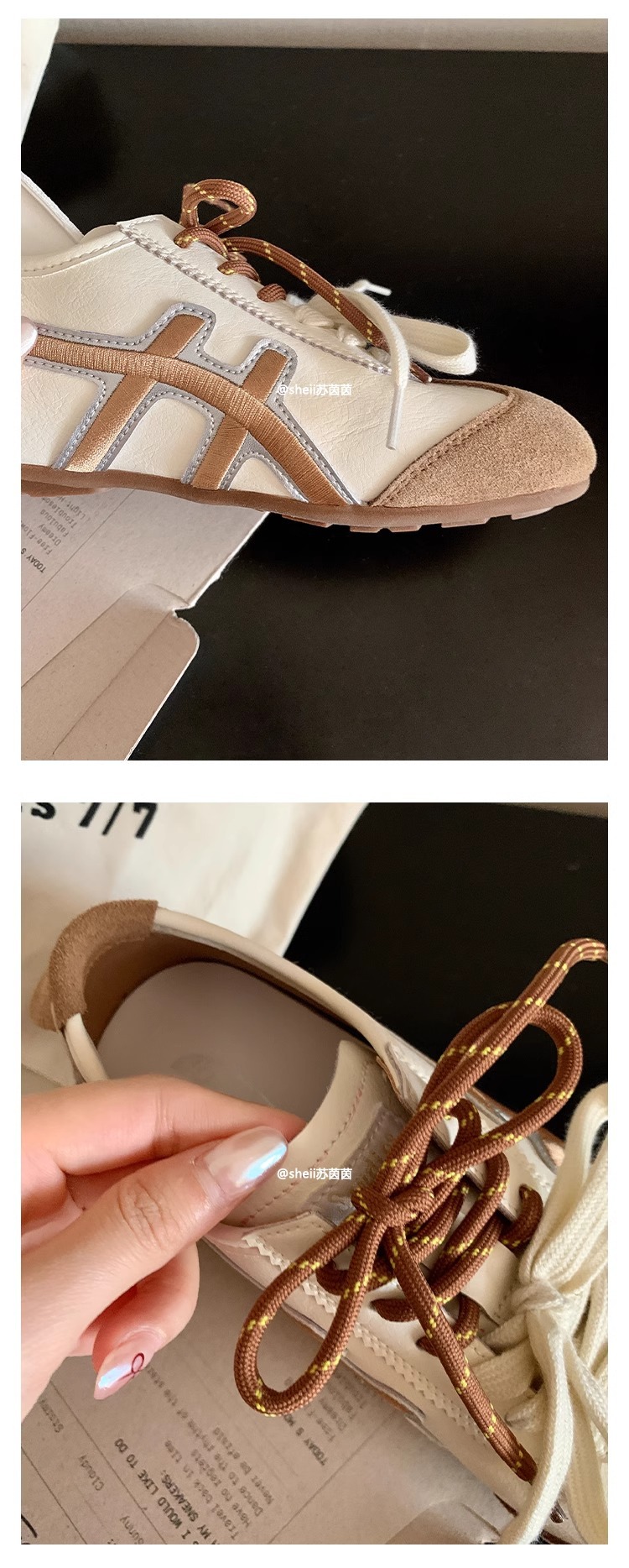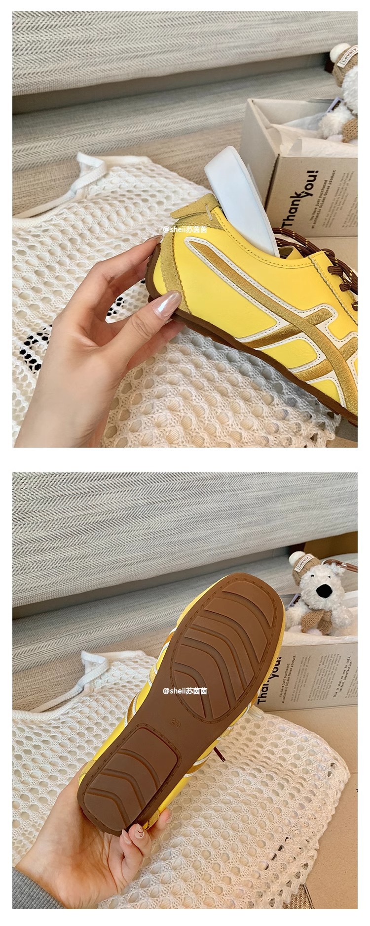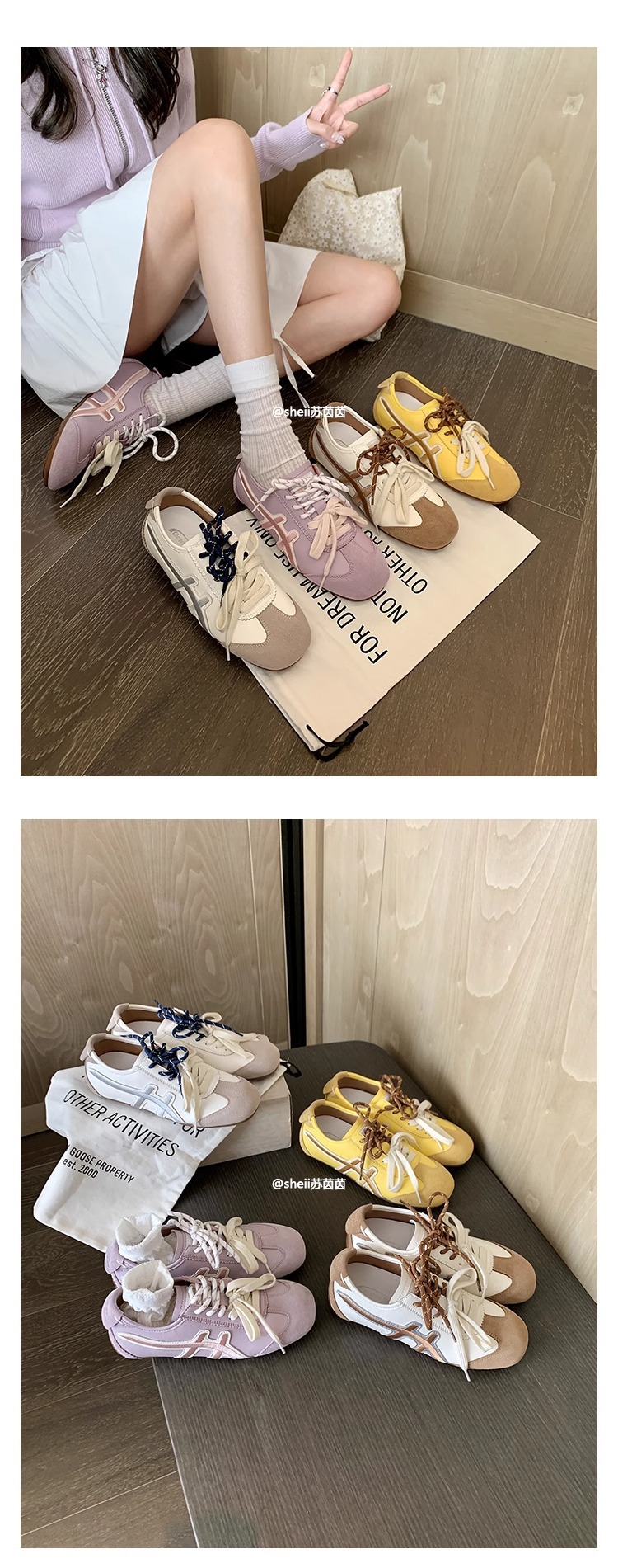 사랑을 가진 Su Yinyin의 Cowhide 버전 포괄적 인 소녀 컬러 매칭 레이스 업 로우 탑 캐주얼 운동화 여성의 도덕적 훈련 신발