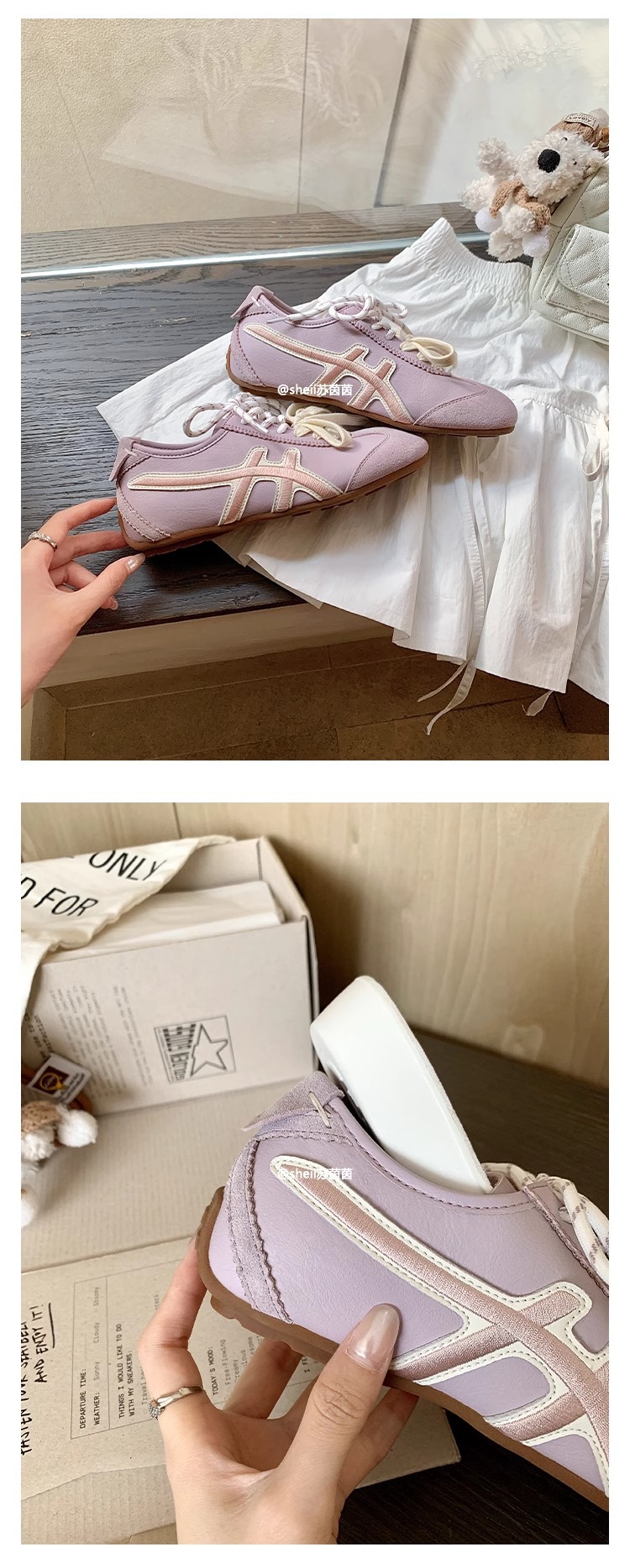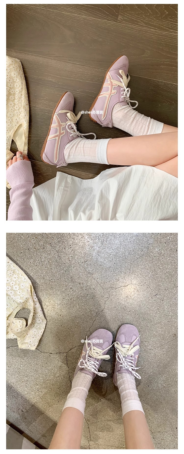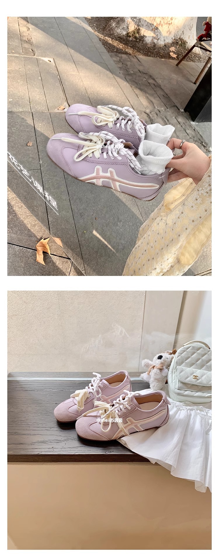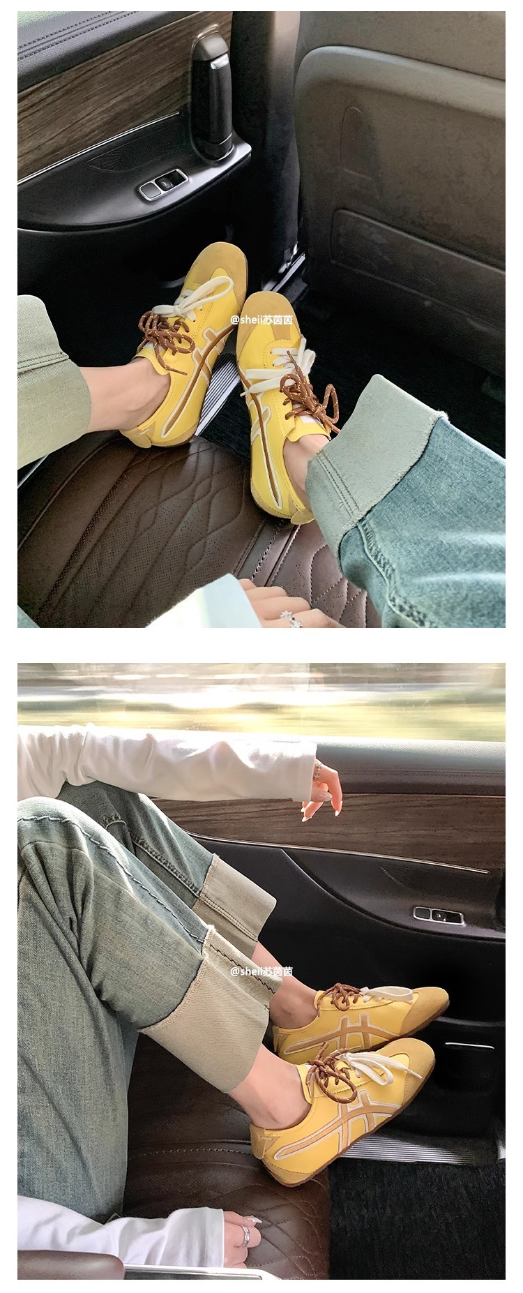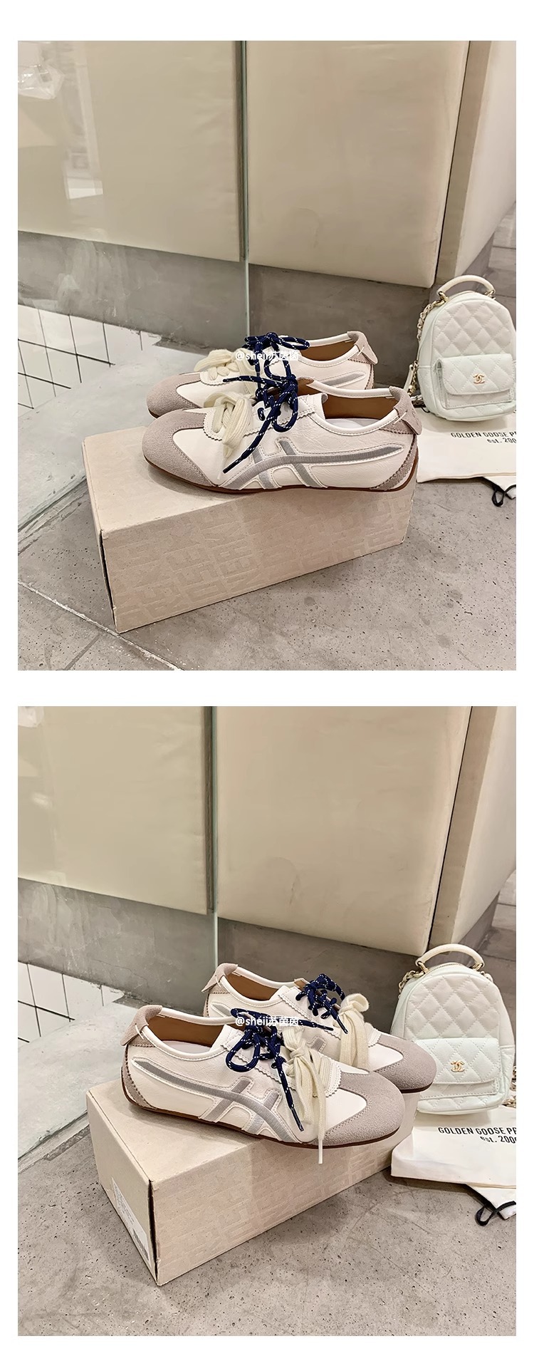사랑을 가진 Su Yinyin의 Cowhide 버전 포괄적 인 소녀 컬러 매칭 레이스 업 로우 탑 캐주얼 운동화 여성의 도덕적 훈련 신발
