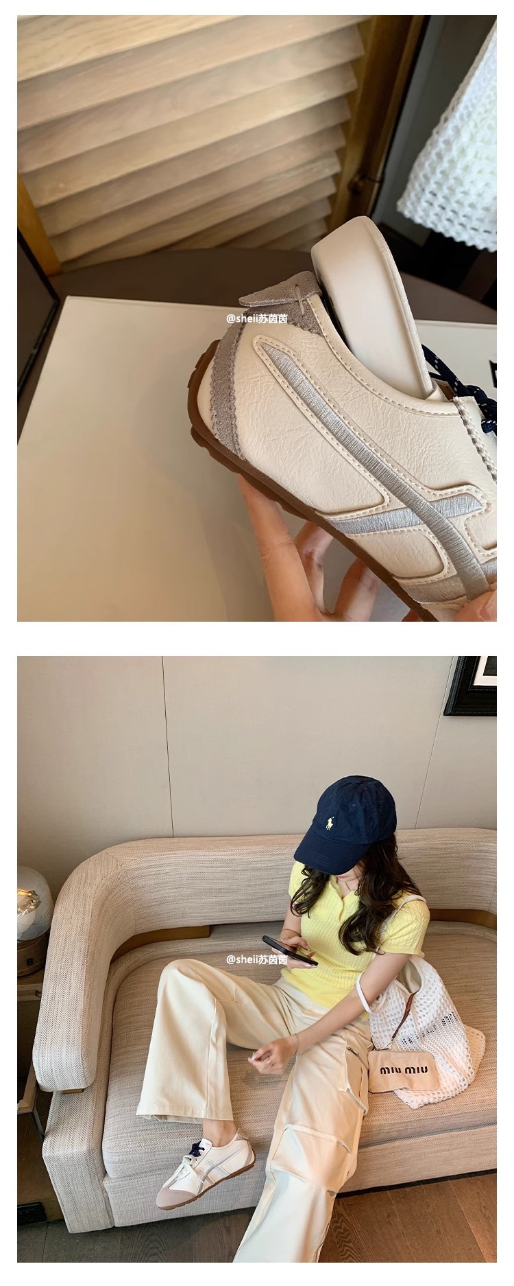 사랑을 가진 Su Yinyin의 Cowhide 버전 포괄적 인 소녀 컬러 매칭 레이스 업 로우 탑 캐주얼 운동화 여성의 도덕적 훈련 신발스토어 가기