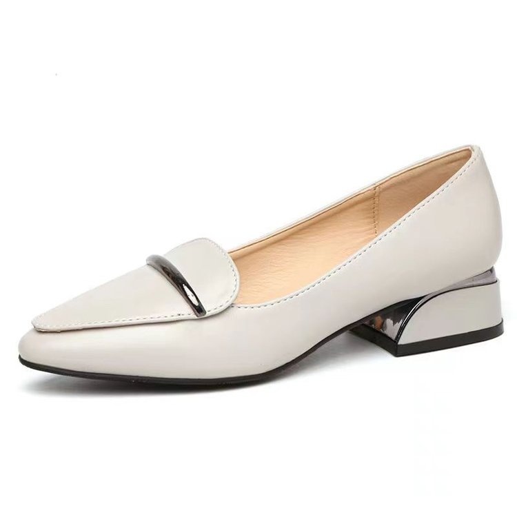 뾰족한 두꺼운 힐 작은 가죽 신발 도시 OL 통근 싱글 신발 올매치 여성 싱글 신발 2025 여름 어머니 신발 재고