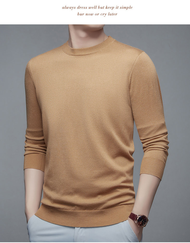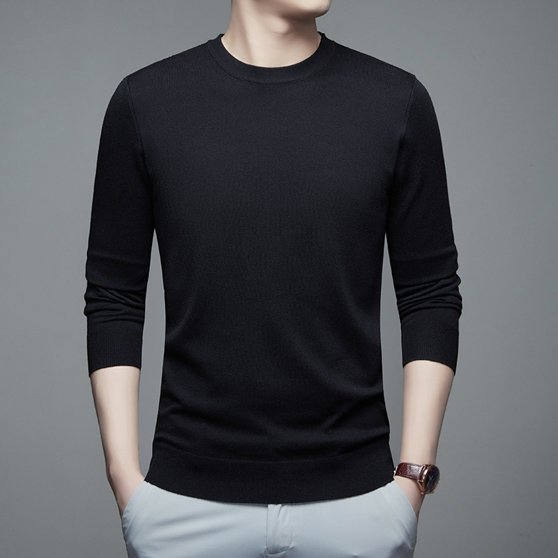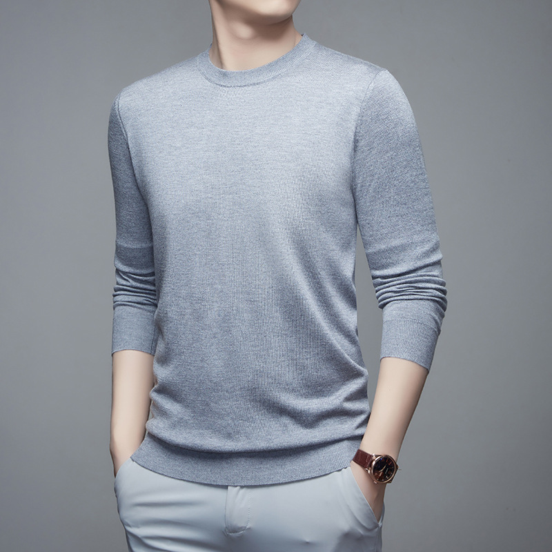 봄 새로운 남성 비즈니스 캐주얼 얇은 양모 니트 스웨터 크루 오버 스웨터 느슨한 니트베이스 셔츠