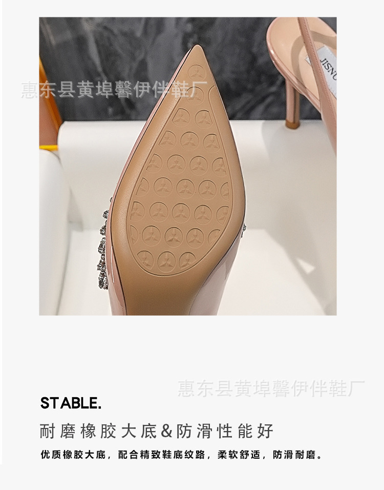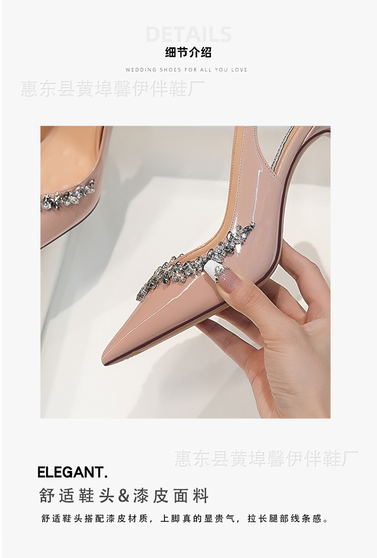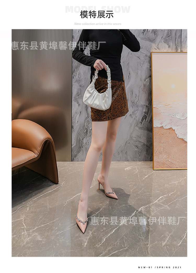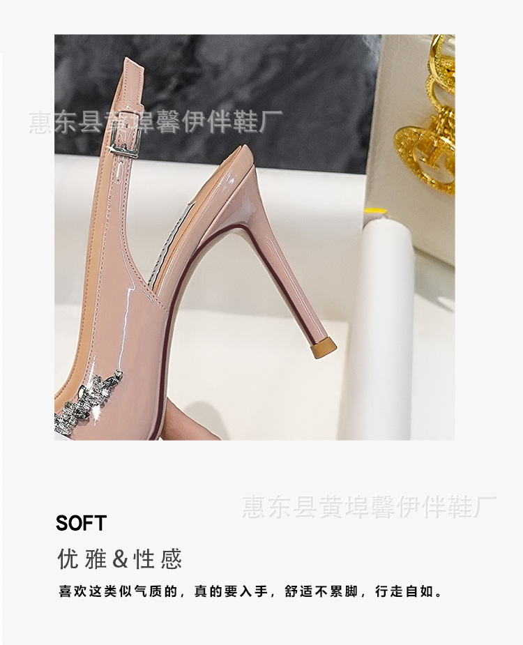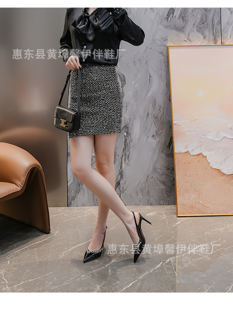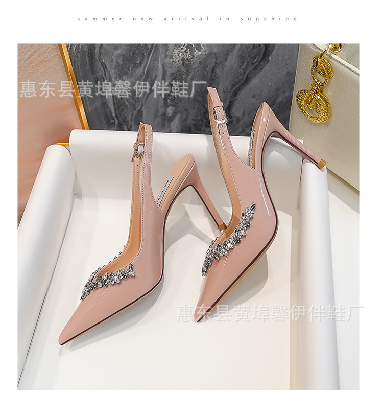 2025 년 봄과 여름 JC 새로운 뾰족한 블랙 라인스톤 하이힐 여성용 샌들 스틸레토 힐 얕은 입 아름다운 누드 신발스토어 가기