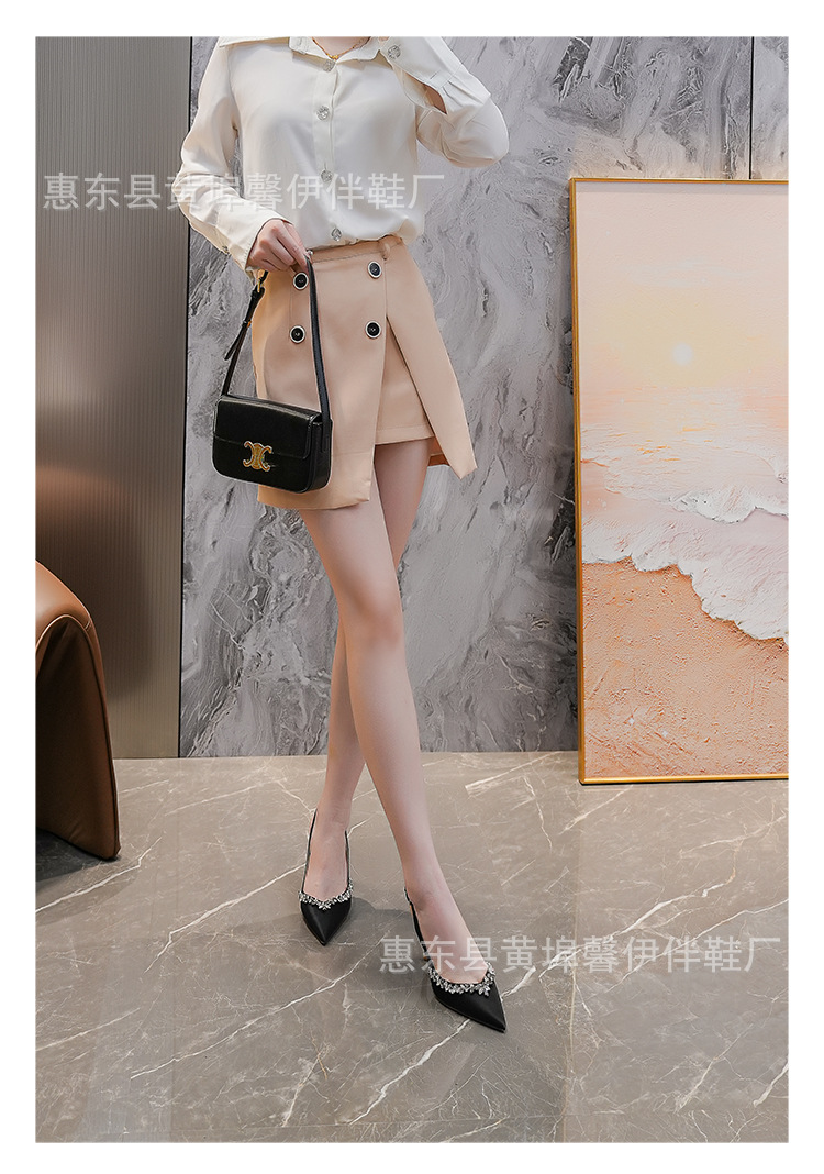 2025 년 봄과 여름 JC 새로운 뾰족한 블랙 라인스톤 하이힐 여성용 샌들 스틸레토 힐 얕은 입 아름다운 누드 신발