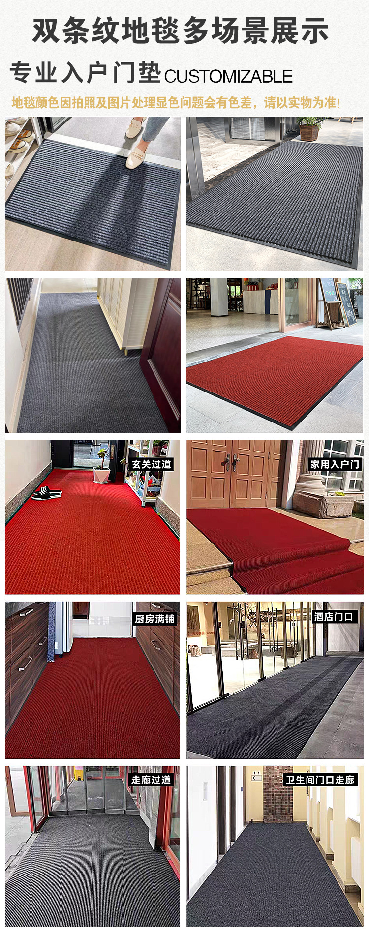 입구 매트 이중 스트라이프 미끄럼 방지 도어매트 현관문 흡수 카펫 상업용 야외 출입구 PVC 미끄럼 방지 매트
