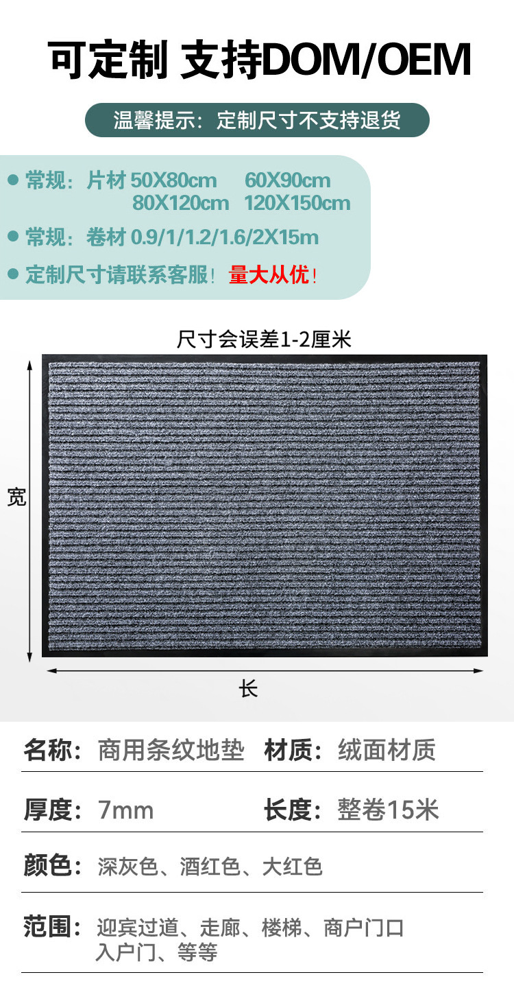입구 매트 이중 스트라이프 미끄럼 방지 도어매트 현관문 흡수 카펫 상업용 야외 출입구 PVC 미끄럼 방지 매트스토어 가기