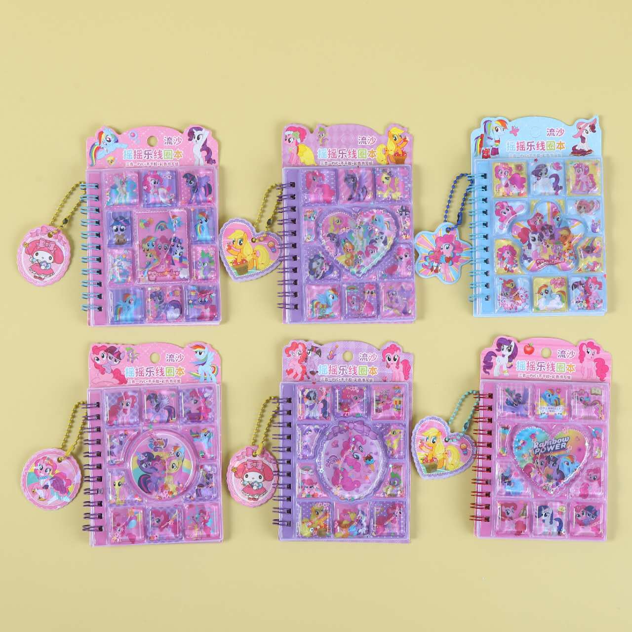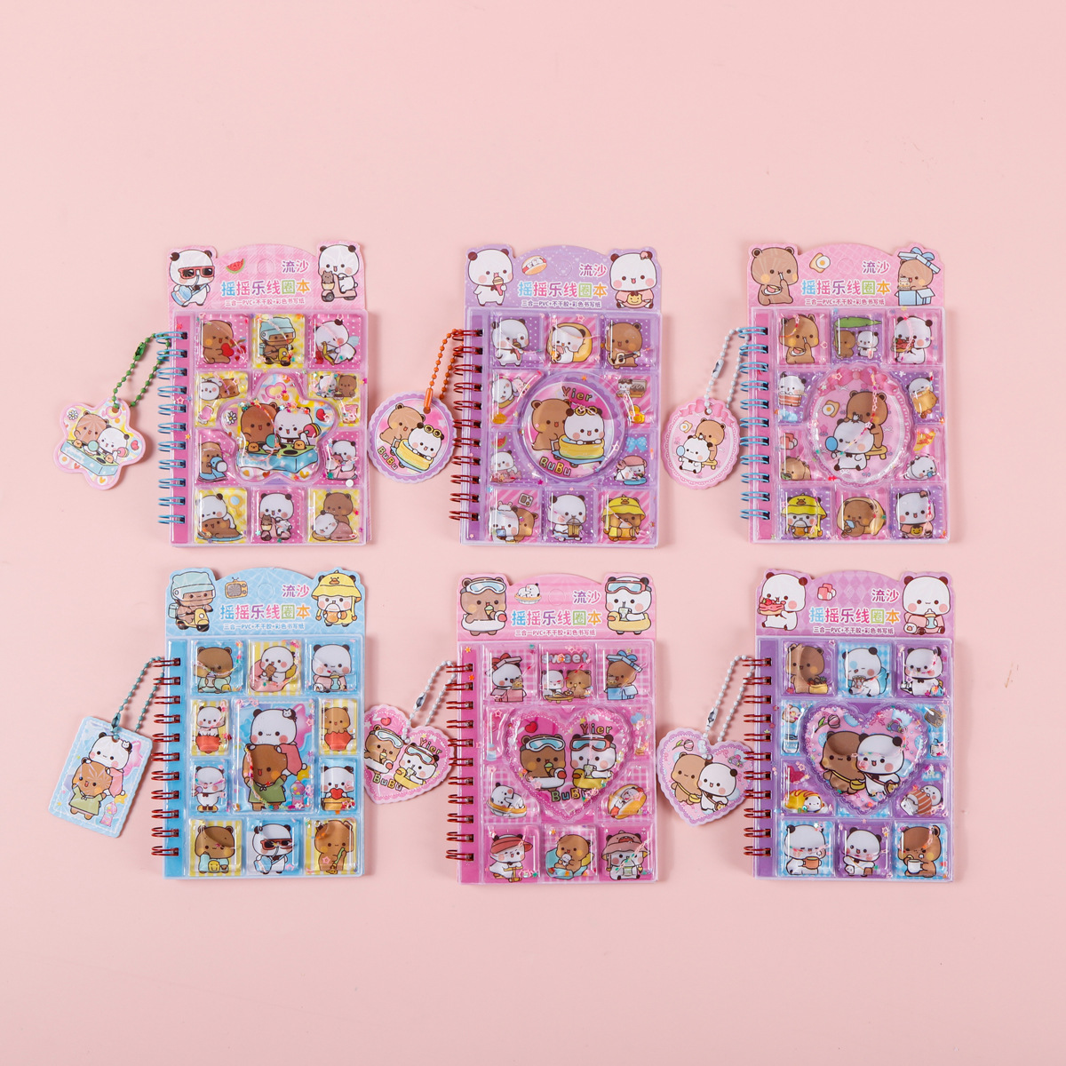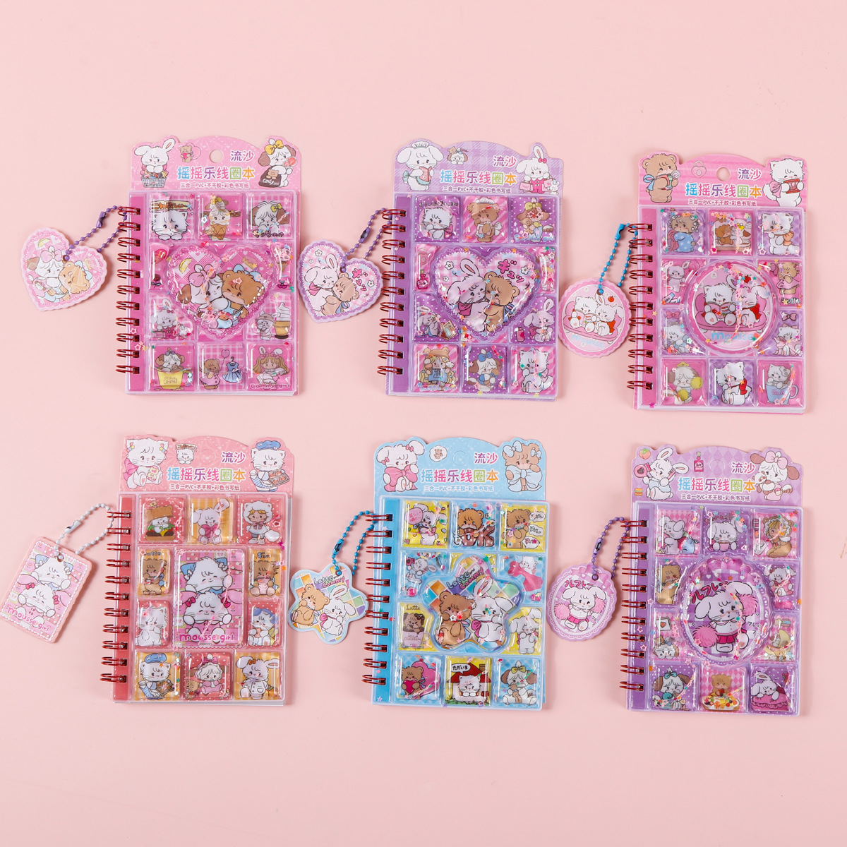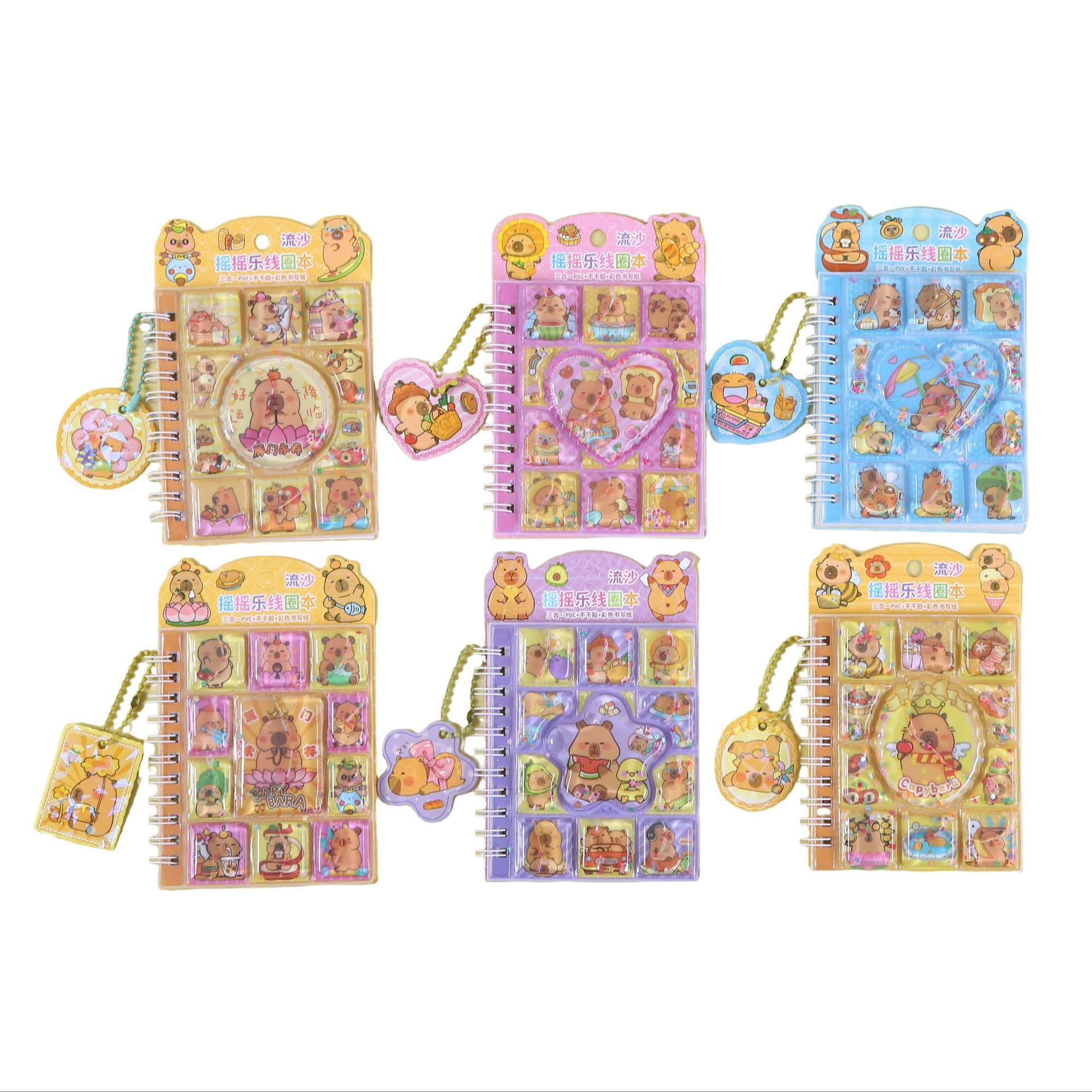 산리오 흐르는 모래 셰이커 코일 노트 만화 물채우기 펜던트 포함 어린이 수첩 스티커 3-in-1 노트북