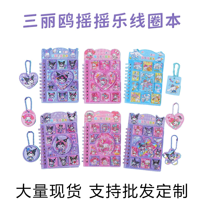 산리오 흐르는 모래 셰이커 코일 노트 만화 물채우기 펜던트 포함 어린이 수첩 스티커 3-in-1 노트북스토어 가기