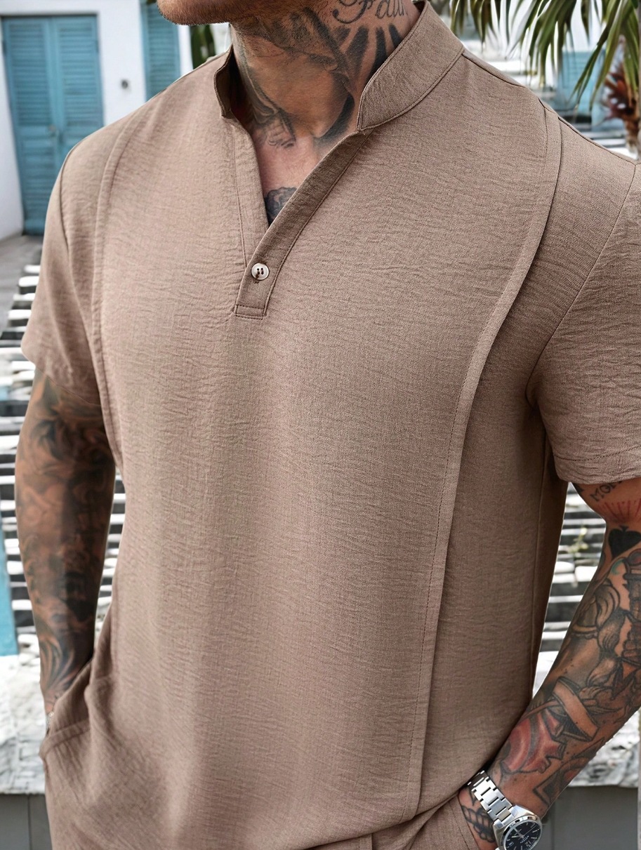2025MPA 여름 유럽과 미국의 국경을 넘는 새로운 중국 헨리 스탠드 칼라 오픈 배럴 스포츠 통기성 레저 남성 세트스토어 가기