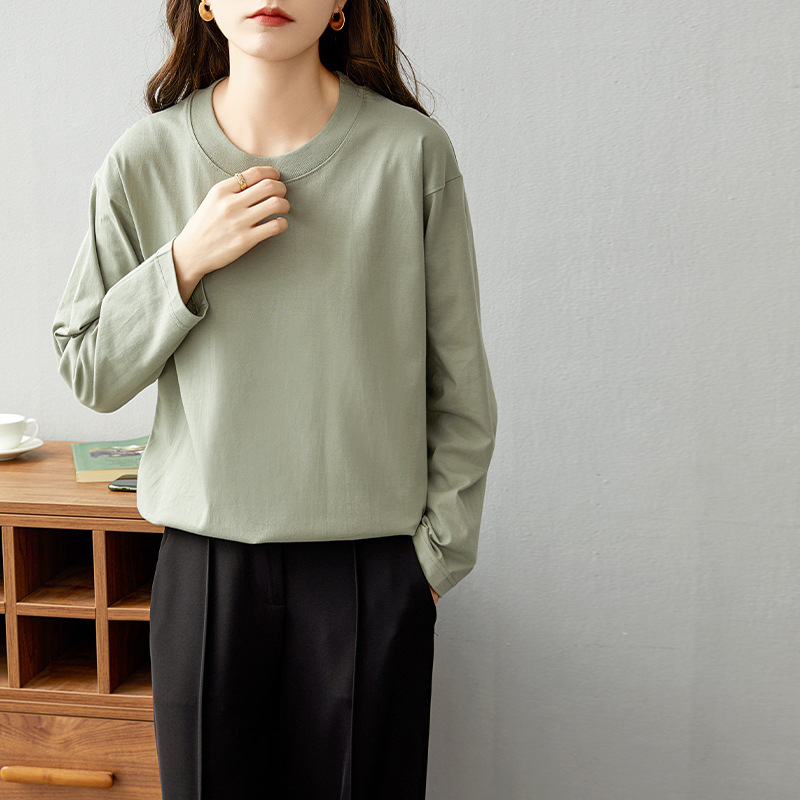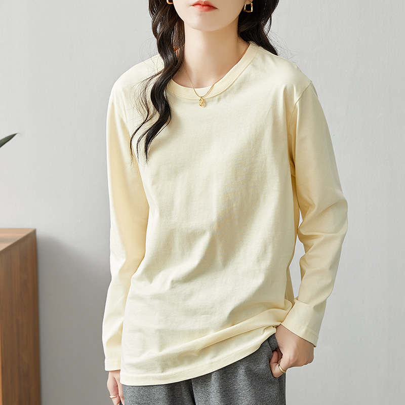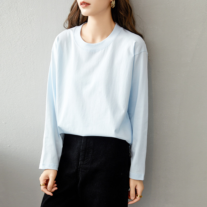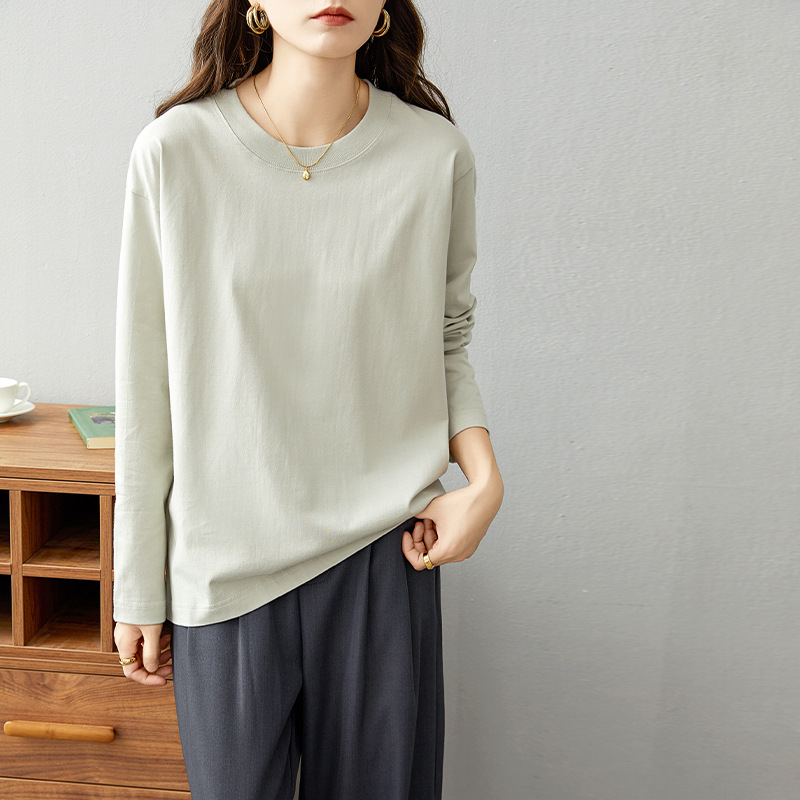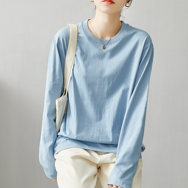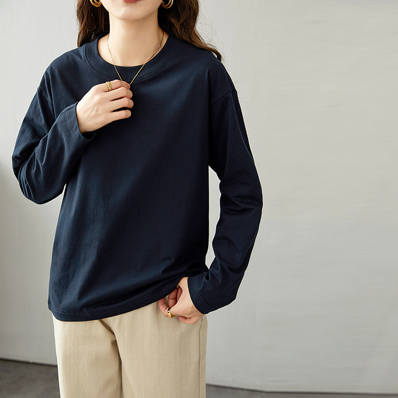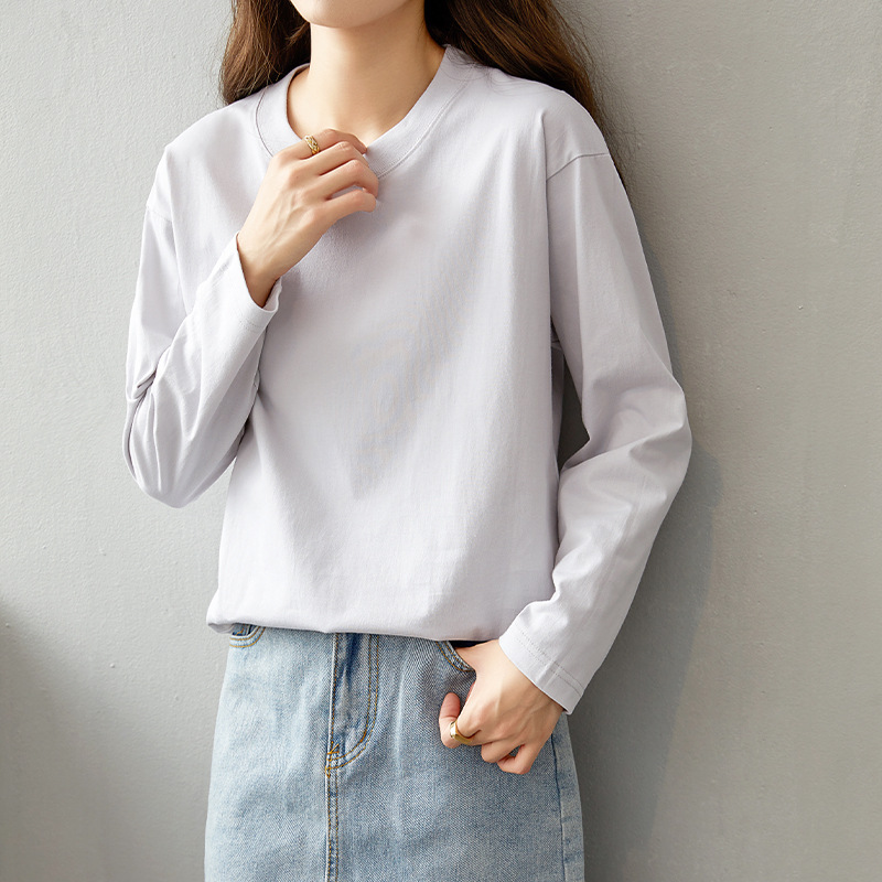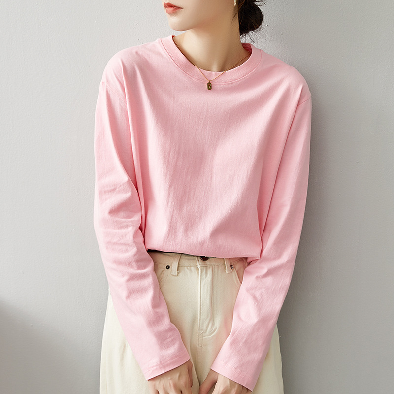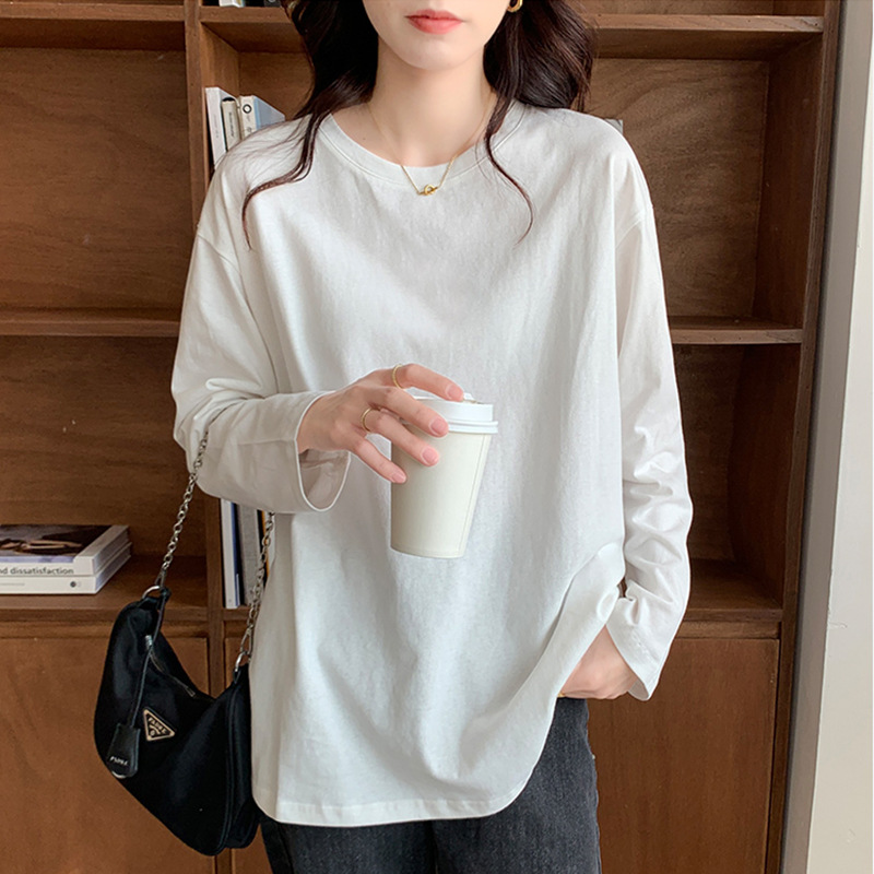 면 긴팔 티셔츠 여성 2025 년 봄과 가을 새로운 여성 캐주얼 루즈 탑 티셔츠 면 내베이스 셔츠스토어 가기