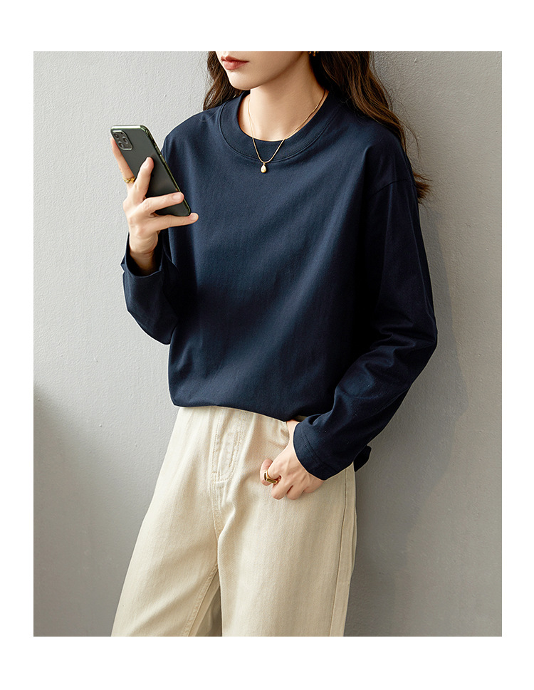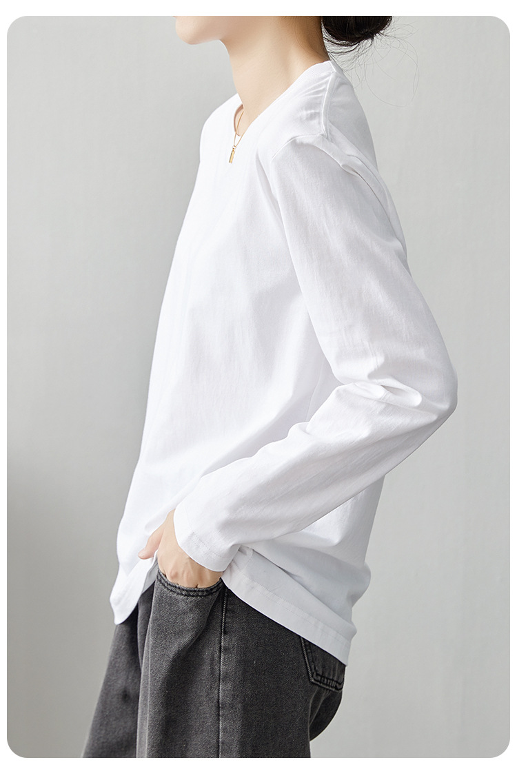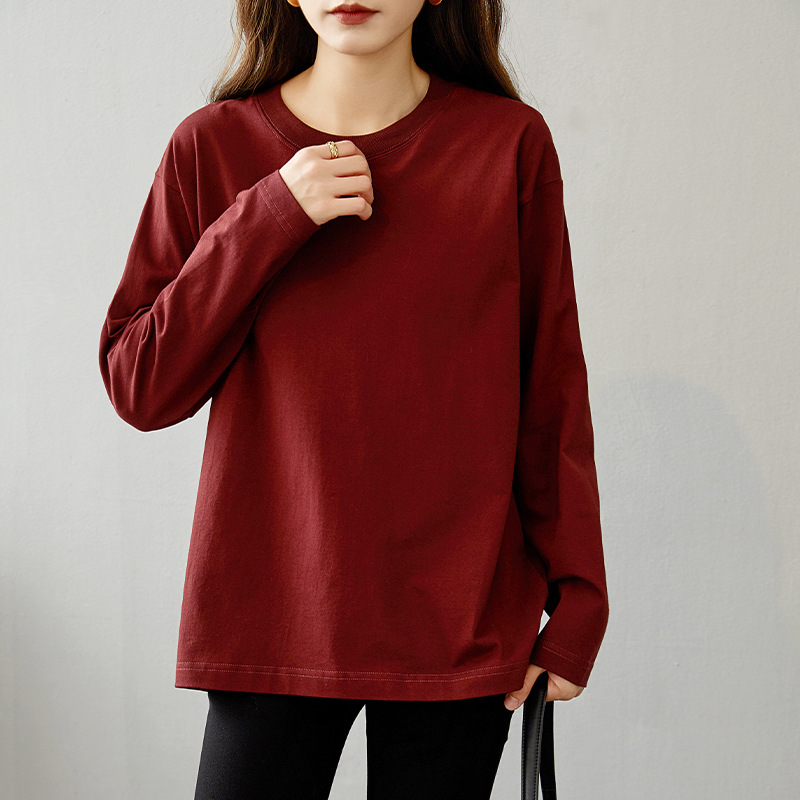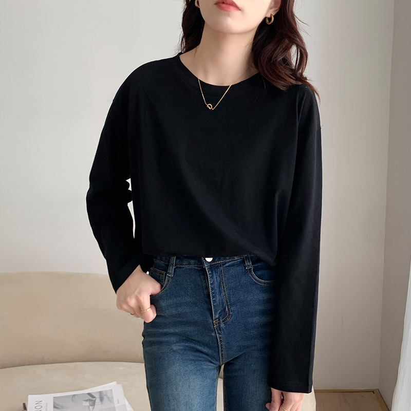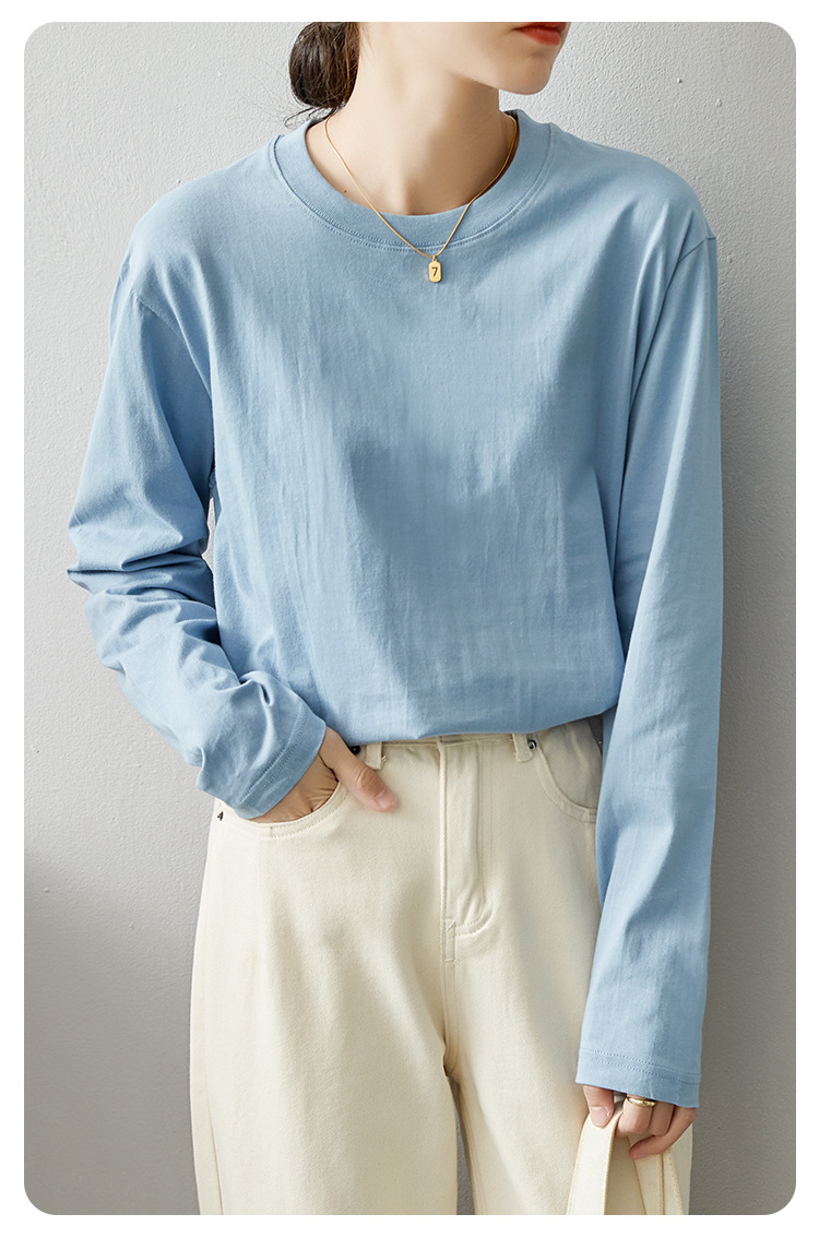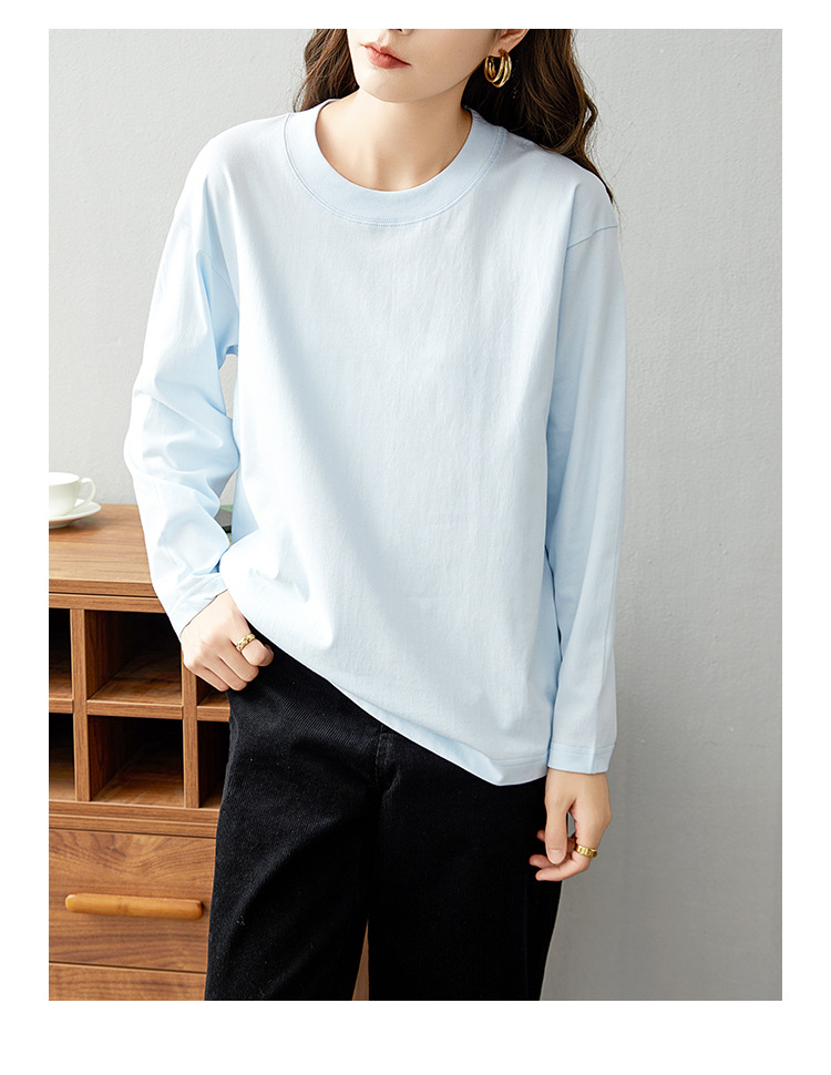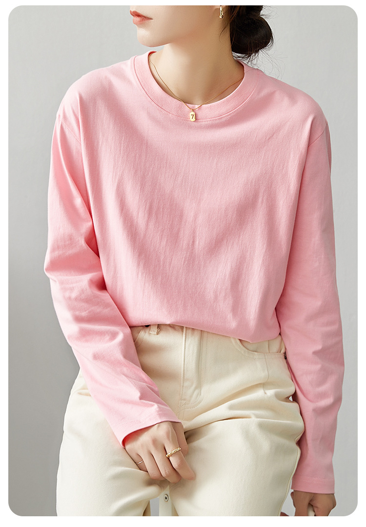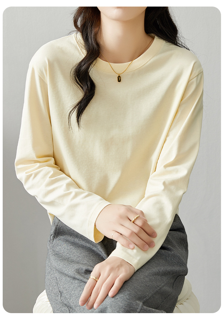 면 긴팔 티셔츠 여성 2025 년 봄과 가을 새로운 여성 캐주얼 루즈 탑 티셔츠 면 내베이스 셔츠스토어 가기