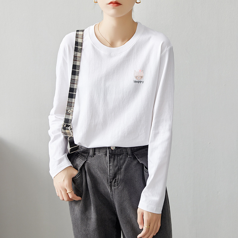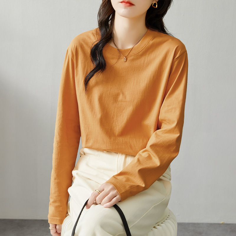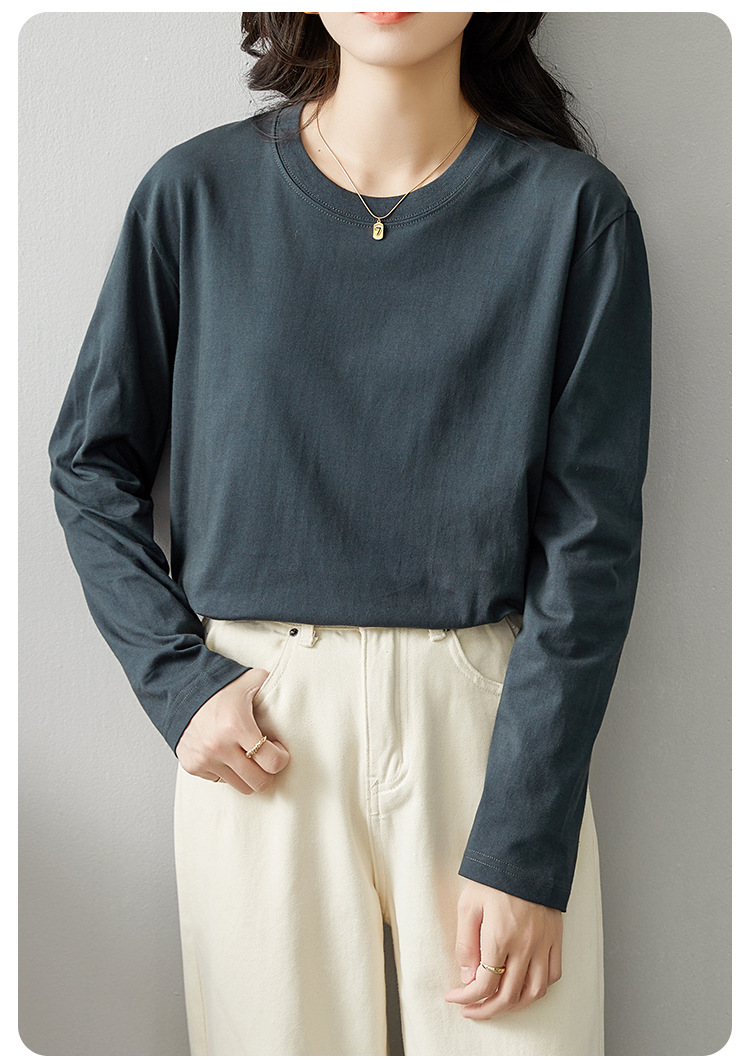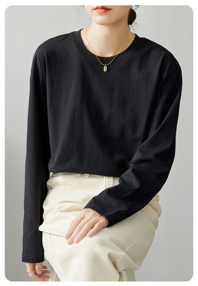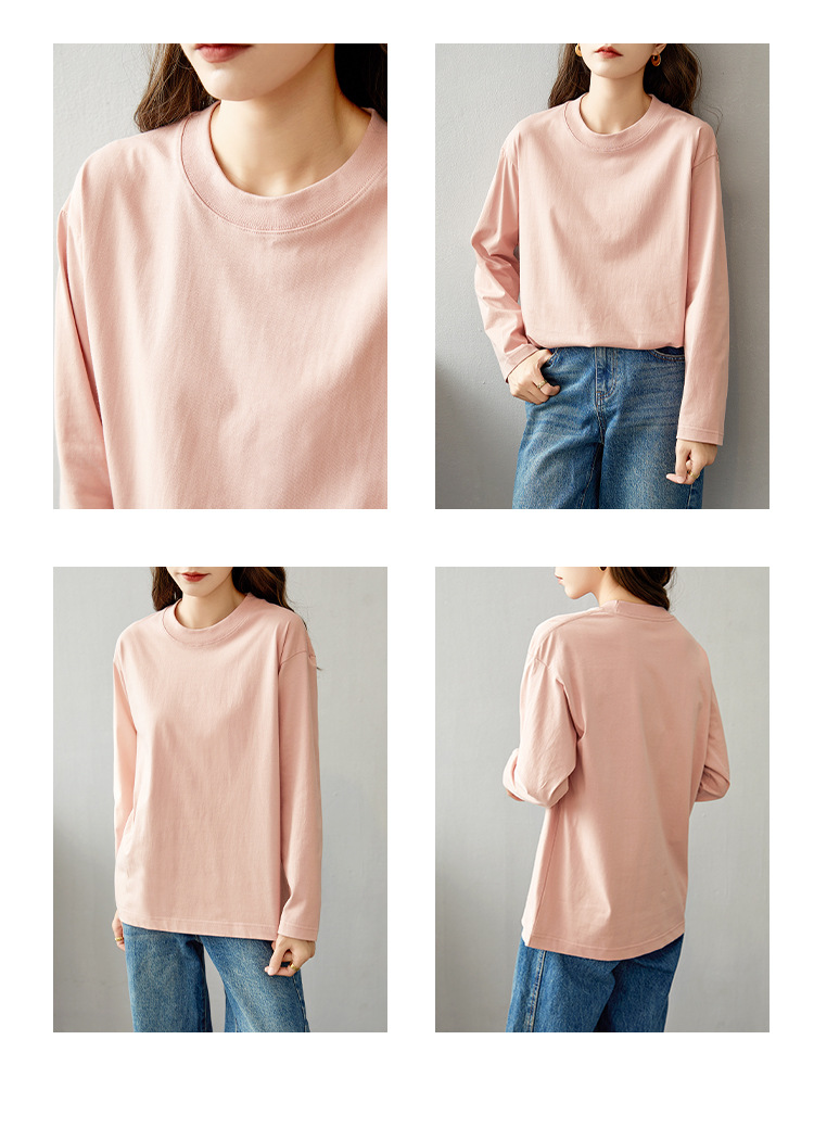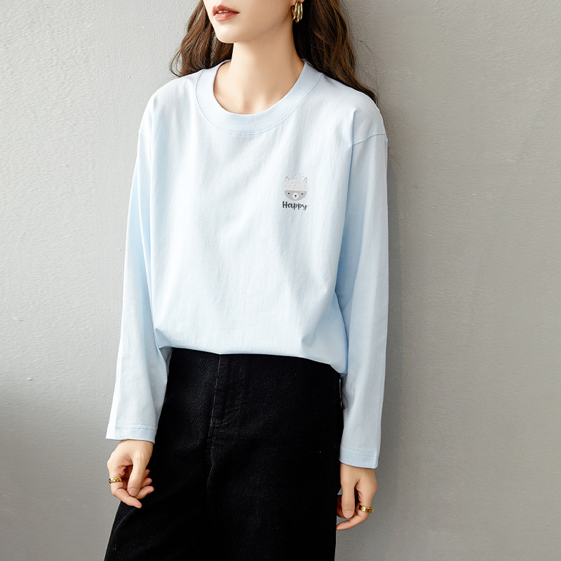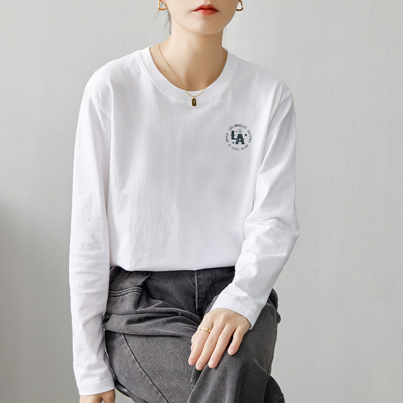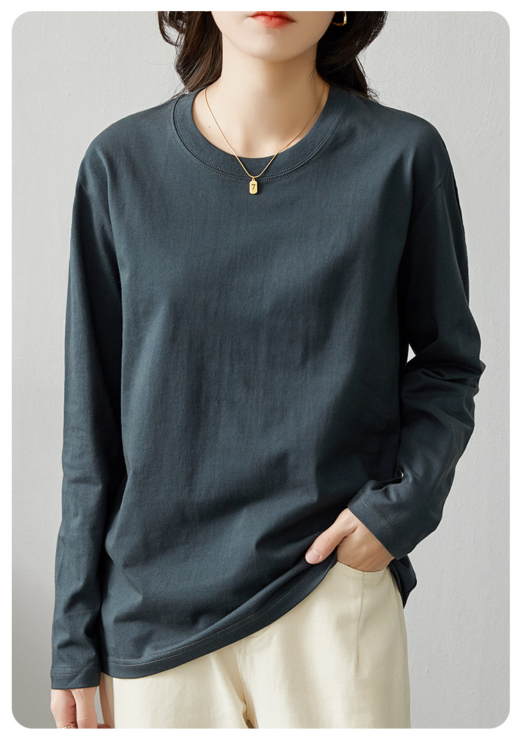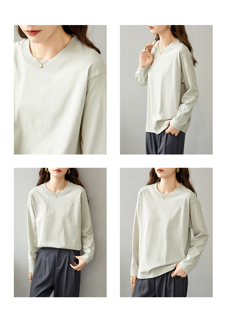 면 긴팔 티셔츠 여성 2025 년 봄과 가을 새로운 여성 캐주얼 루즈 탑 티셔츠 면 내베이스 셔츠스토어 가기