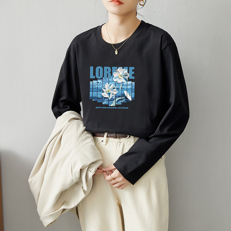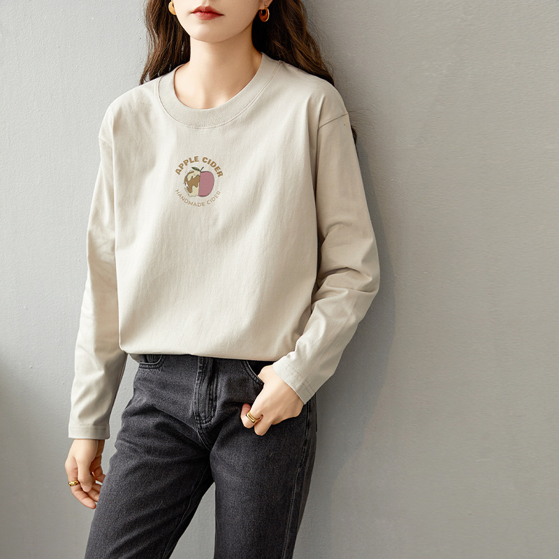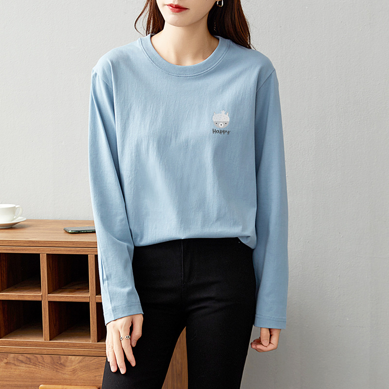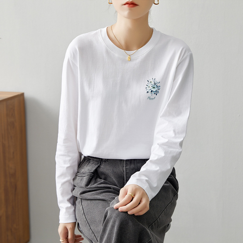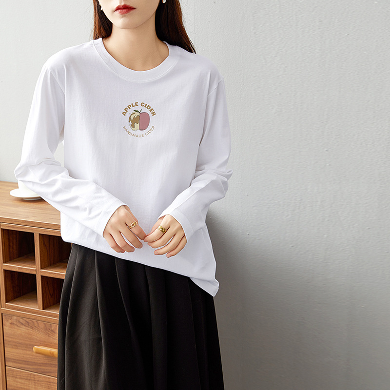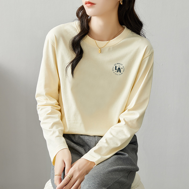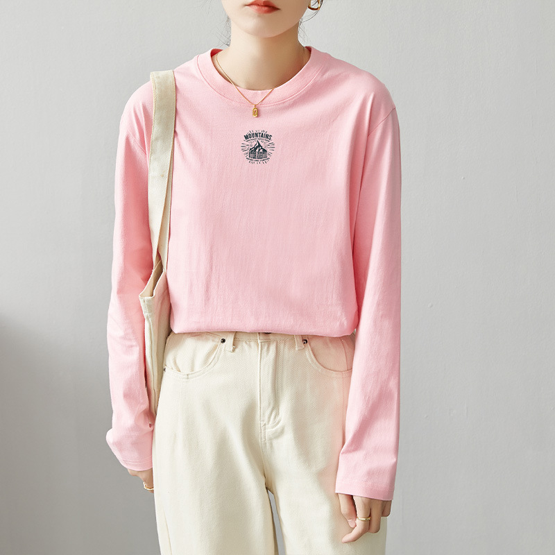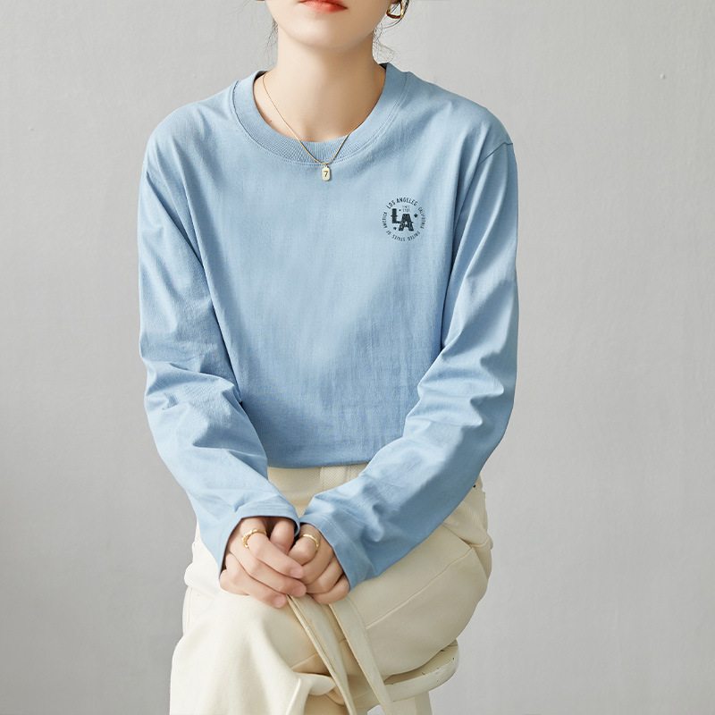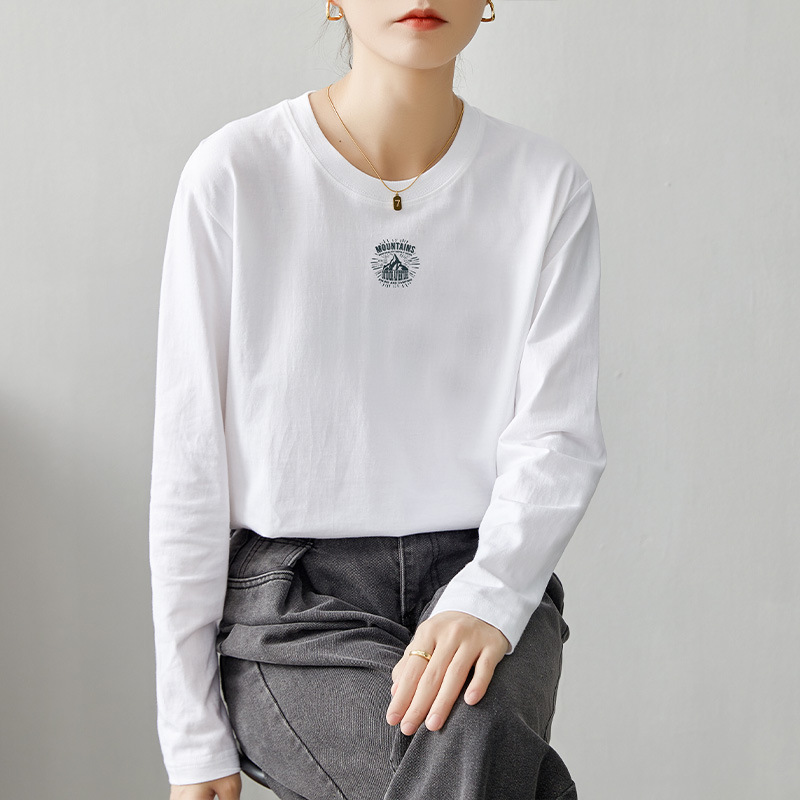 면 긴팔 티셔츠 여성 2025 년 봄과 가을 새로운 여성 캐주얼 루즈 탑 티셔츠 면 내베이스 셔츠스토어 가기