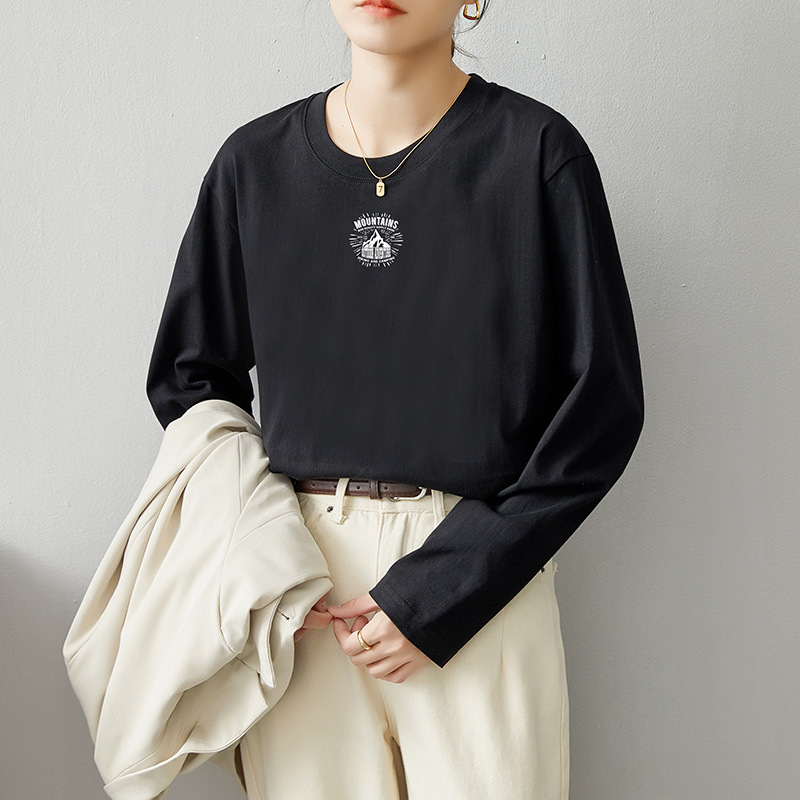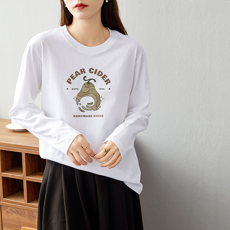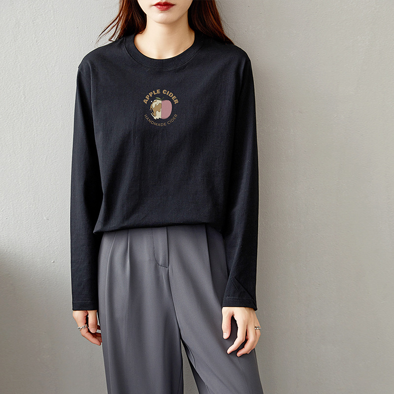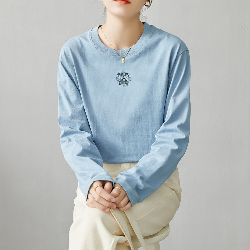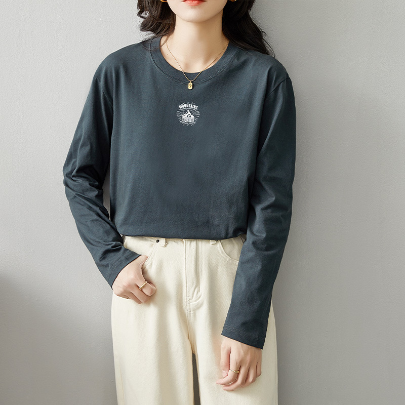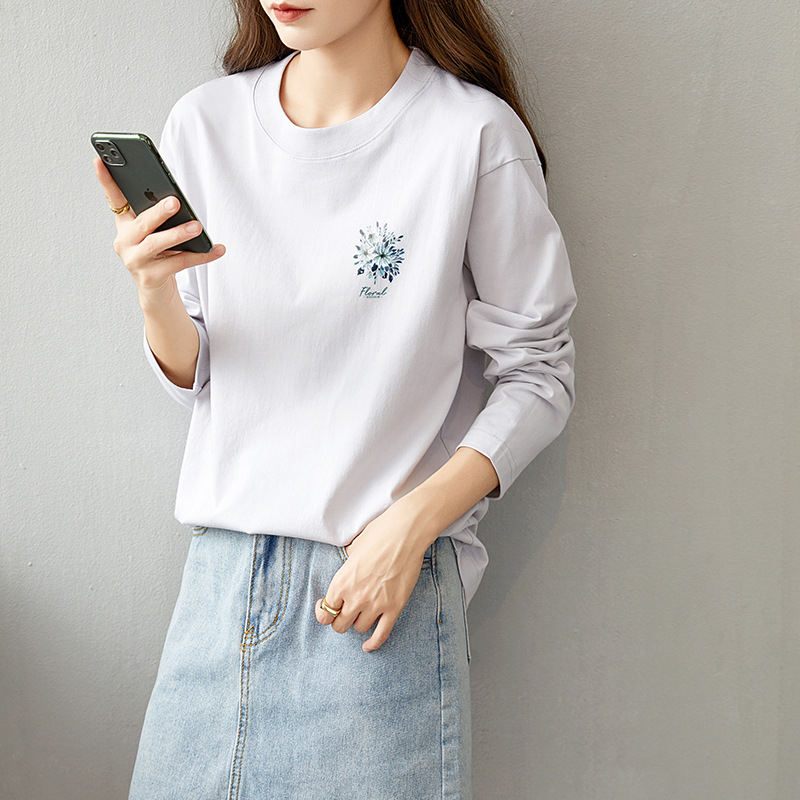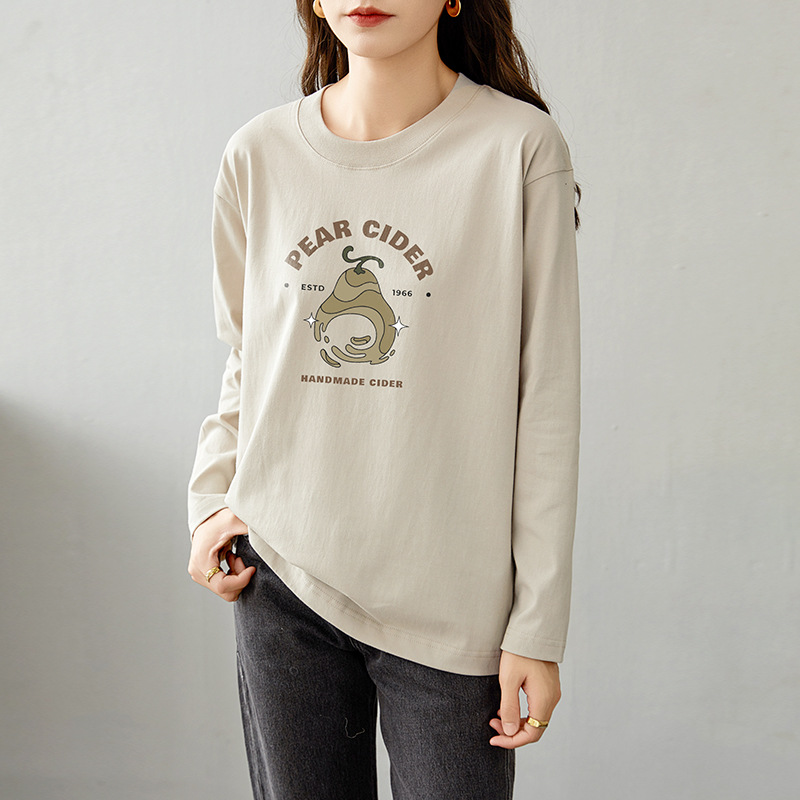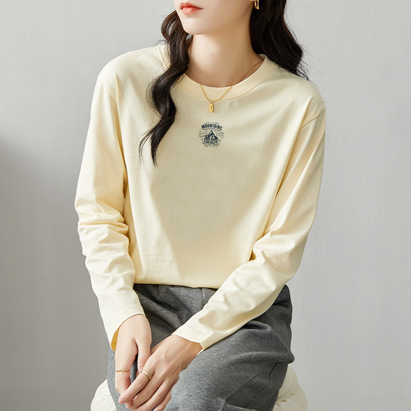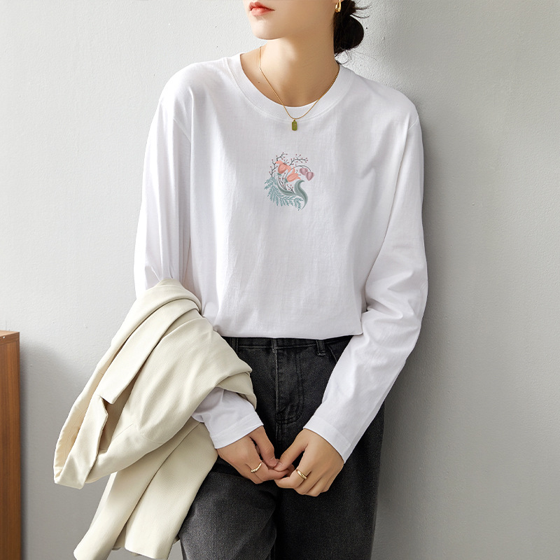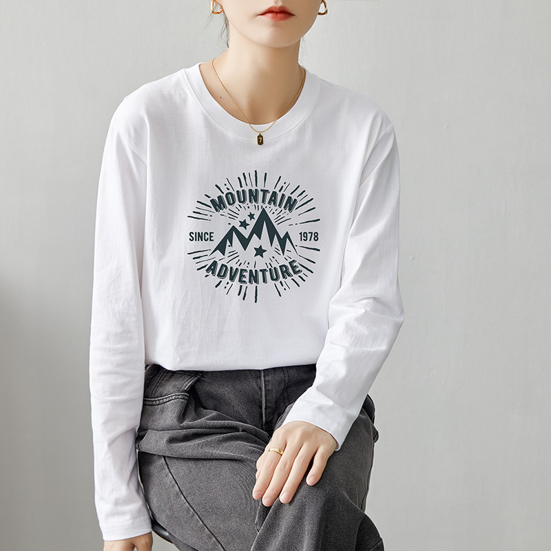 면 긴팔 티셔츠 여성 2025 년 봄과 가을 새로운 여성 캐주얼 루즈 탑 티셔츠 면 내베이스 셔츠스토어 가기