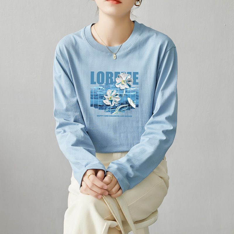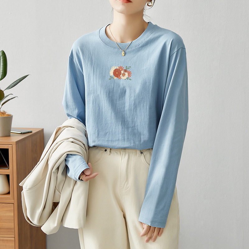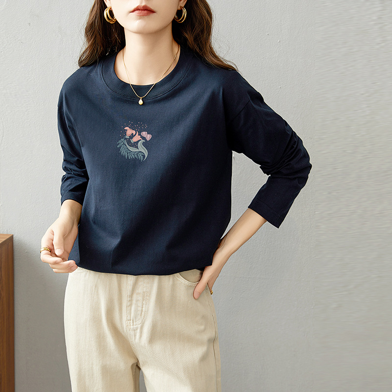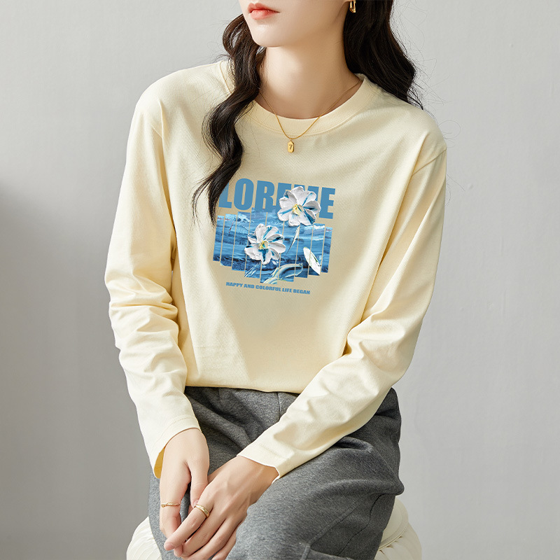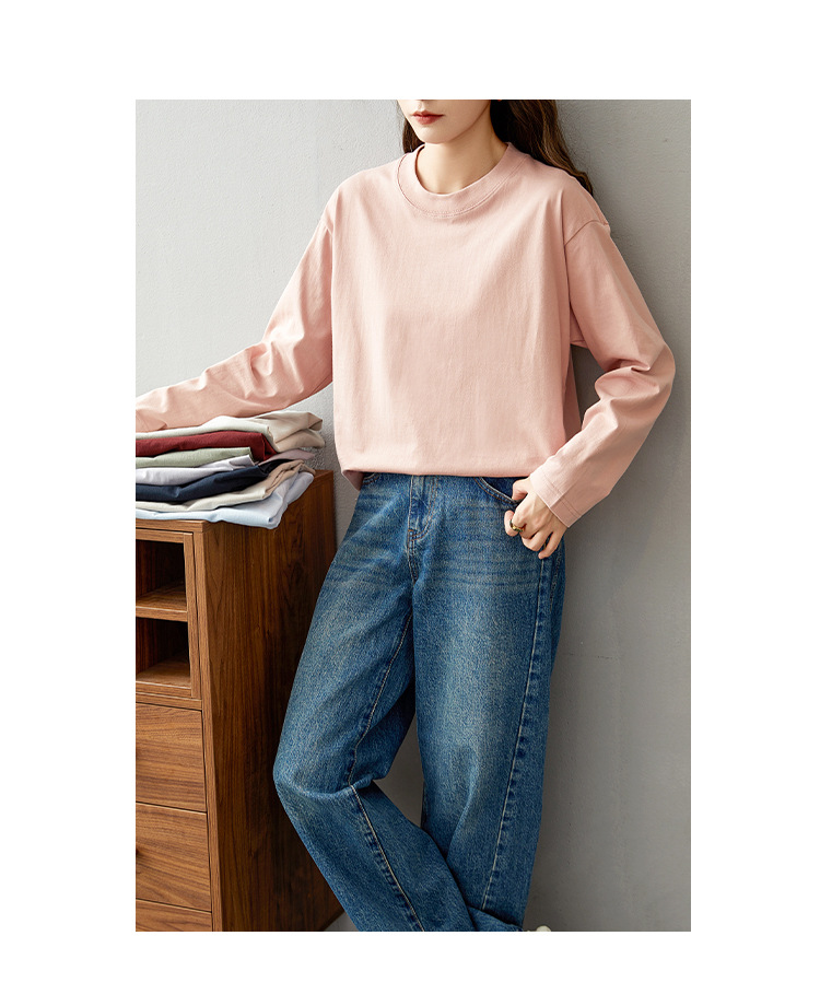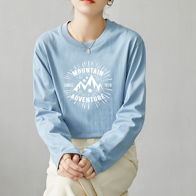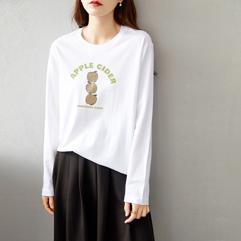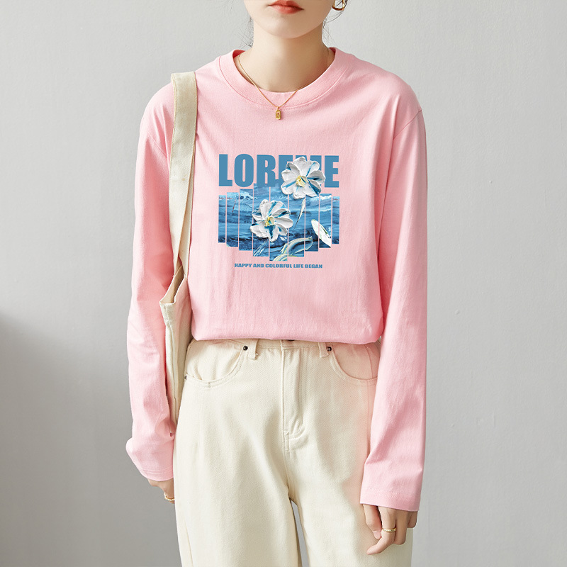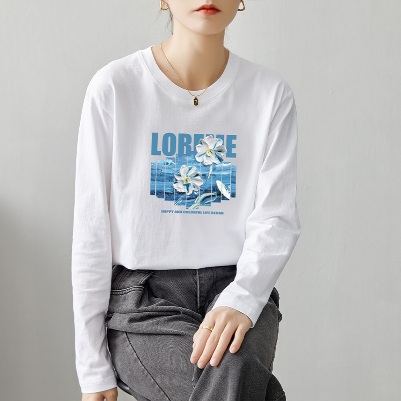면 긴팔 티셔츠 여성 2025 년 봄과 가을 새로운 여성 캐주얼 루즈 탑 티셔츠 면 내베이스 셔츠스토어 가기