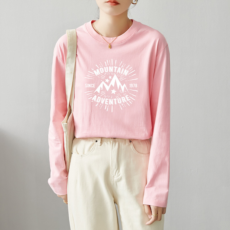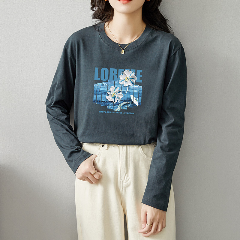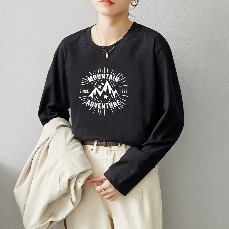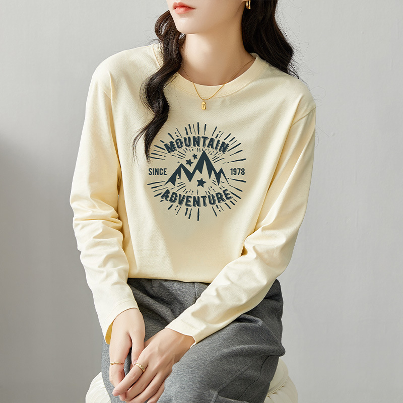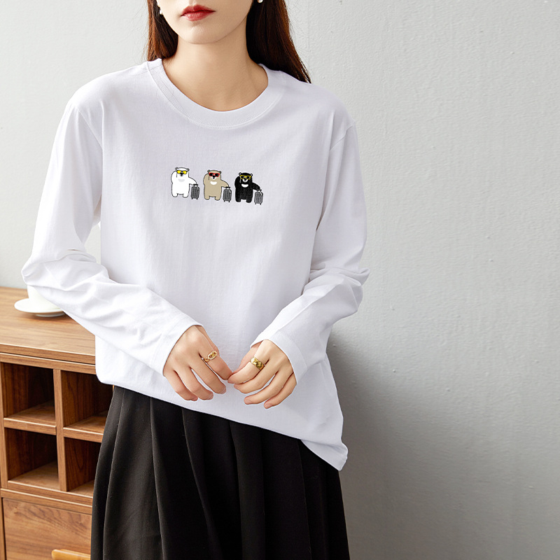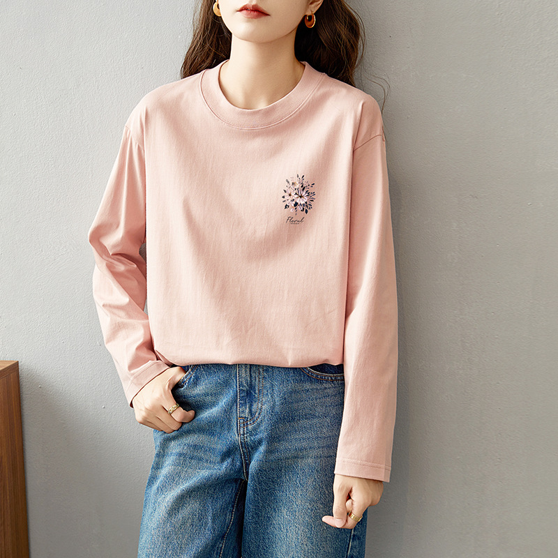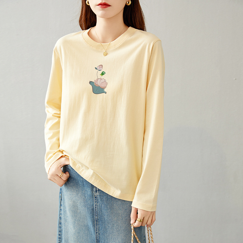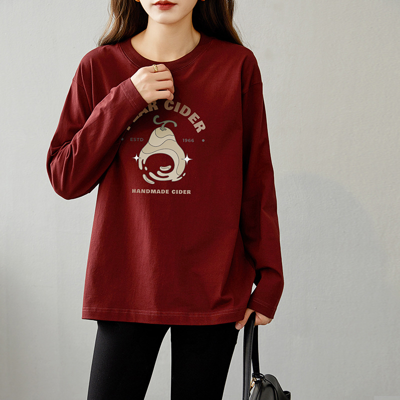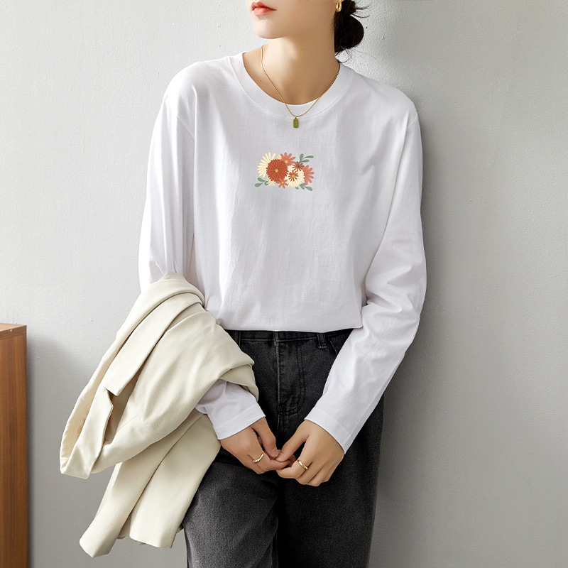 면 긴팔 티셔츠 여성 2025 년 봄과 가을 새로운 여성 캐주얼 루즈 탑 티셔츠 면 내베이스 셔츠스토어 가기