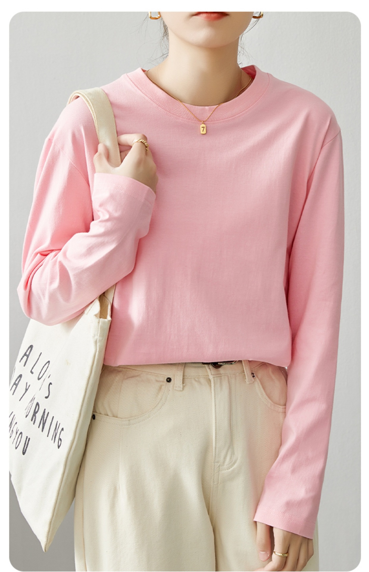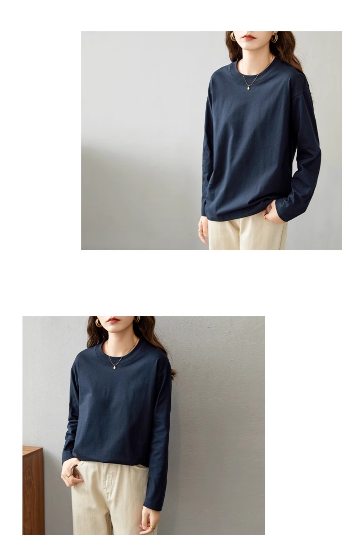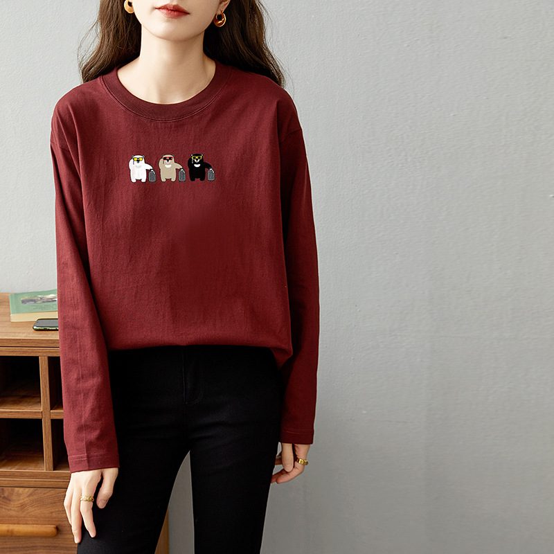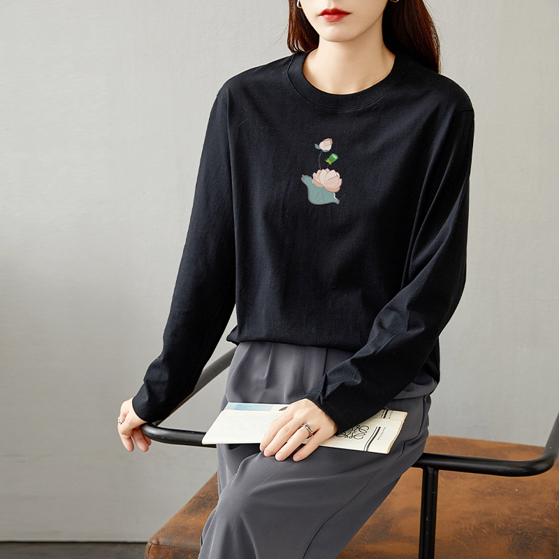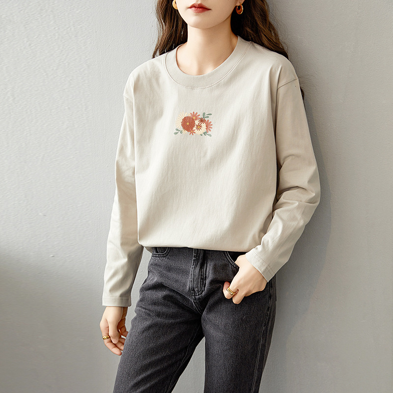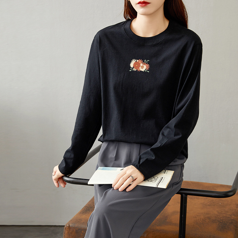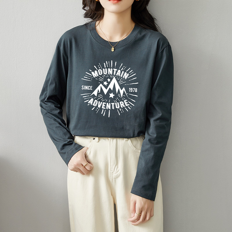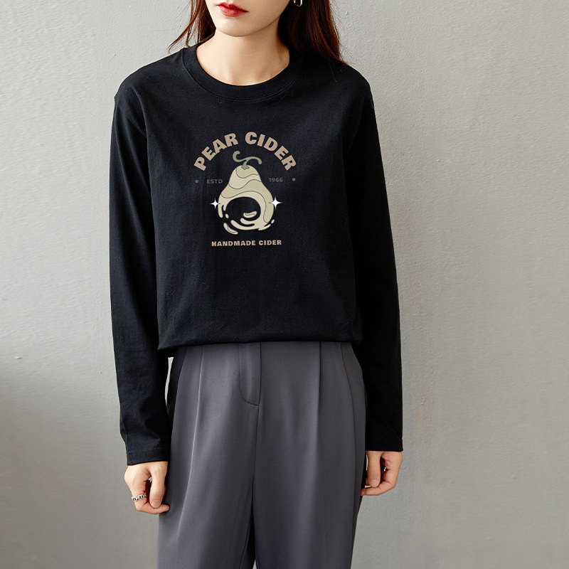 면 긴팔 티셔츠 여성 2025 년 봄과 가을 새로운 여성 캐주얼 루즈 탑 티셔츠 면 내베이스 셔츠스토어 가기