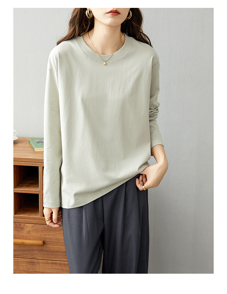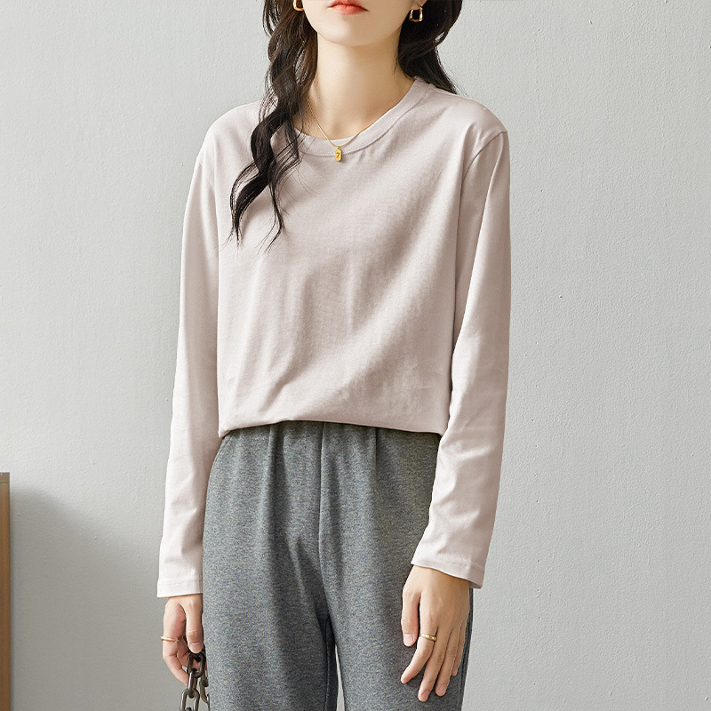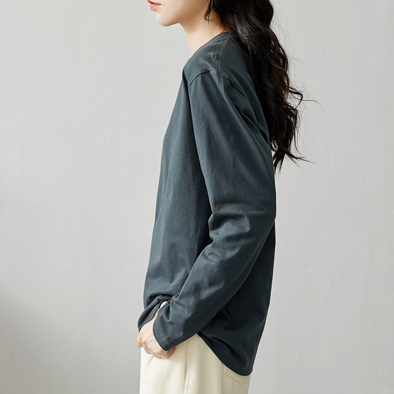 면 긴팔 티셔츠 여성 2025 년 봄과 가을 새로운 여성 캐주얼 루즈 탑 티셔츠 면 내베이스 셔츠