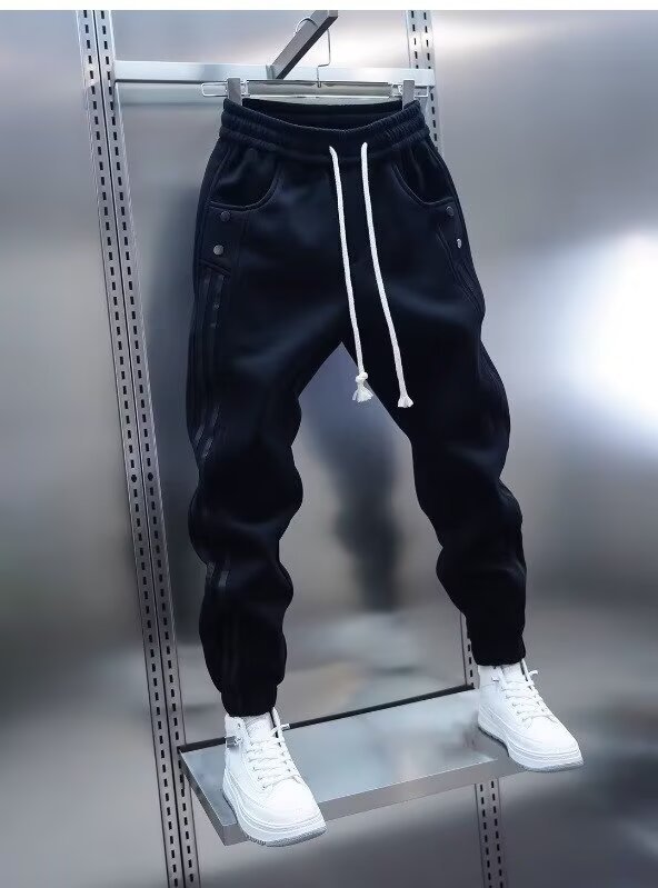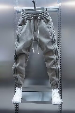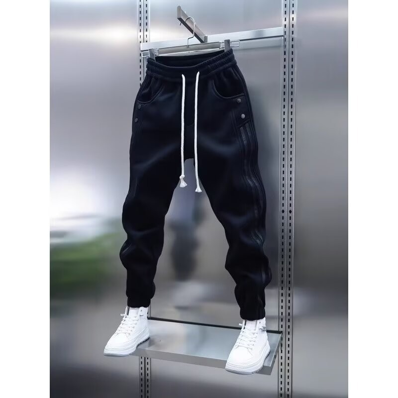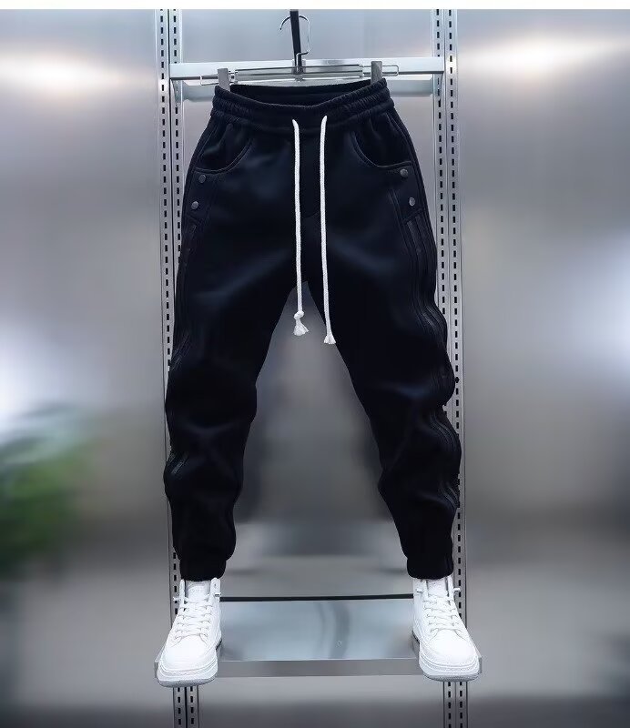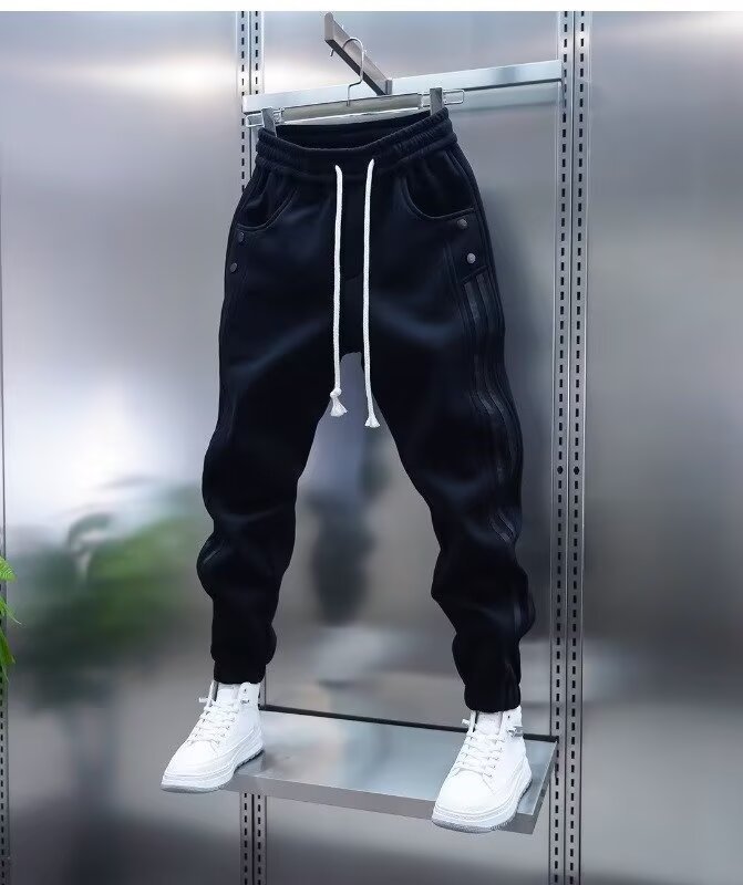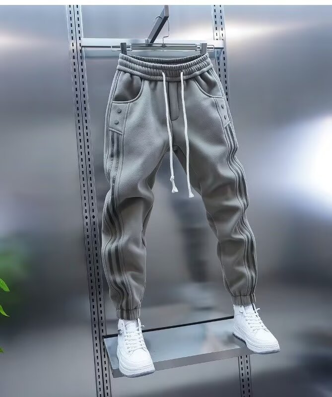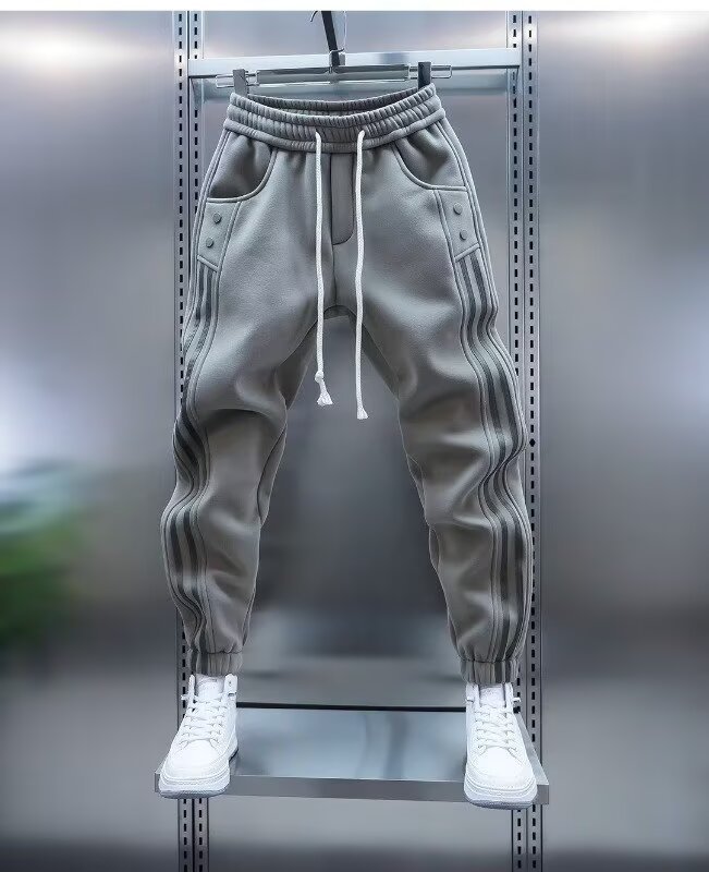 남자 봄과 가을 새로운 도착 스티칭 수직 스트립 캐주얼 바지, 스트레클 허리 올 매치 바지 트렌디 스키니 바지스토어 가기
