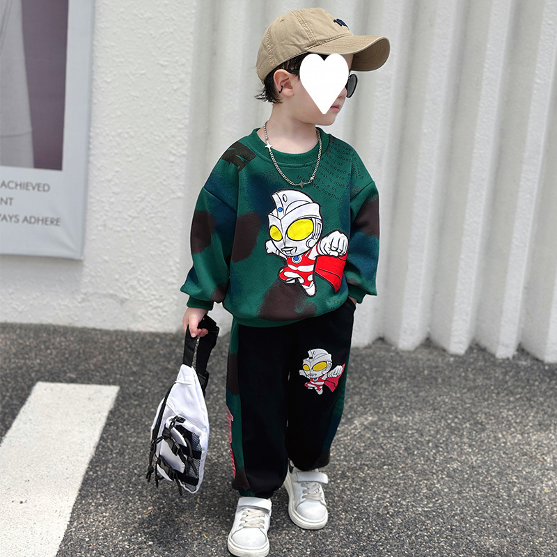 Altman Boys 봄과 가을 스웨트 셔츠 세트 2025 새로운 잘 생긴 아기 유행 어린이 봄 착용 스포츠 투피스 세트스토어 가기