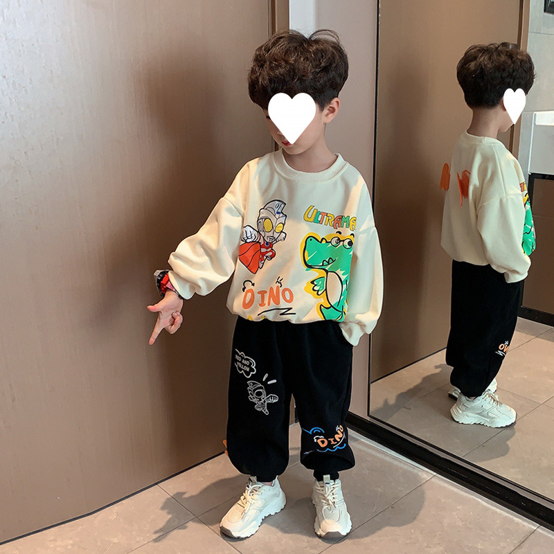 Altman Boys 봄과 가을 스웨트 셔츠 세트 2025 새로운 잘 생긴 아기 유행 어린이 봄 착용 스포츠 투피스 세트