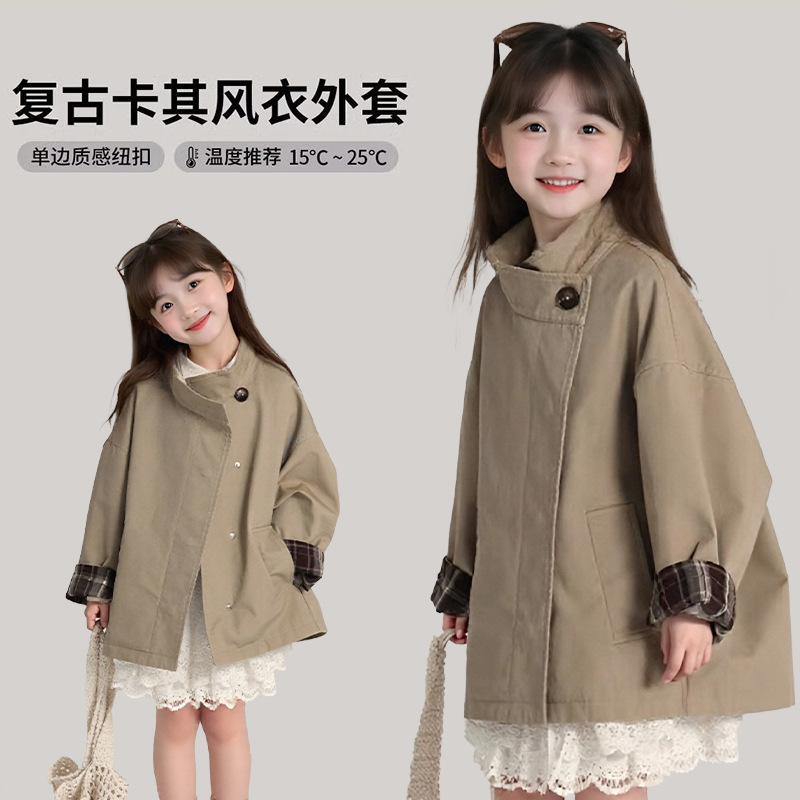 어린이 캐주얼 한국 유행 패션 새로운 도착 소녀 2025 봄 새 도착 올매치 탑 레트로 코트 코트