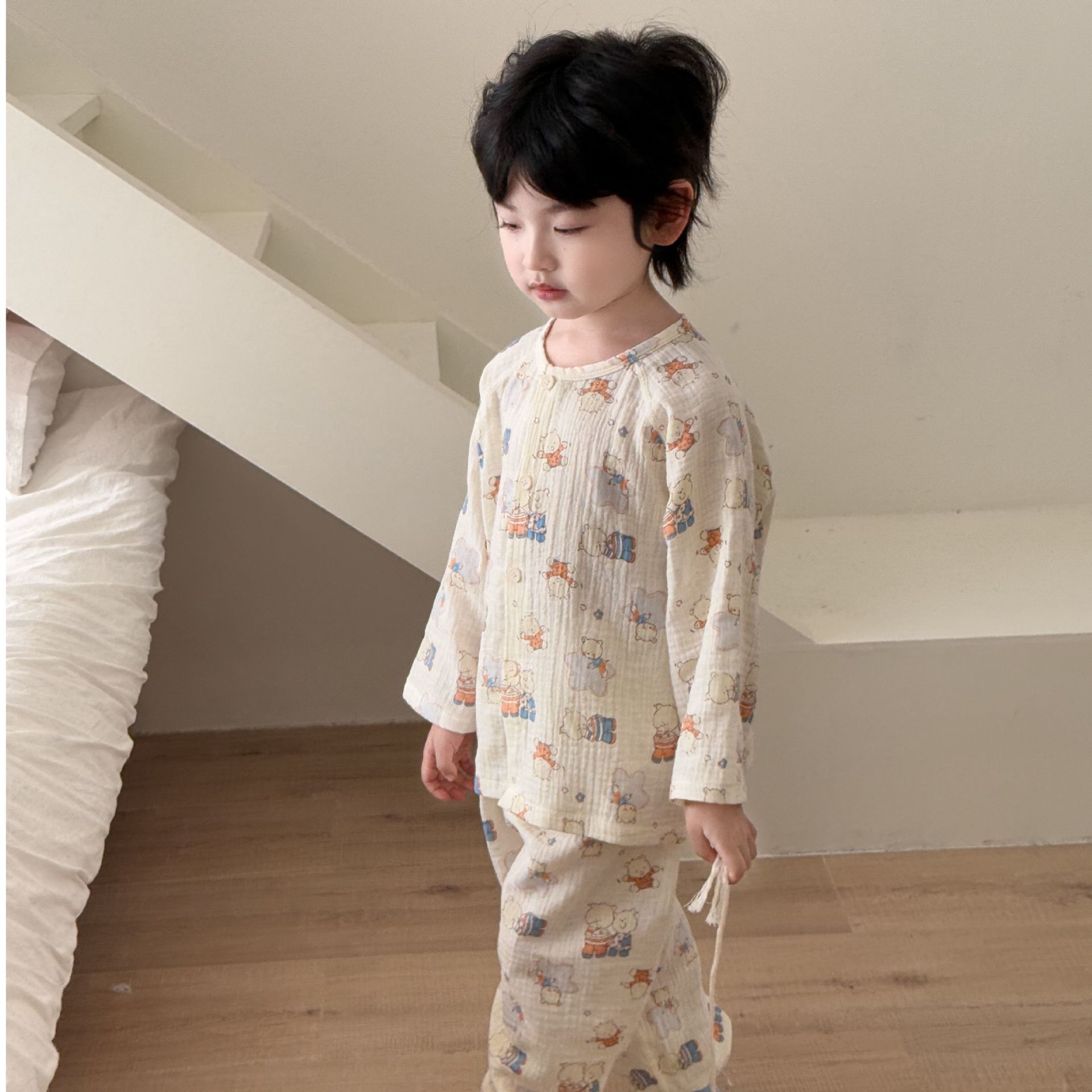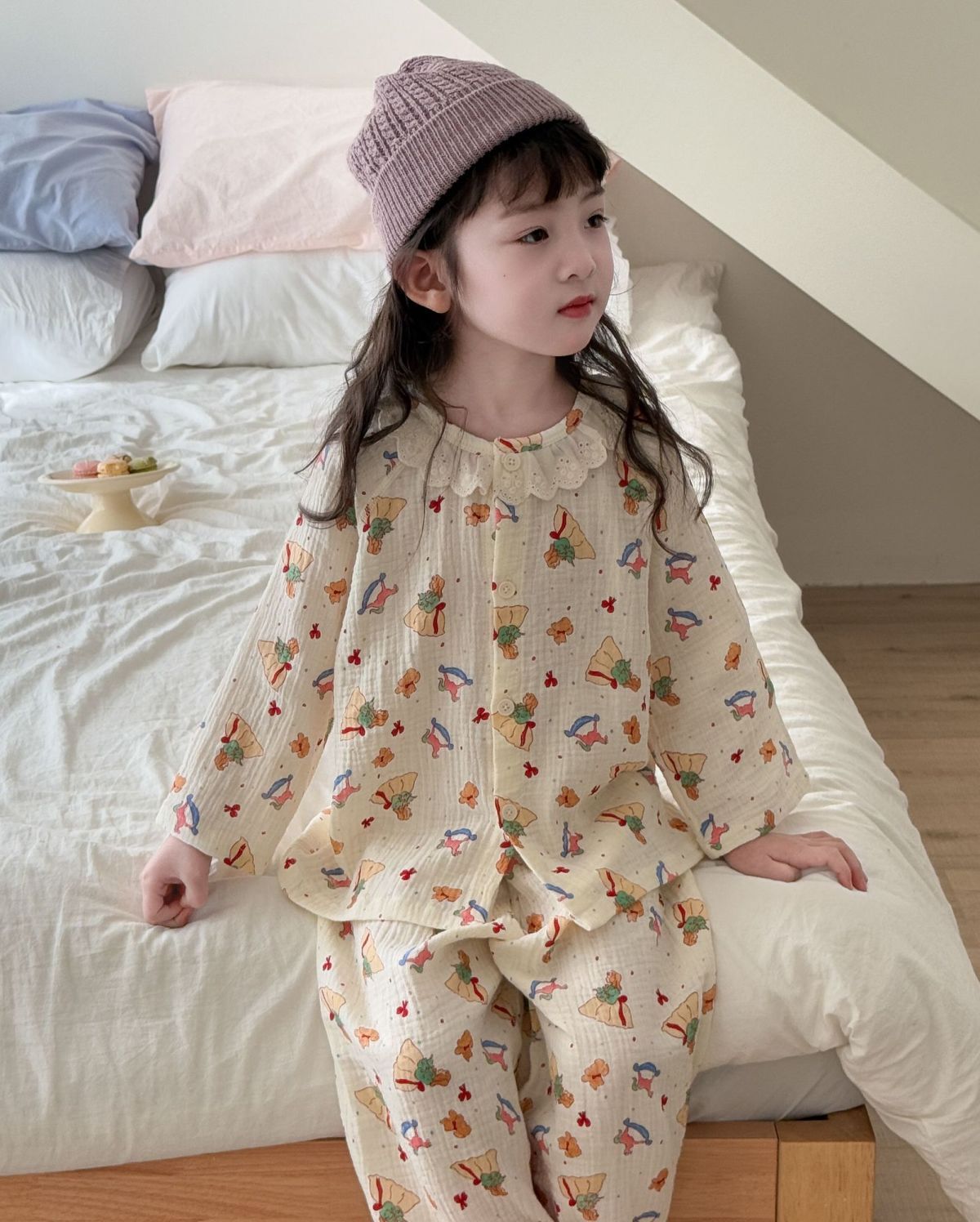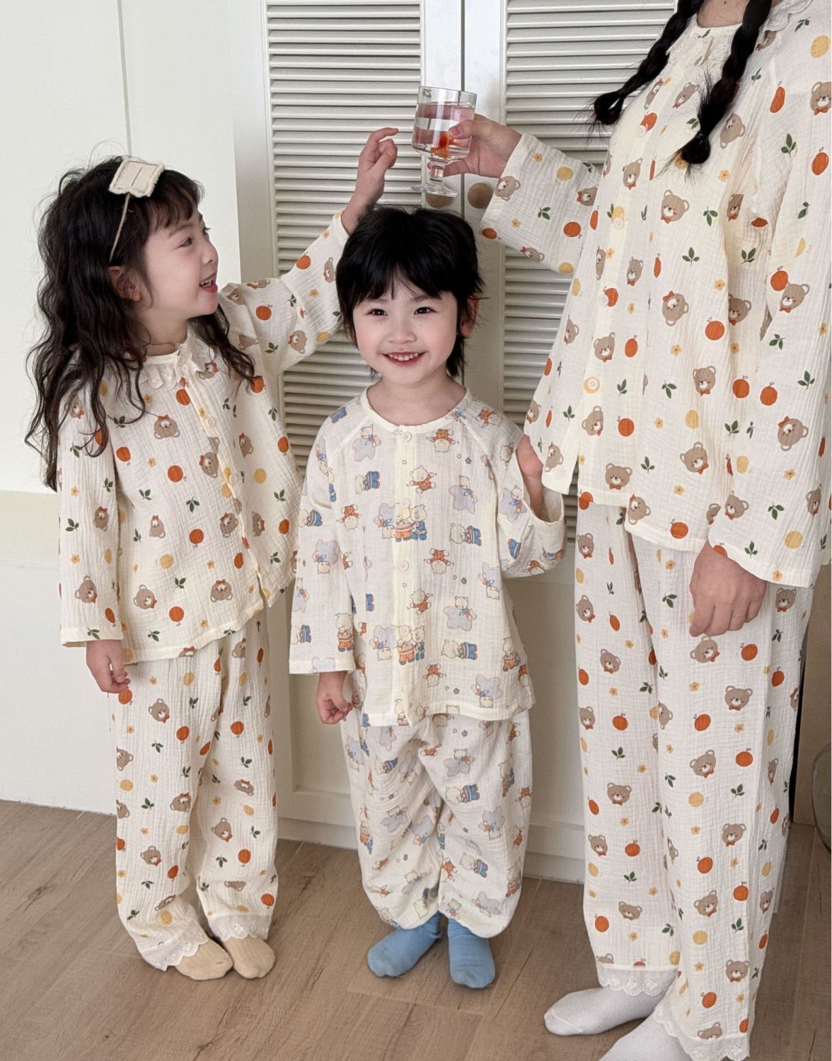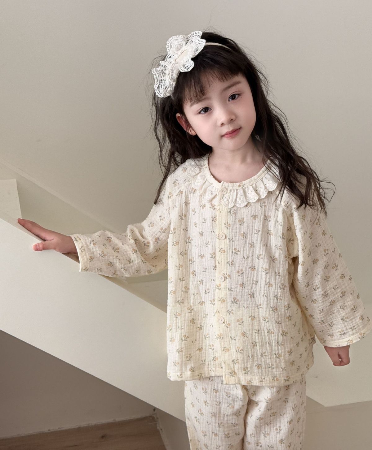 순면 어린이 잠옷 세트 집 옷 긴 소매 꽃 소녀의 달콤한 사이버 연예인 부모-아이 잠옷 세트 느슨한스토어 가기