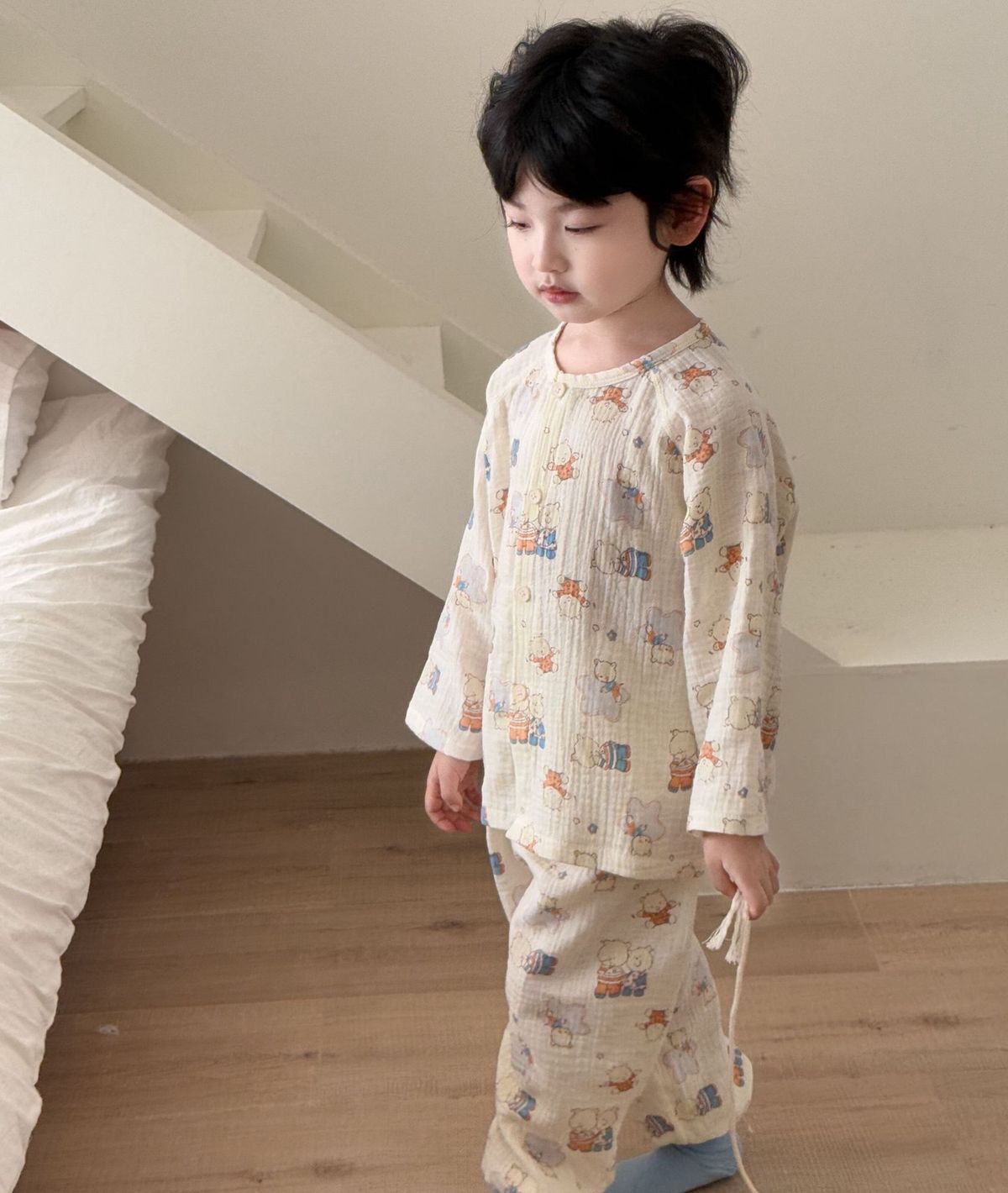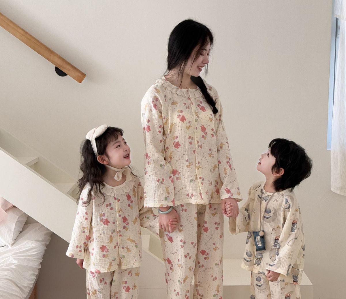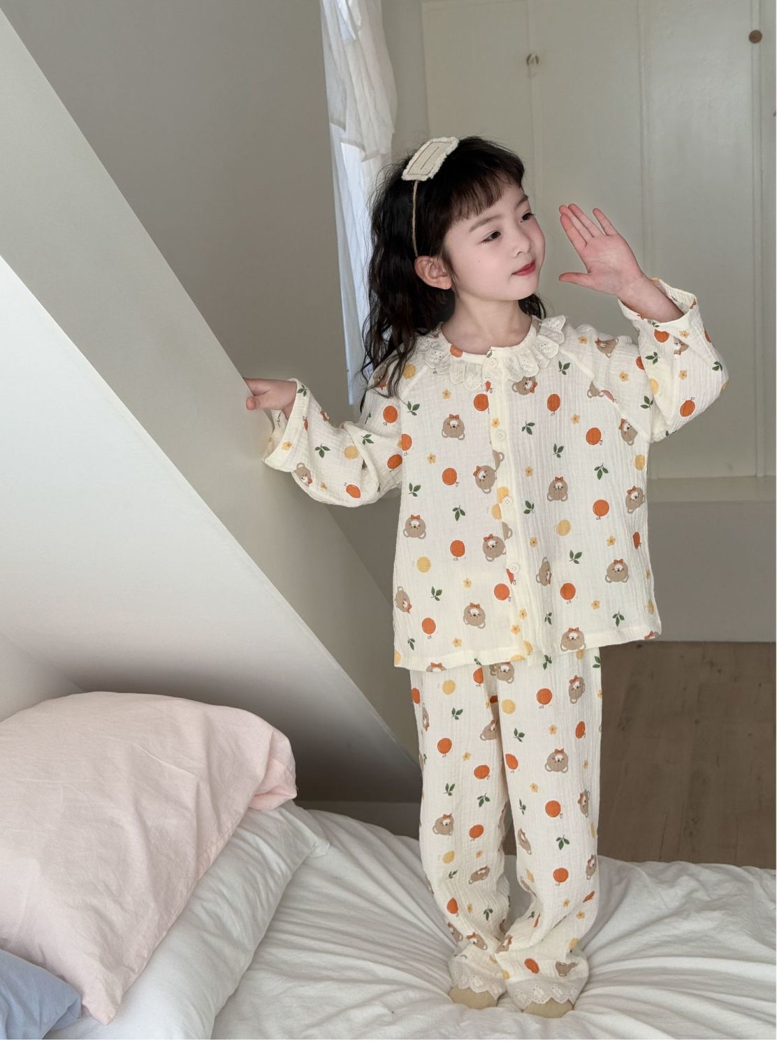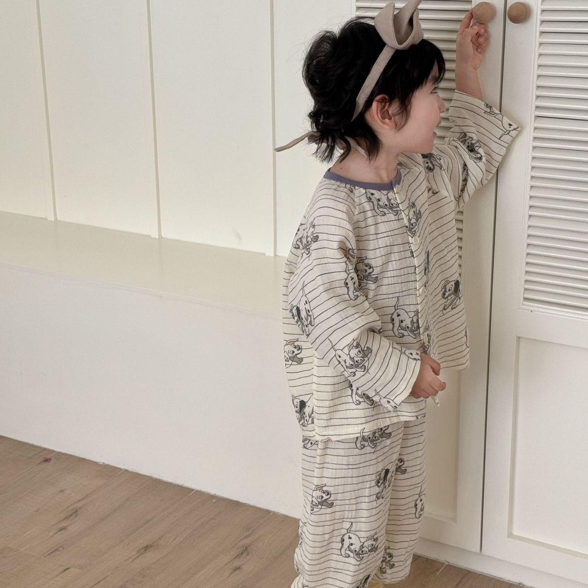 순면 어린이 잠옷 세트 집 옷 긴 소매 꽃 소녀의 달콤한 사이버 연예인 부모-아이 잠옷 세트 느슨한스토어 가기