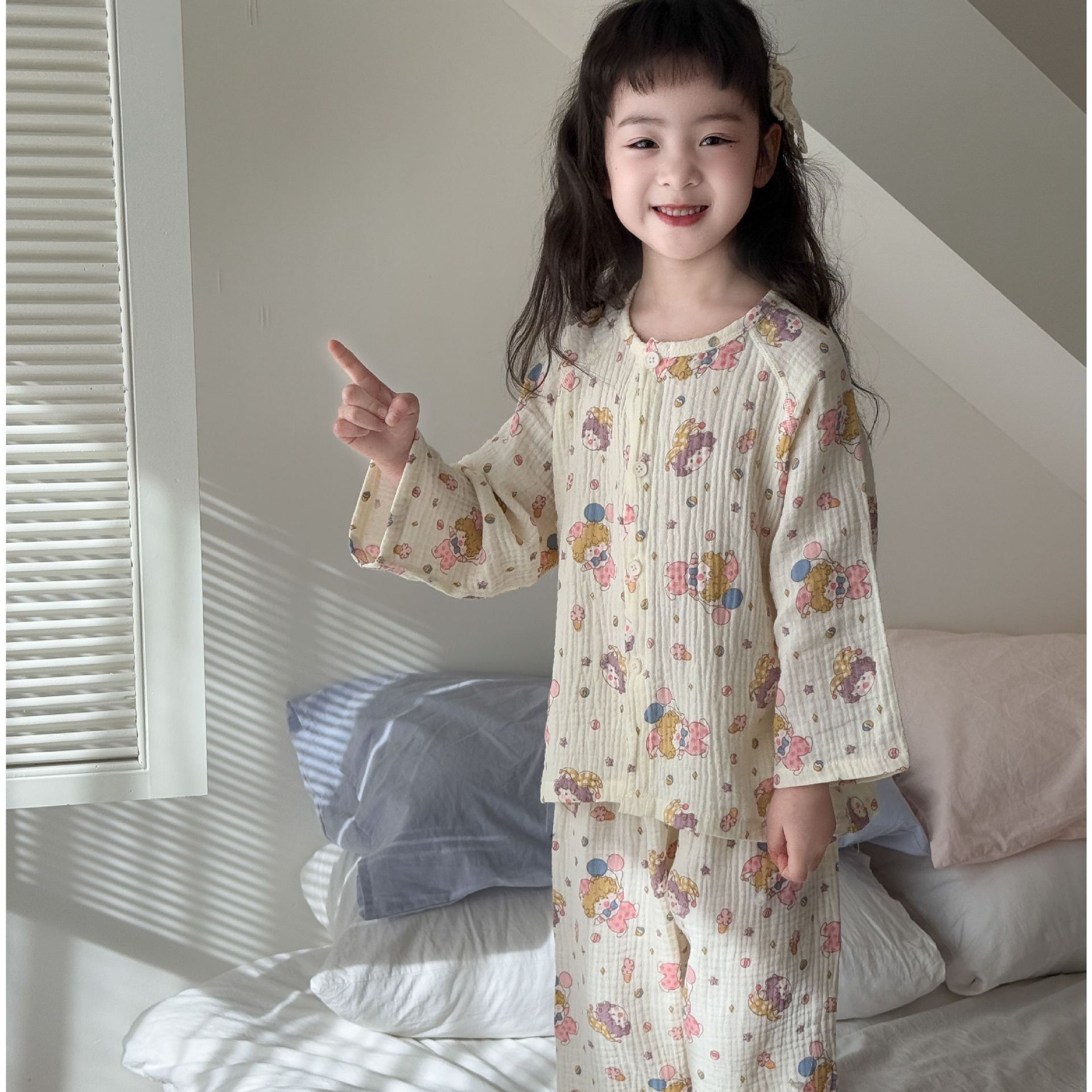 순면 어린이 잠옷 세트 집 옷 긴 소매 꽃 소녀의 달콤한 사이버 연예인 부모-아이 잠옷 세트 느슨한