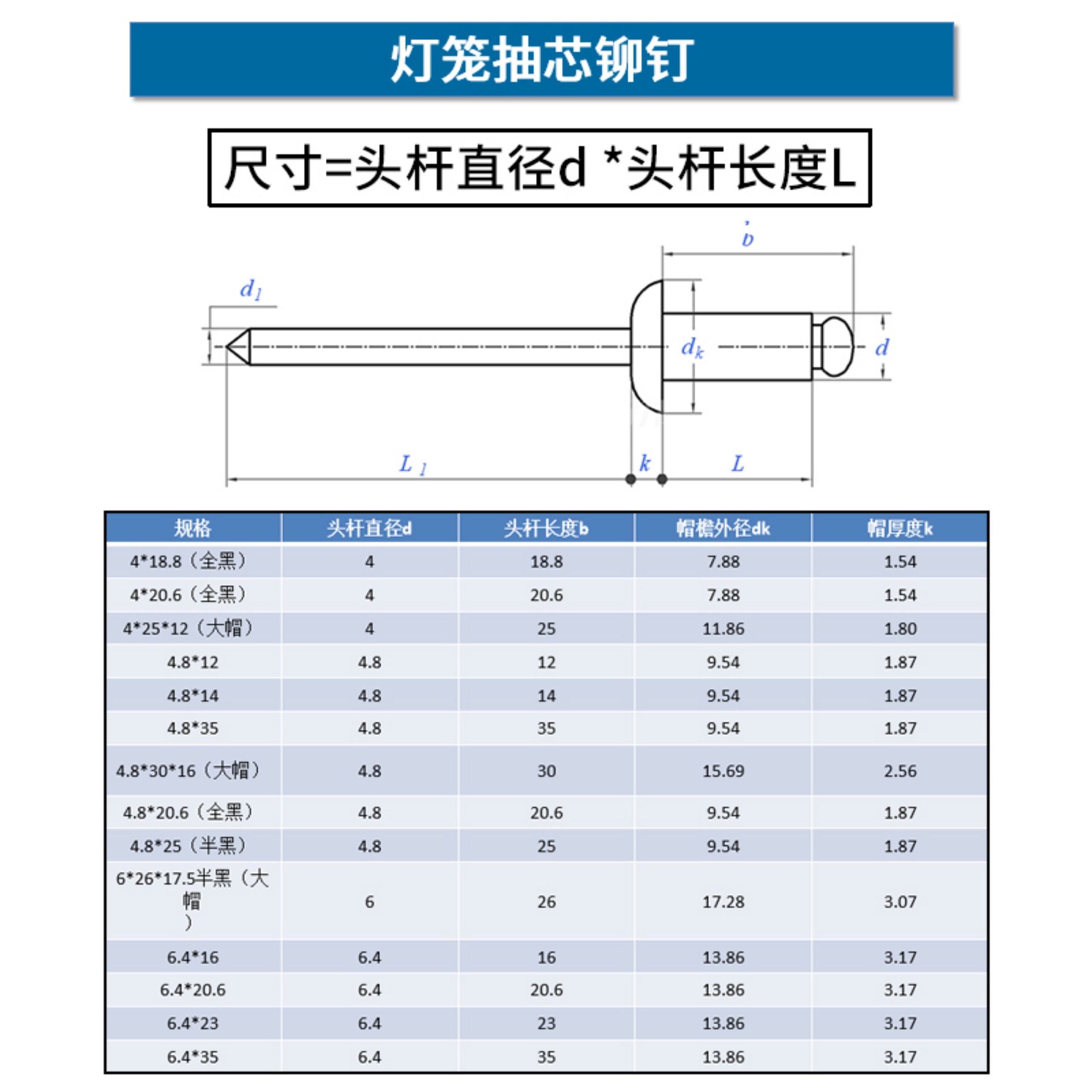 랜턴 블라인드 리벳 모든 알루미늄 빅 캡 리벳 세 클로 블랙 자동차 와인 박스 리벳 풀 플라워스토어 가기