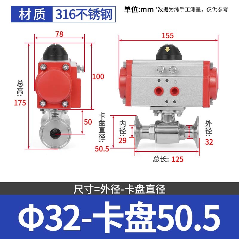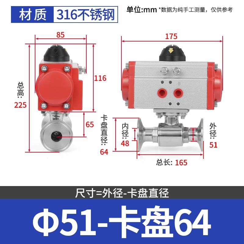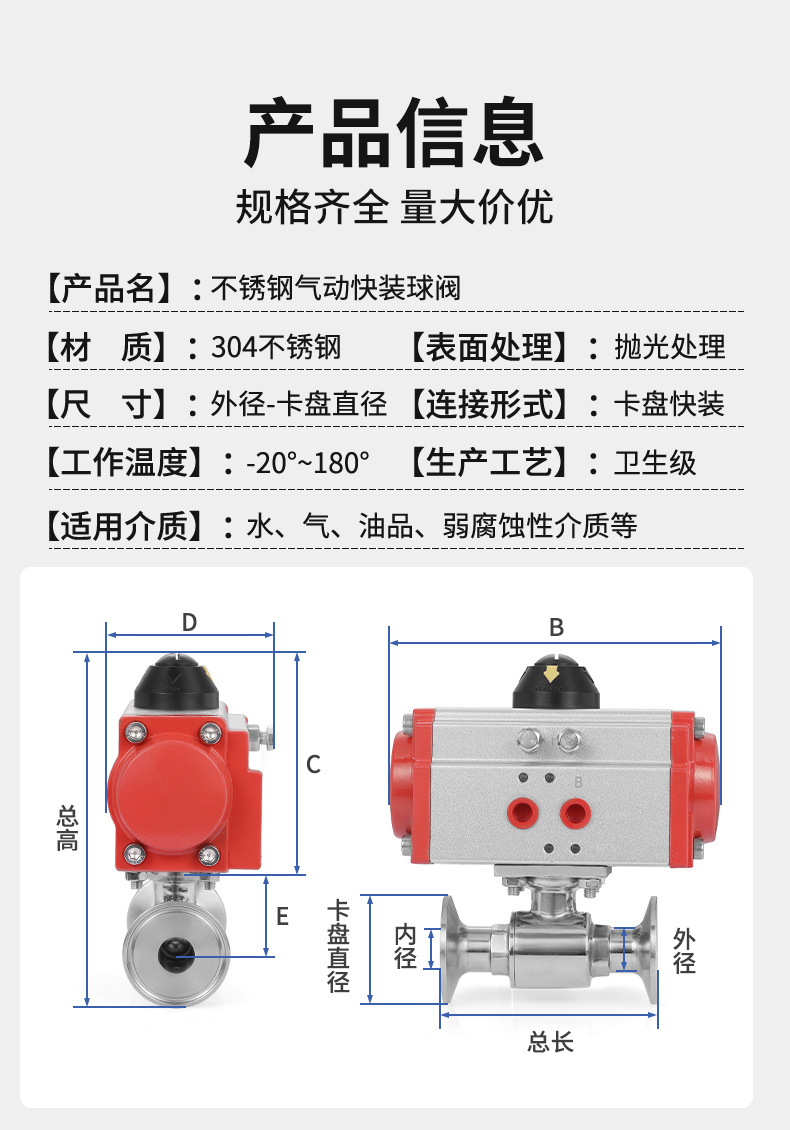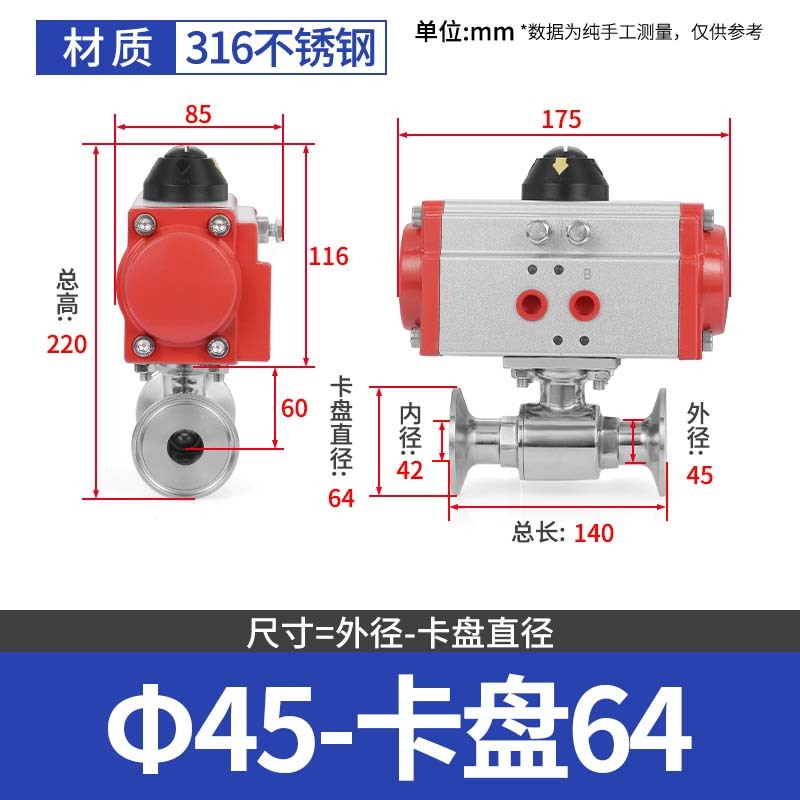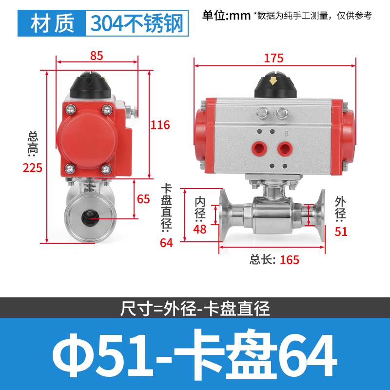 304 스테인레스 스틸 퀵 로딩 공압 볼 밸브 위생 볼 밸브 클램프 타입 퀵 연결 척 스트레이트 스루 밸브 이중 작동
