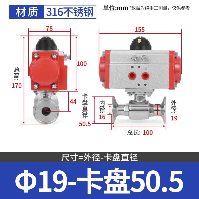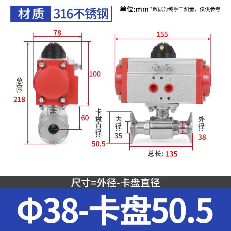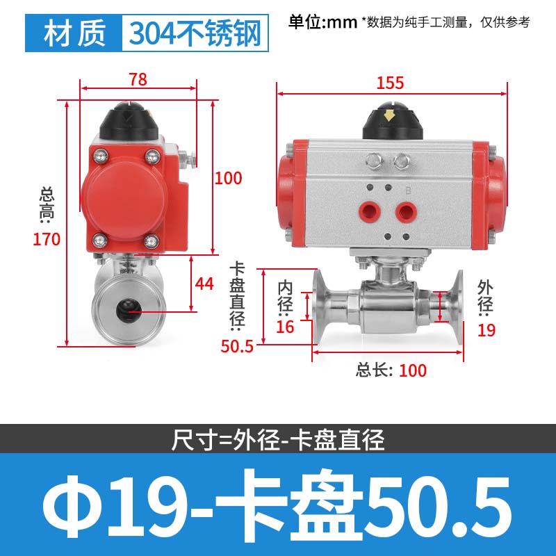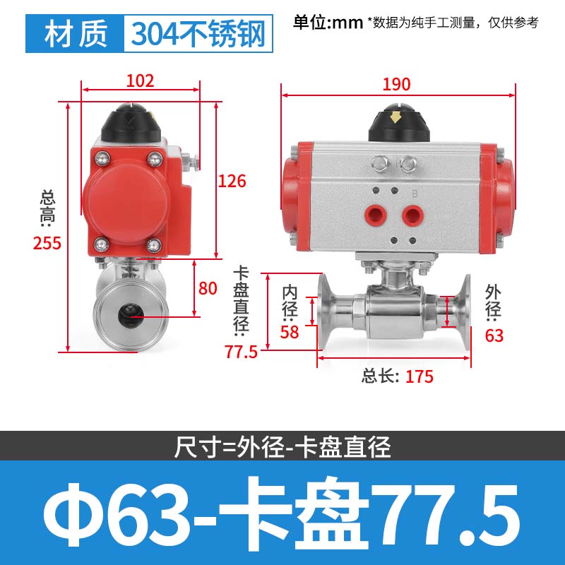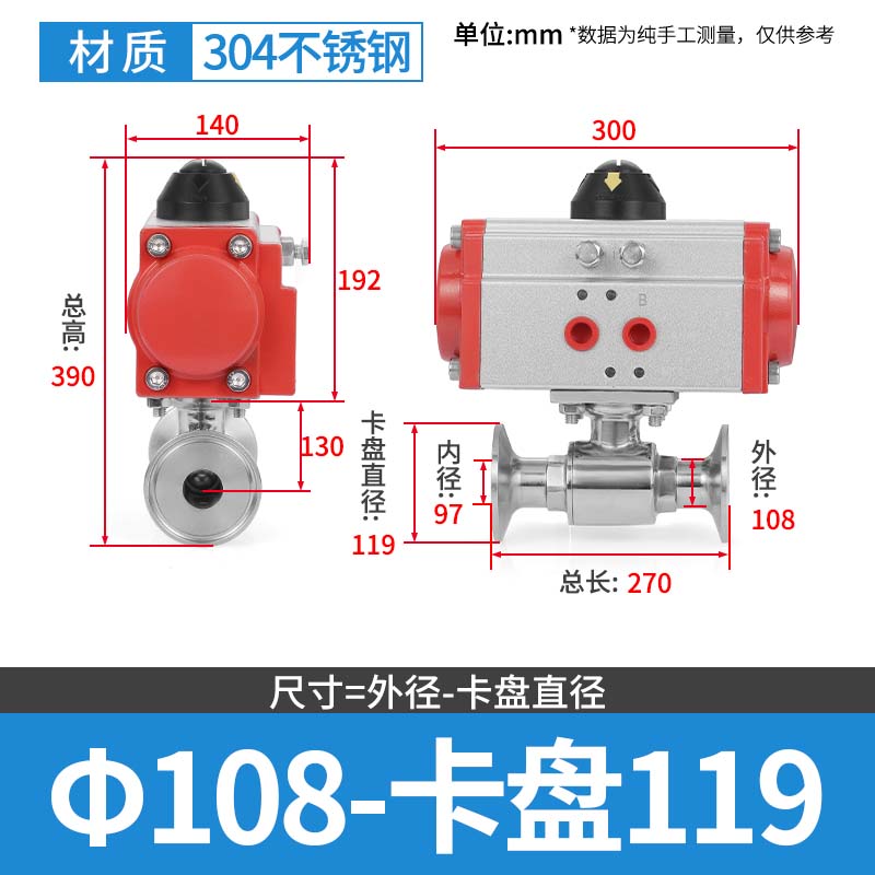304 스테인레스 스틸 퀵 로딩 공압 볼 밸브 위생 볼 밸브 클램프 타입 퀵 연결 척 스트레이트 스루 밸브 이중 작동