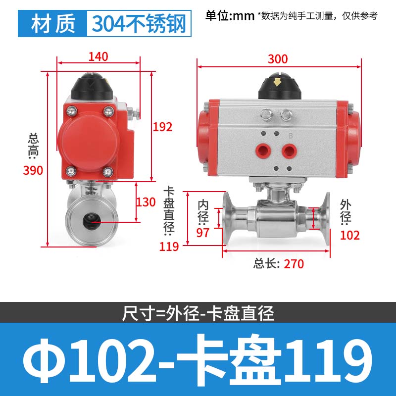 304 스테인레스 스틸 퀵 로딩 공압 볼 밸브 위생 볼 밸브 클램프 타입 퀵 연결 척 스트레이트 스루 밸브 이중 작동스토어 가기