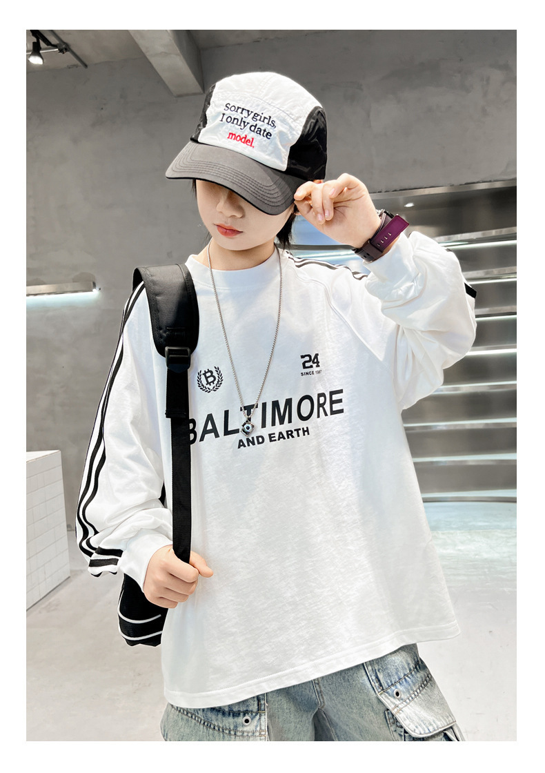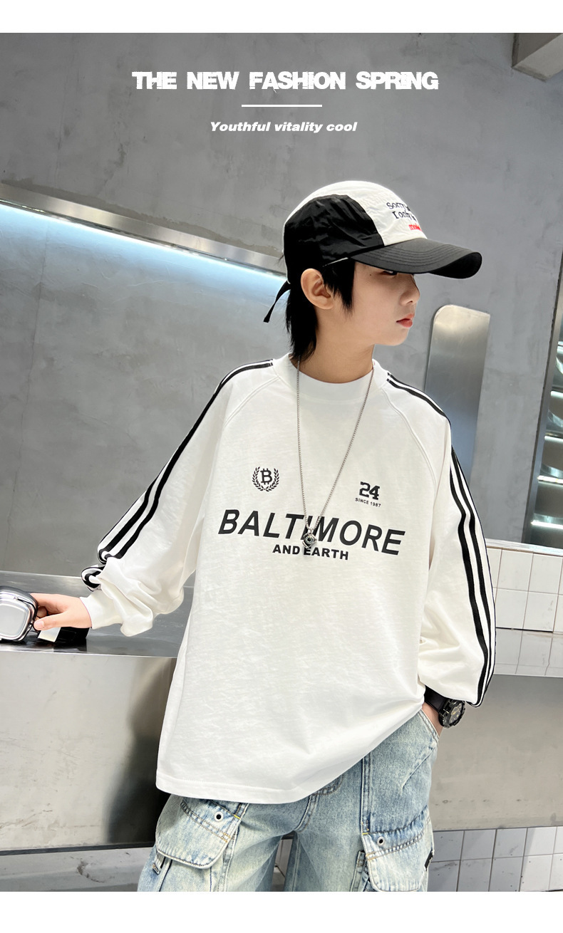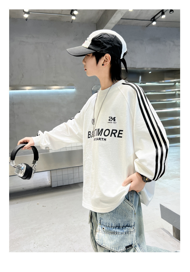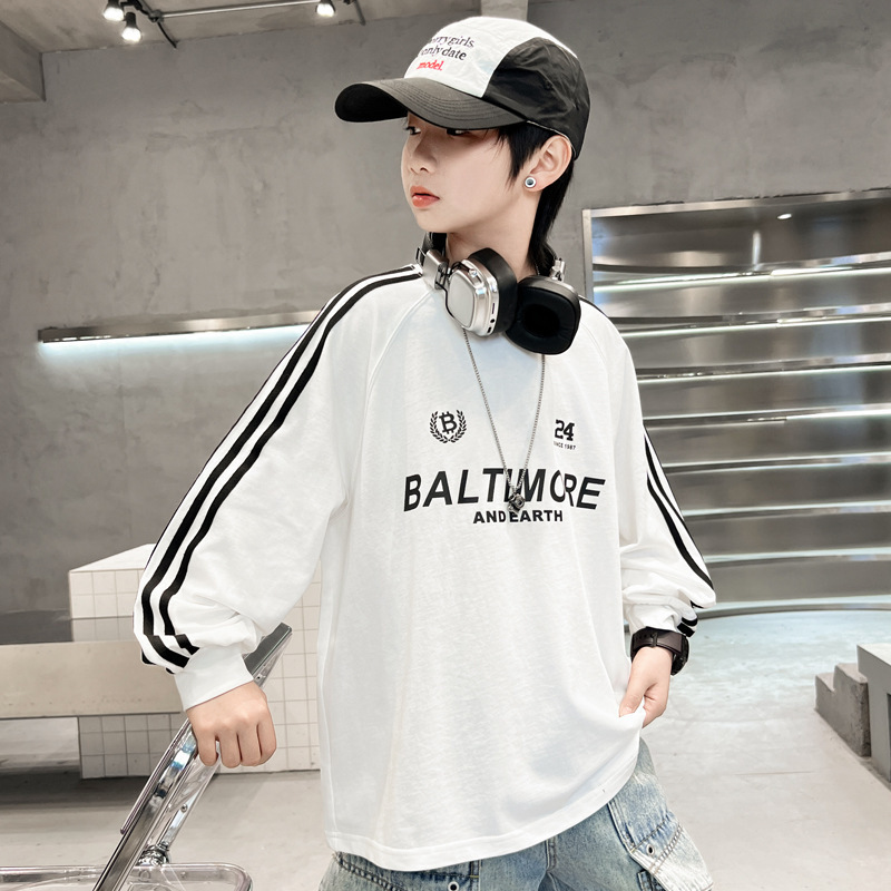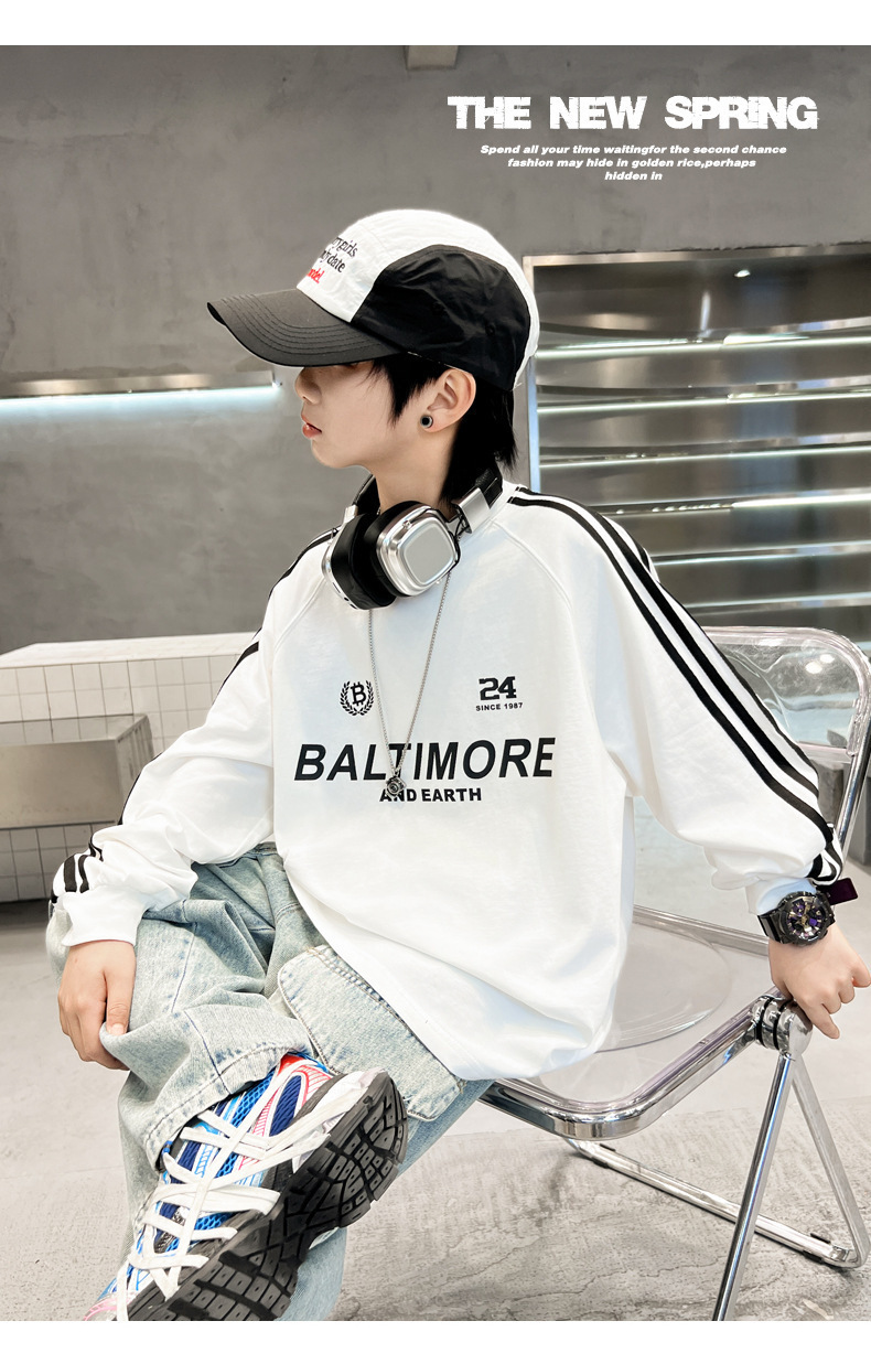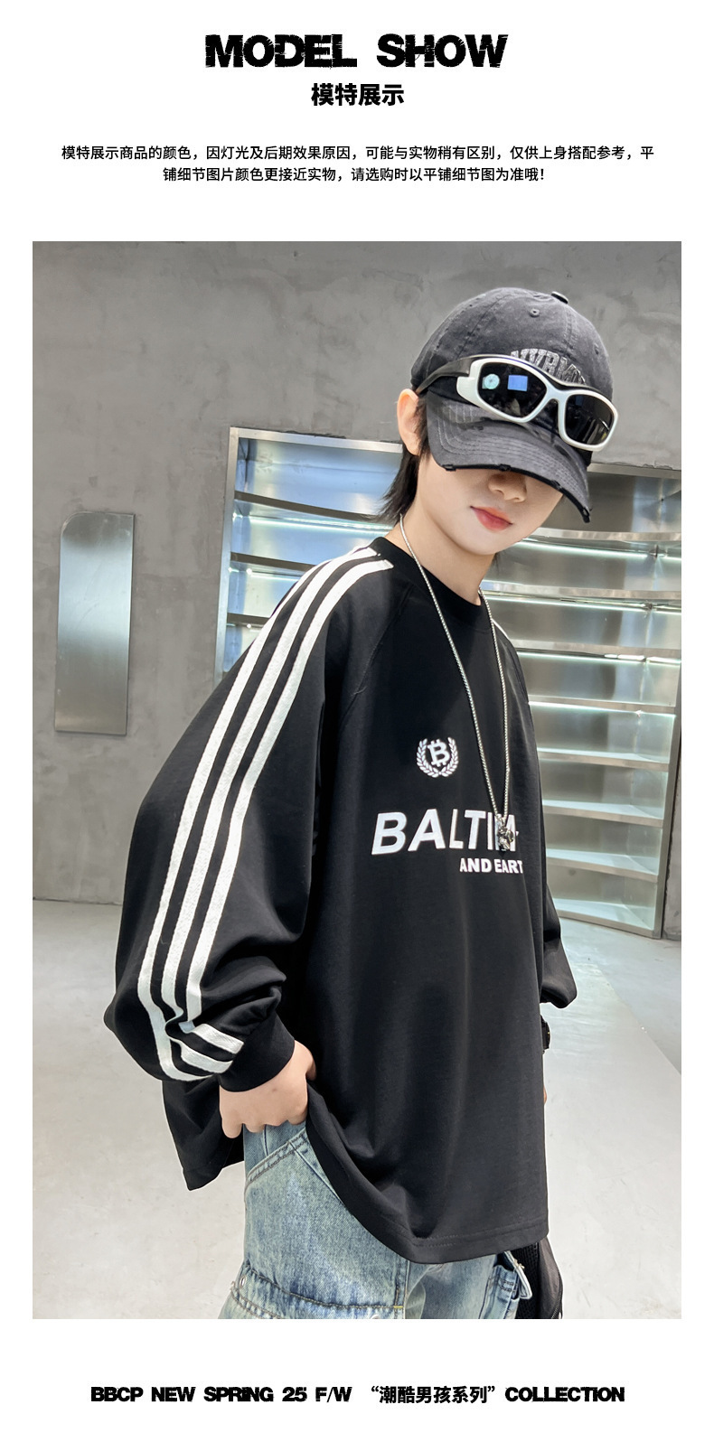 소년의 봄 긴 소매 스웨터 줄무늬 캐주얼 루즈 티셔츠 2025 소년을위한 새로운 봄 웨스턴 스타일 탑스토어 가기